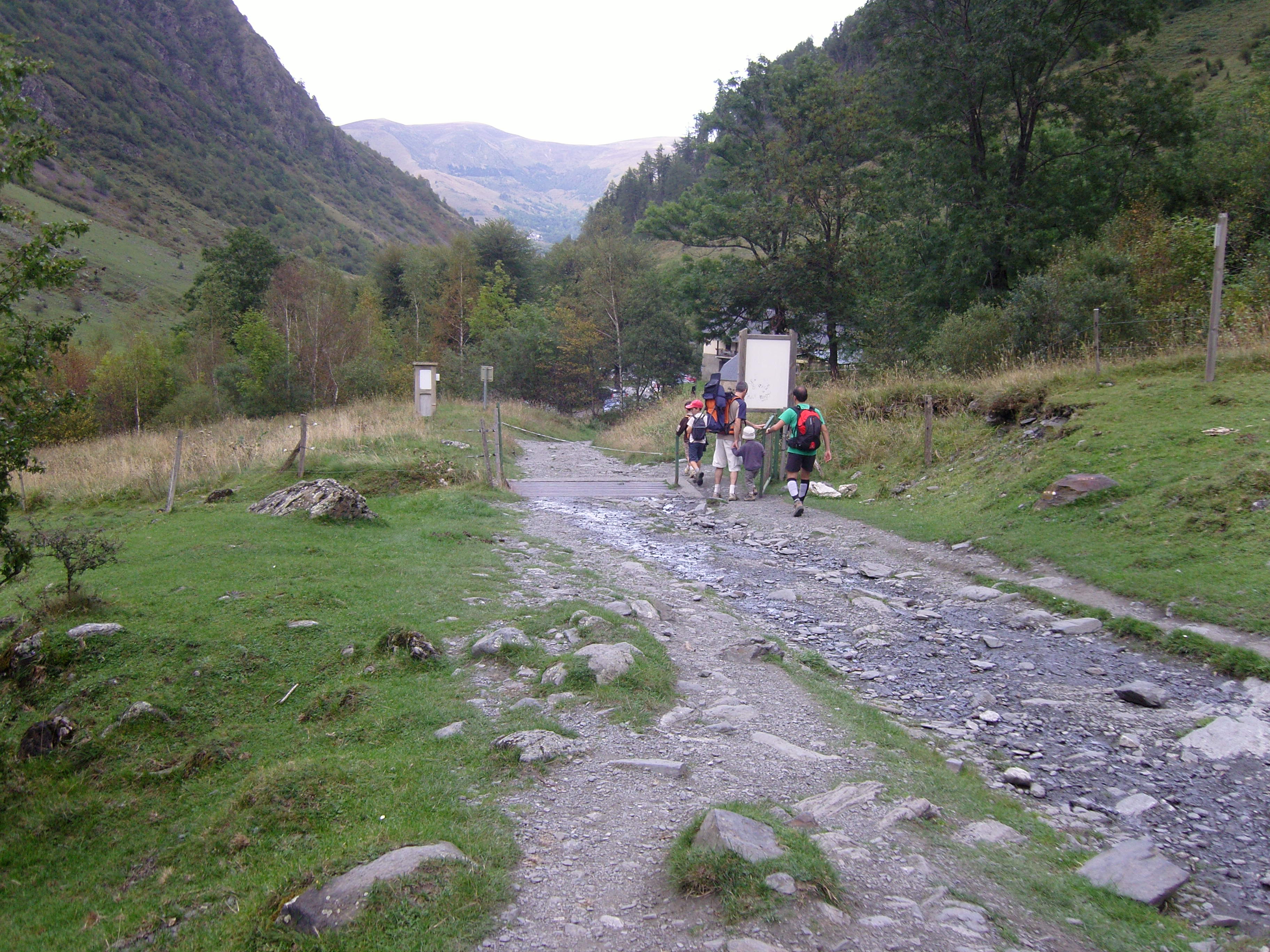 Départ Granges d'Astau (1127 m) : continuer tout droit en suivant la piste forestière direction Lac d'Oô, balisé en rouge et blanc