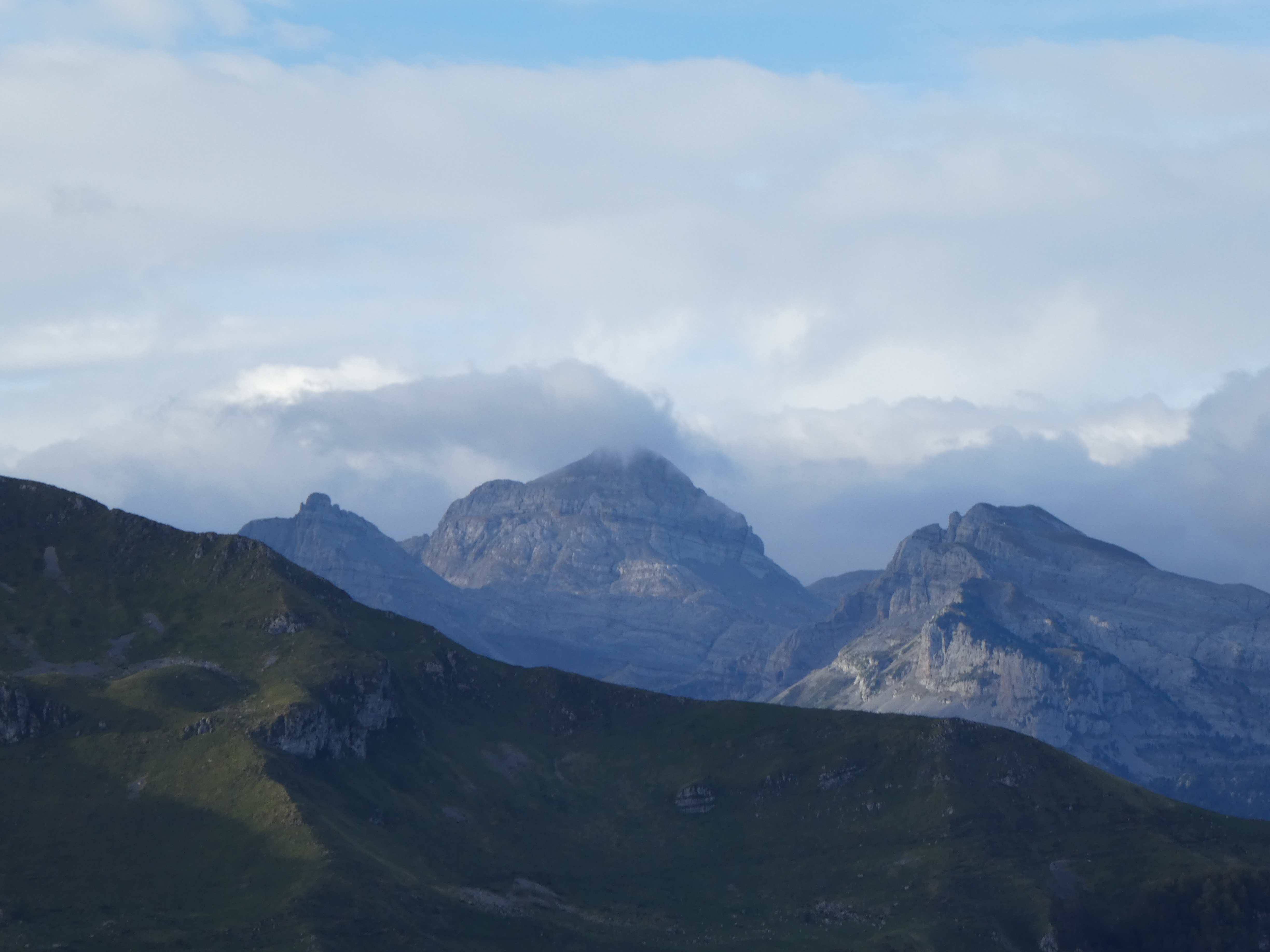 Zoom sur le Montagnon d'Iseye (2173 m) à gauche, le Mardas (2188 m) au centre et la Table de Ponce (2159 m) à droite