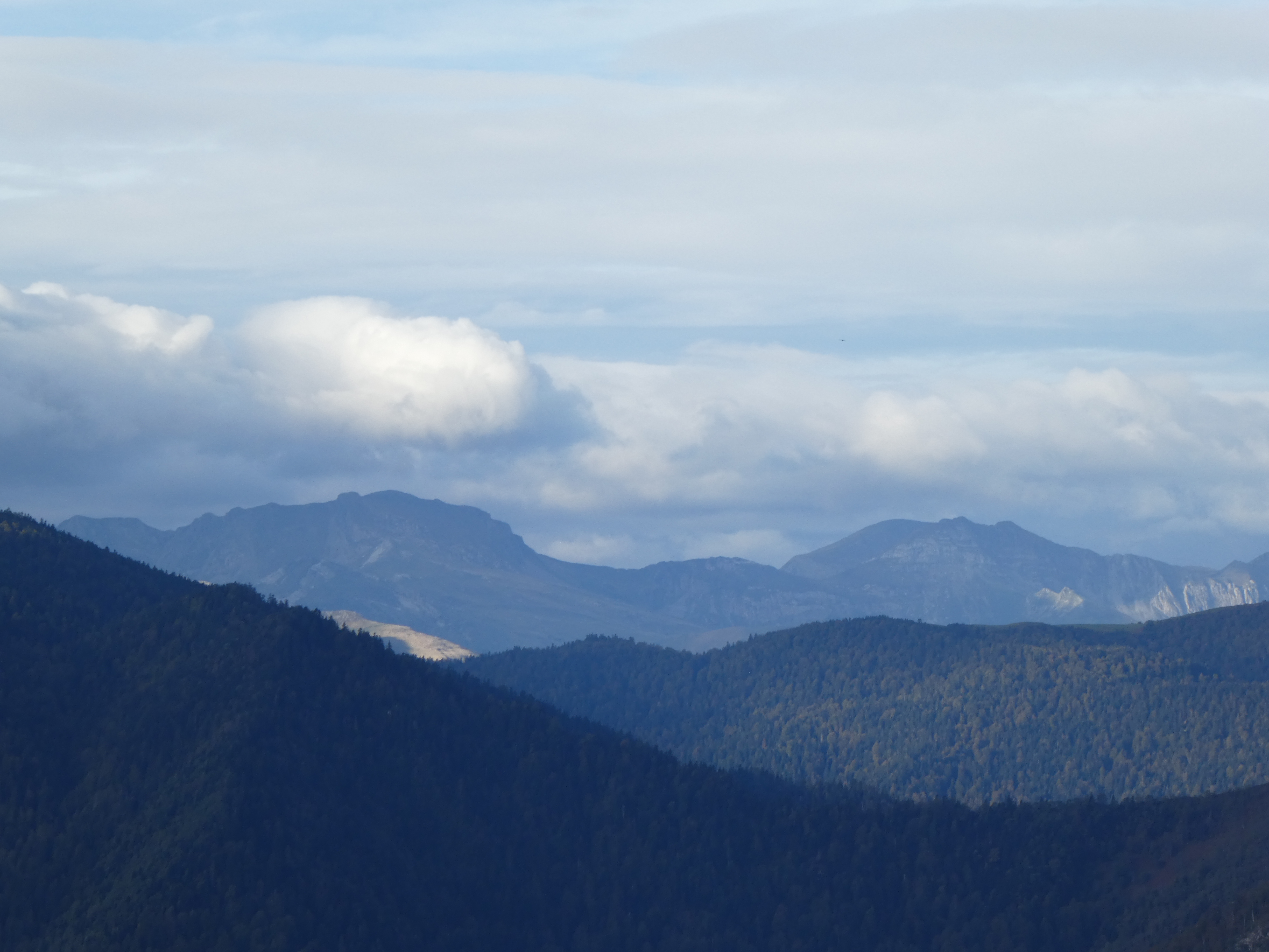 Zoom sur le Pic d'Issarbe (1559 m) à gauche et le Pic d'Arbouty (1542 m) à droite