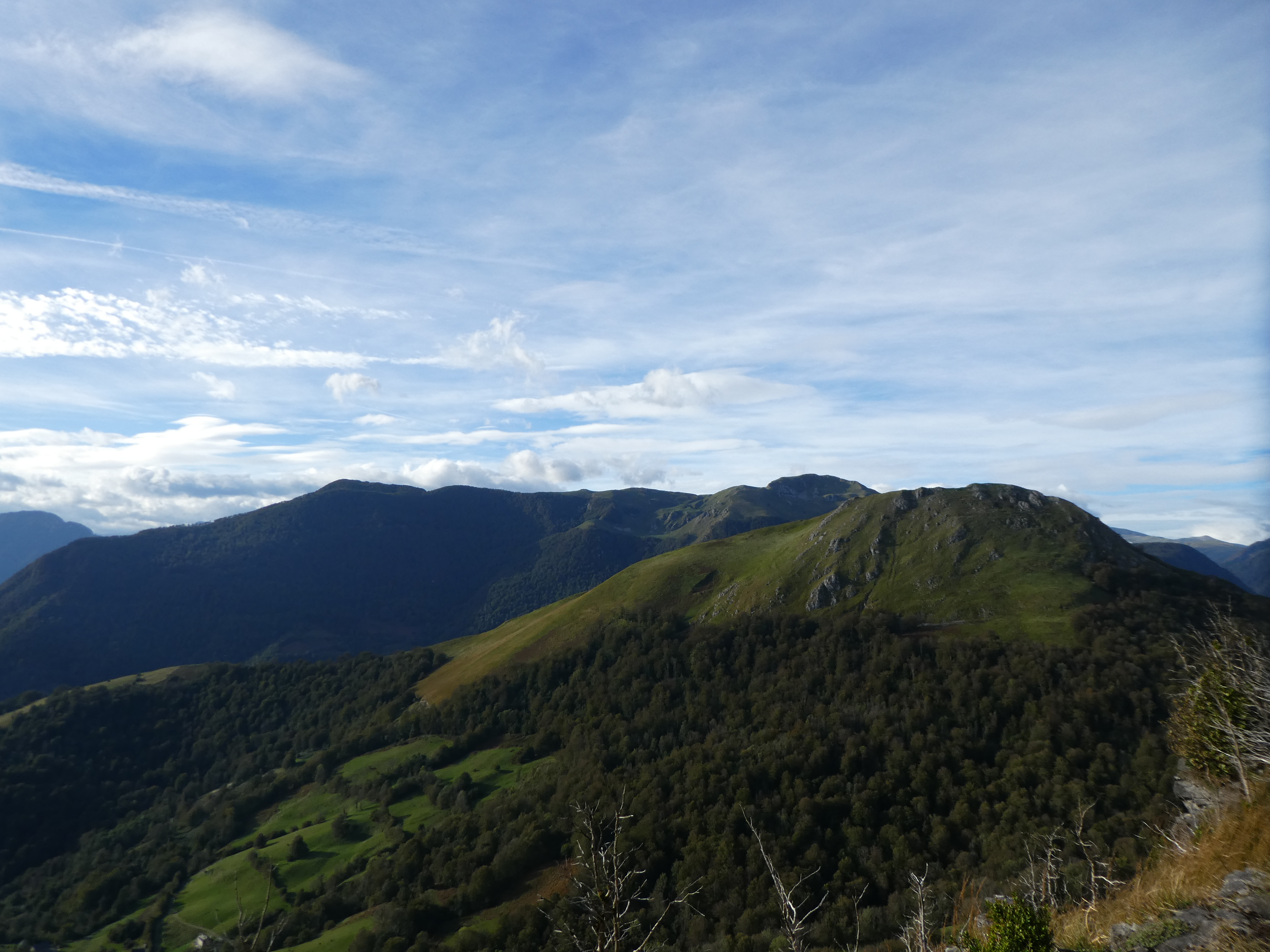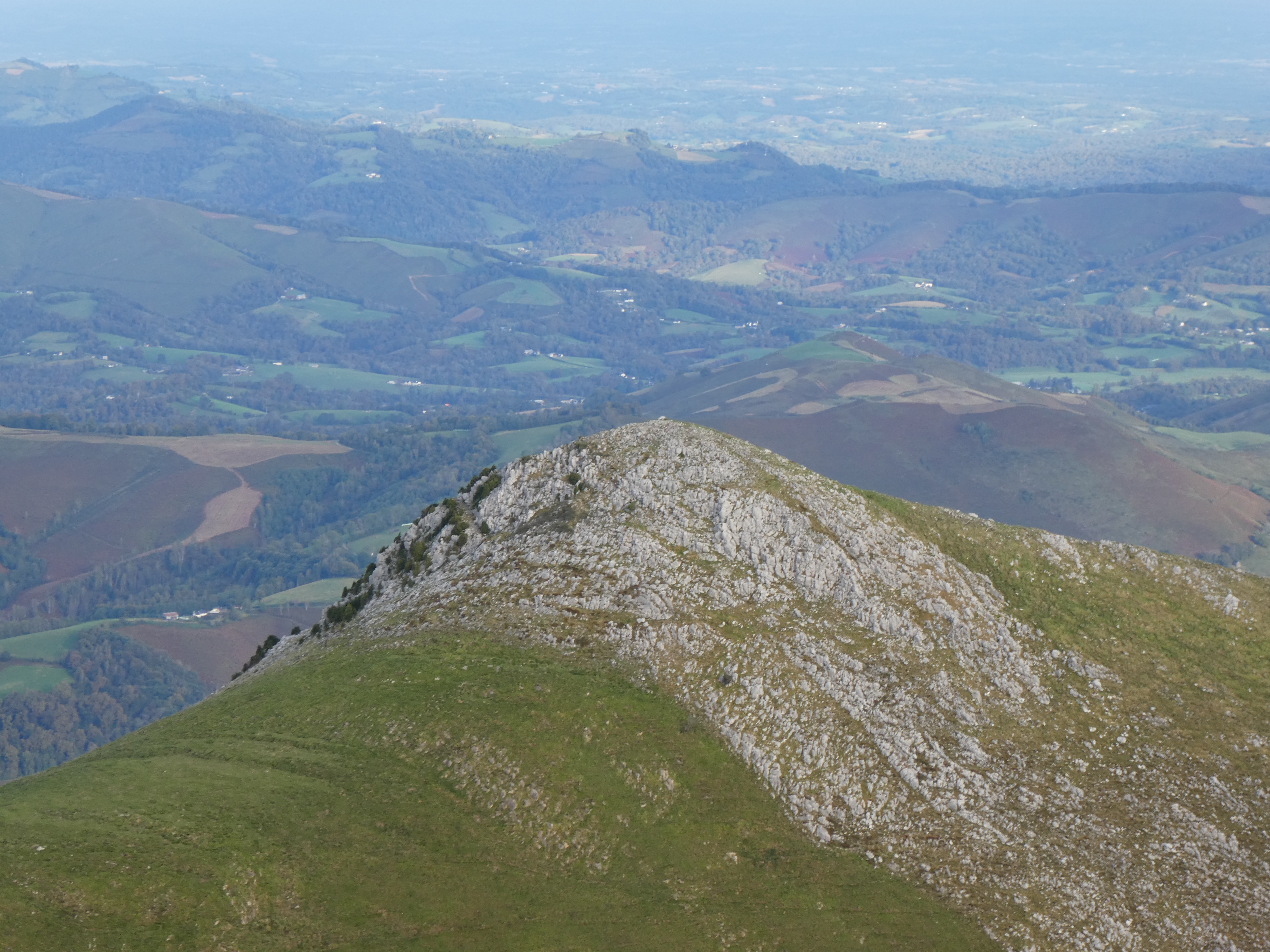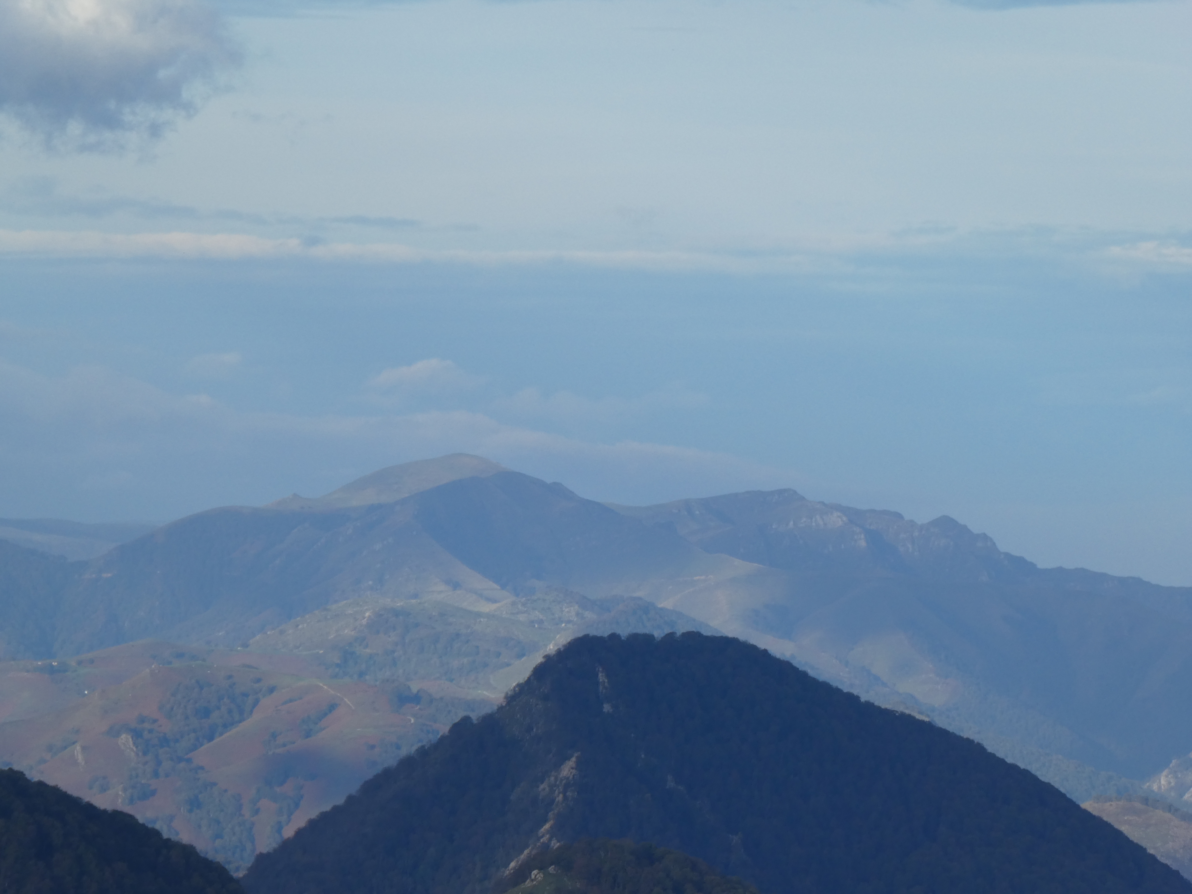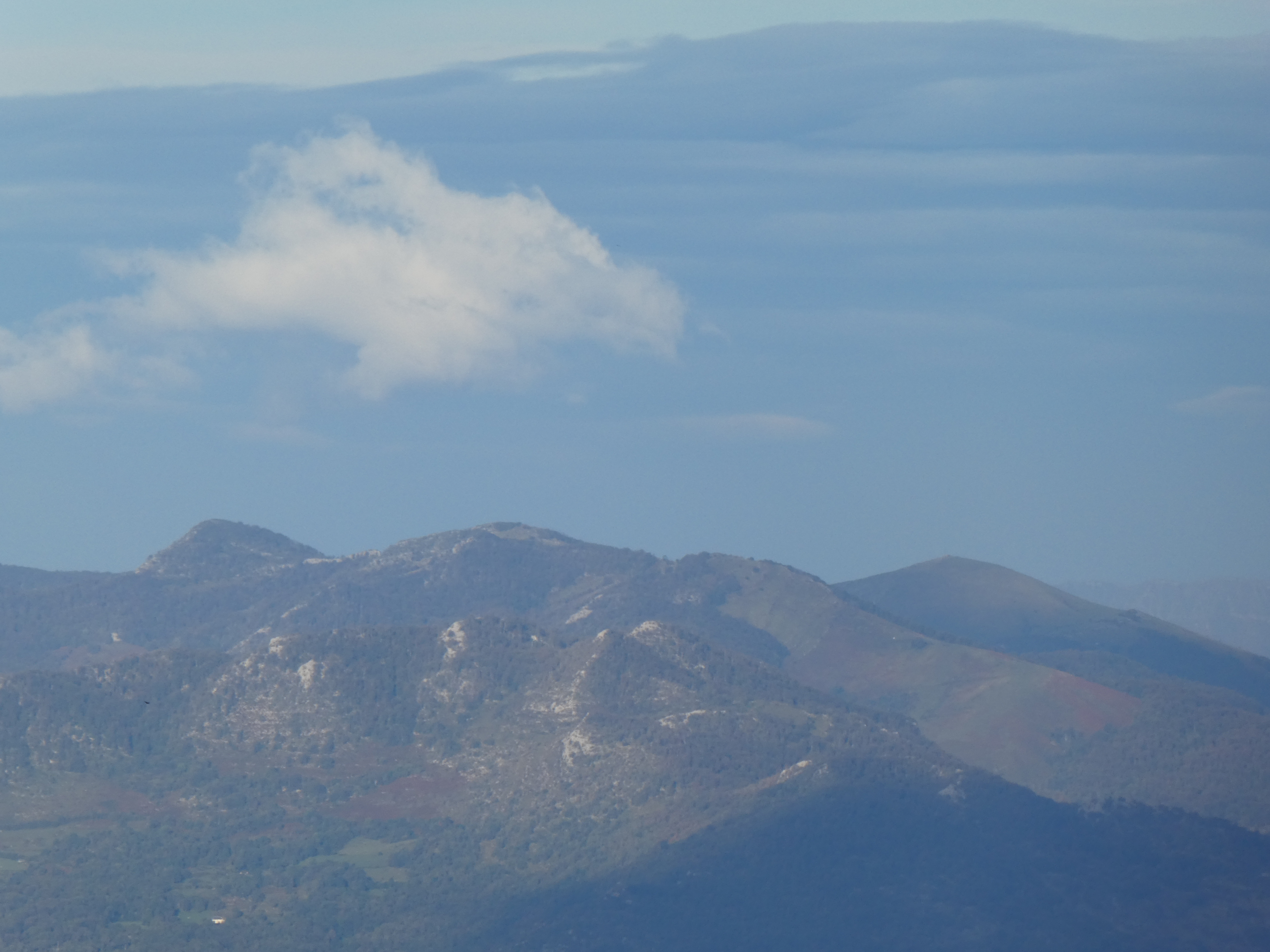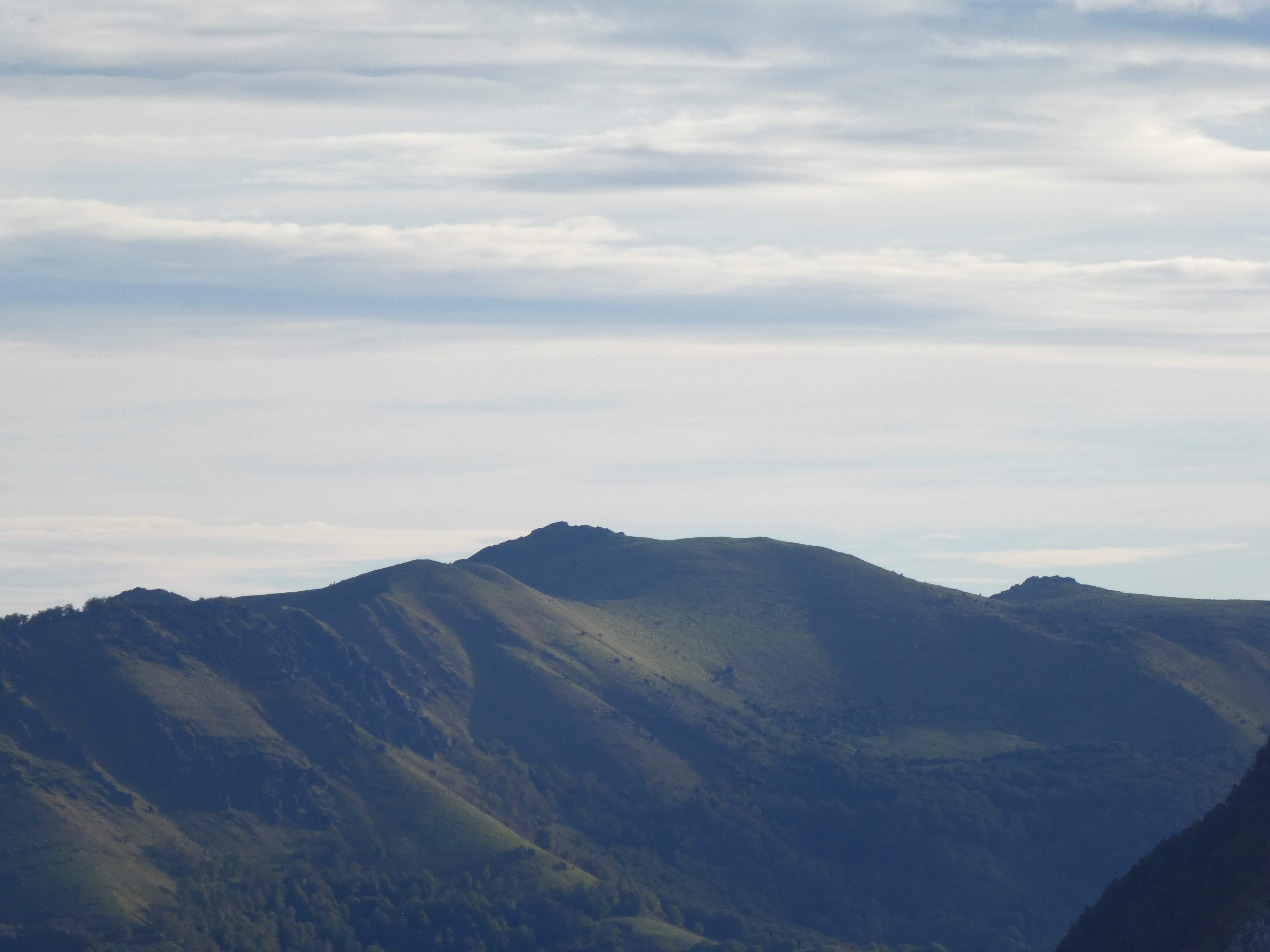 Zoom sur l'Etxekortea (1206 m) au centre et le Pic de Belchou (1130 m) à droite