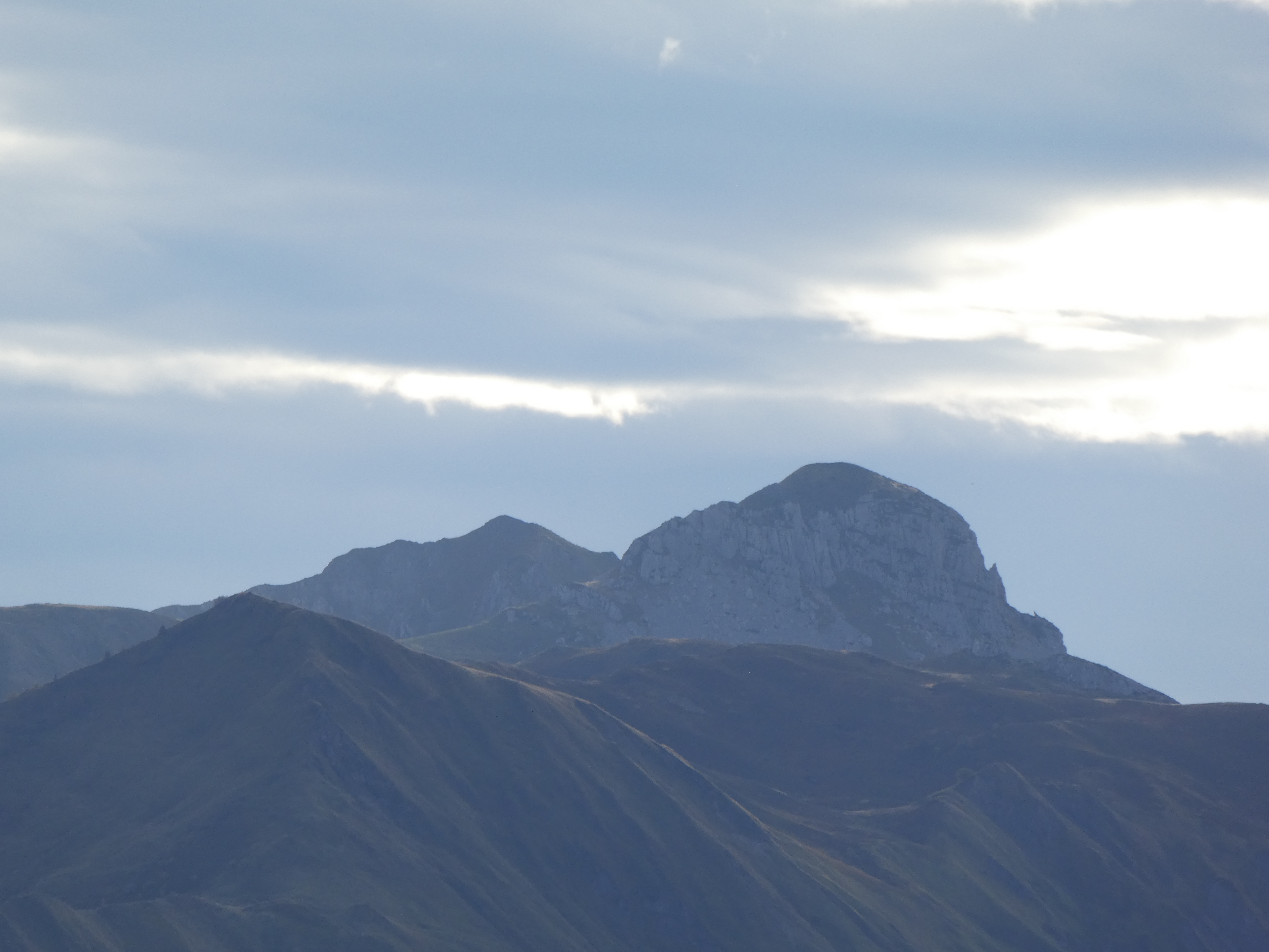 Zoom sur le Pic d'Escurets (1440 m) au centre et le Senzouens (1392 m) à droite