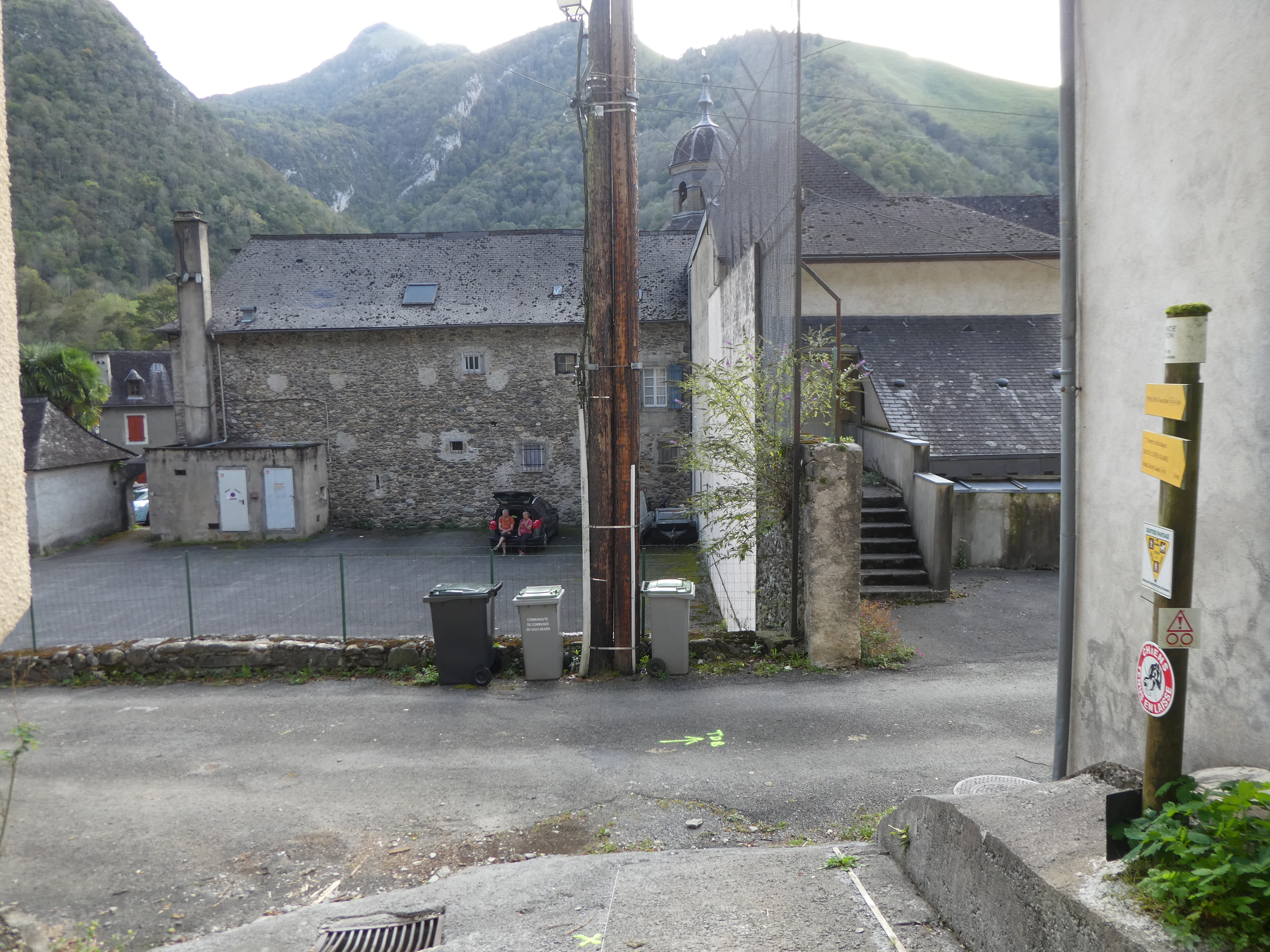 Sarrance - Cloître (360 m) : suivre la rue partant sur la droite direction le Trône du Roi, balisé en jaune dorénavant
