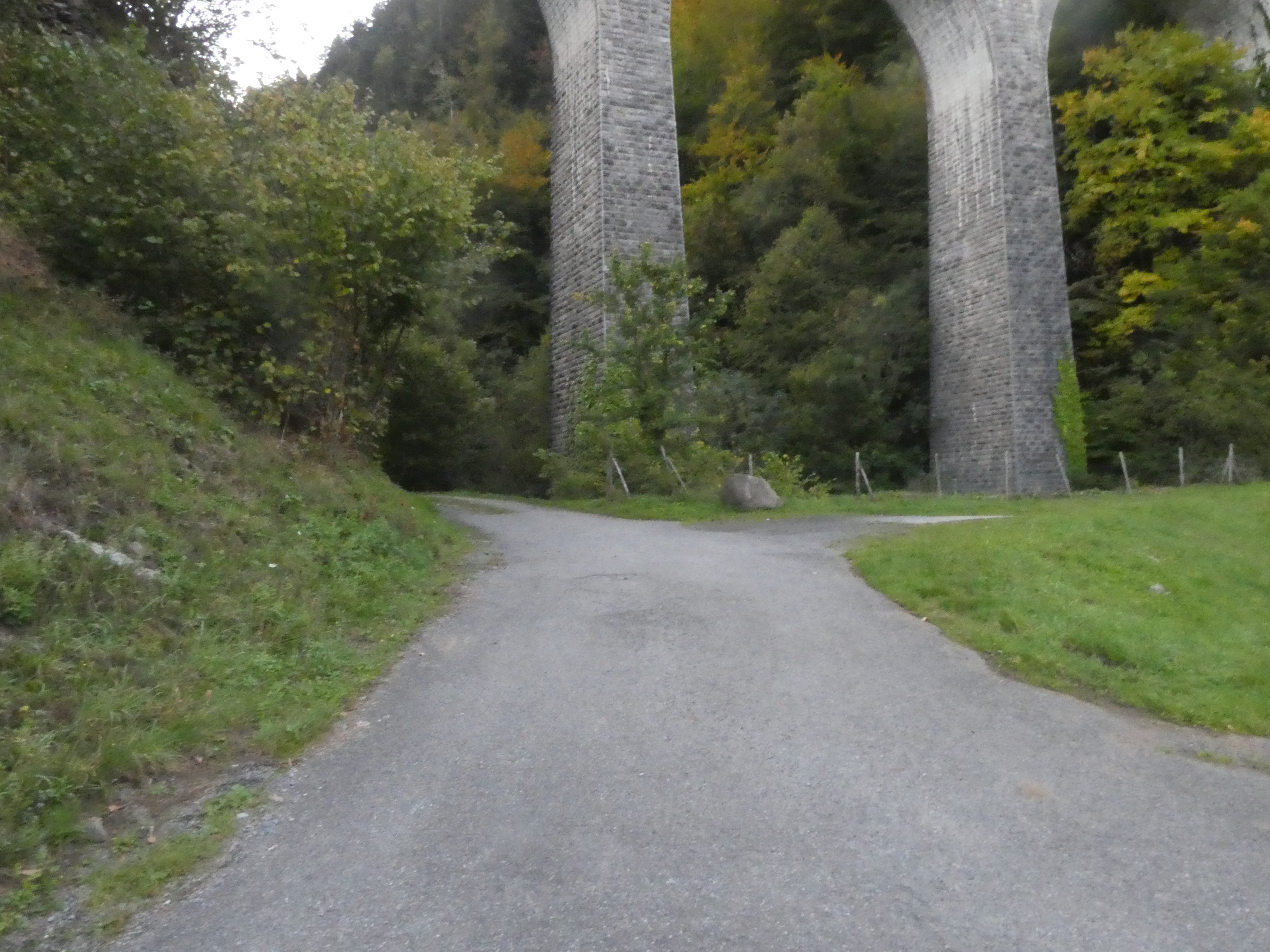 A ce croisement marqué par la présence d'un panneau directionnel (500 mètres après le précédent), suivre le chemin descendant sur la gauche direction Pont d'Arnousse