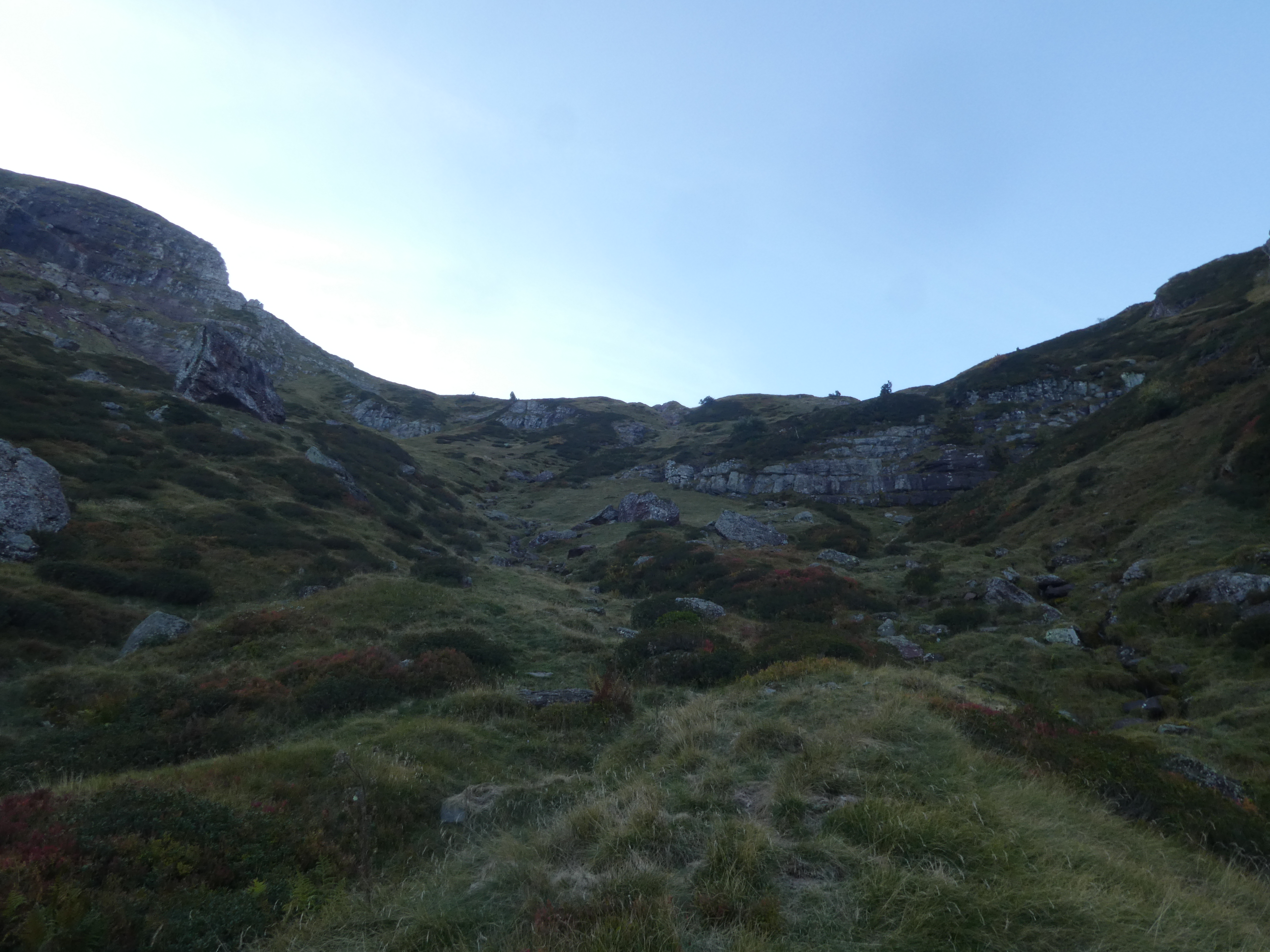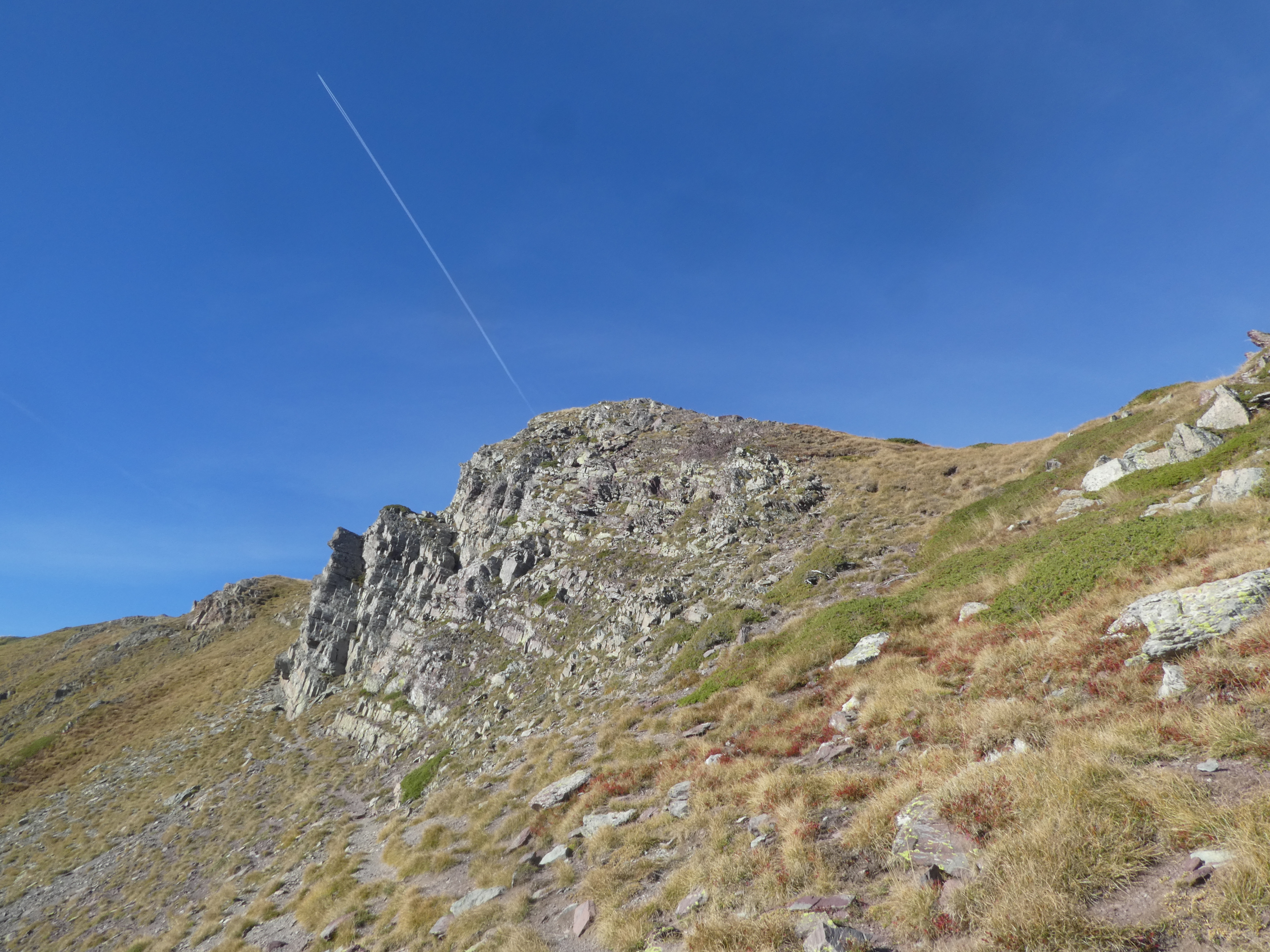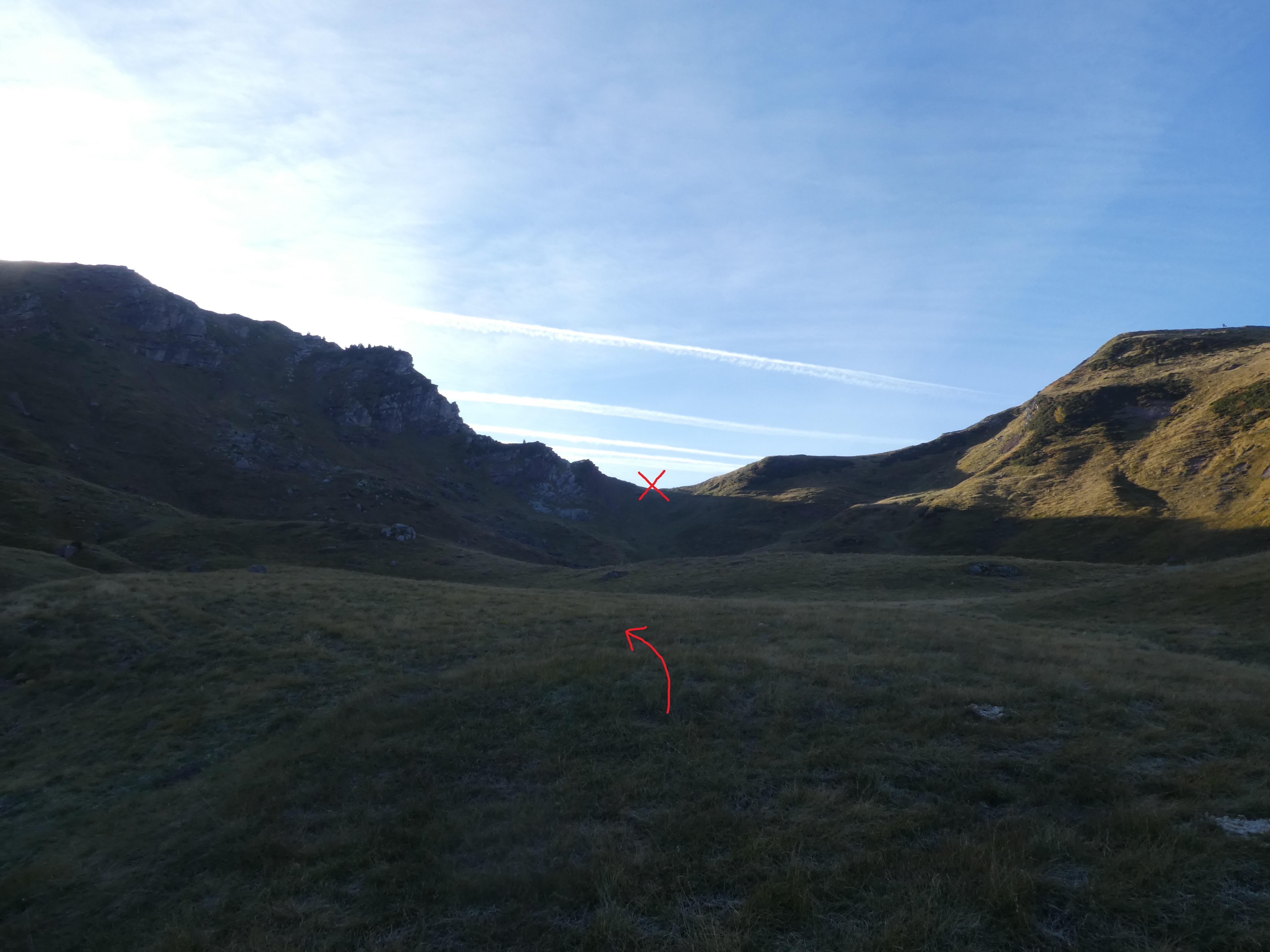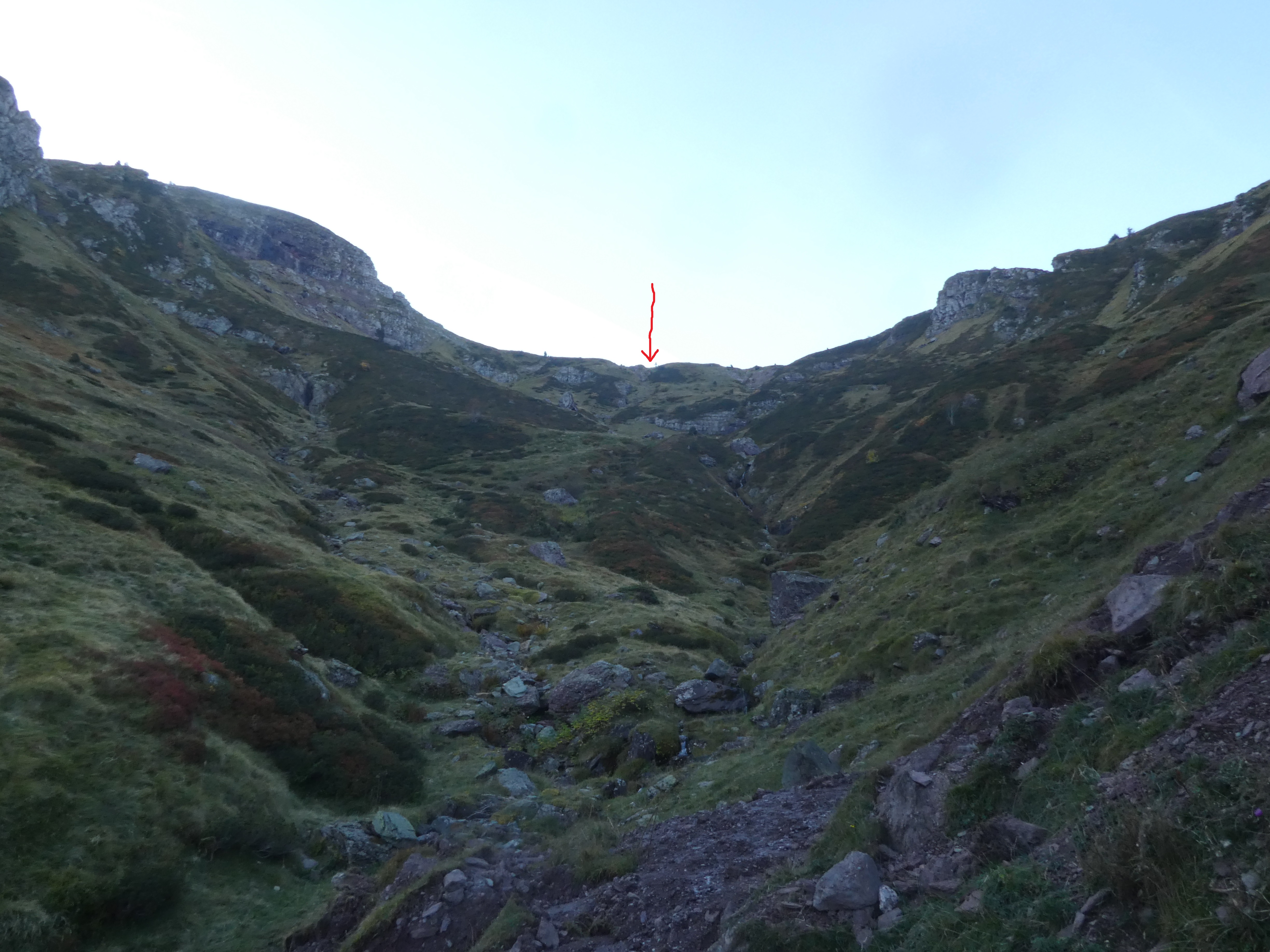 Pour rejoindre le sentier de crête du Pic d'Arnousse depuis le faux-col, il faut atteindre ce point faible de la crête par un itinéraire hors sentier direction Pic d'Arnousse