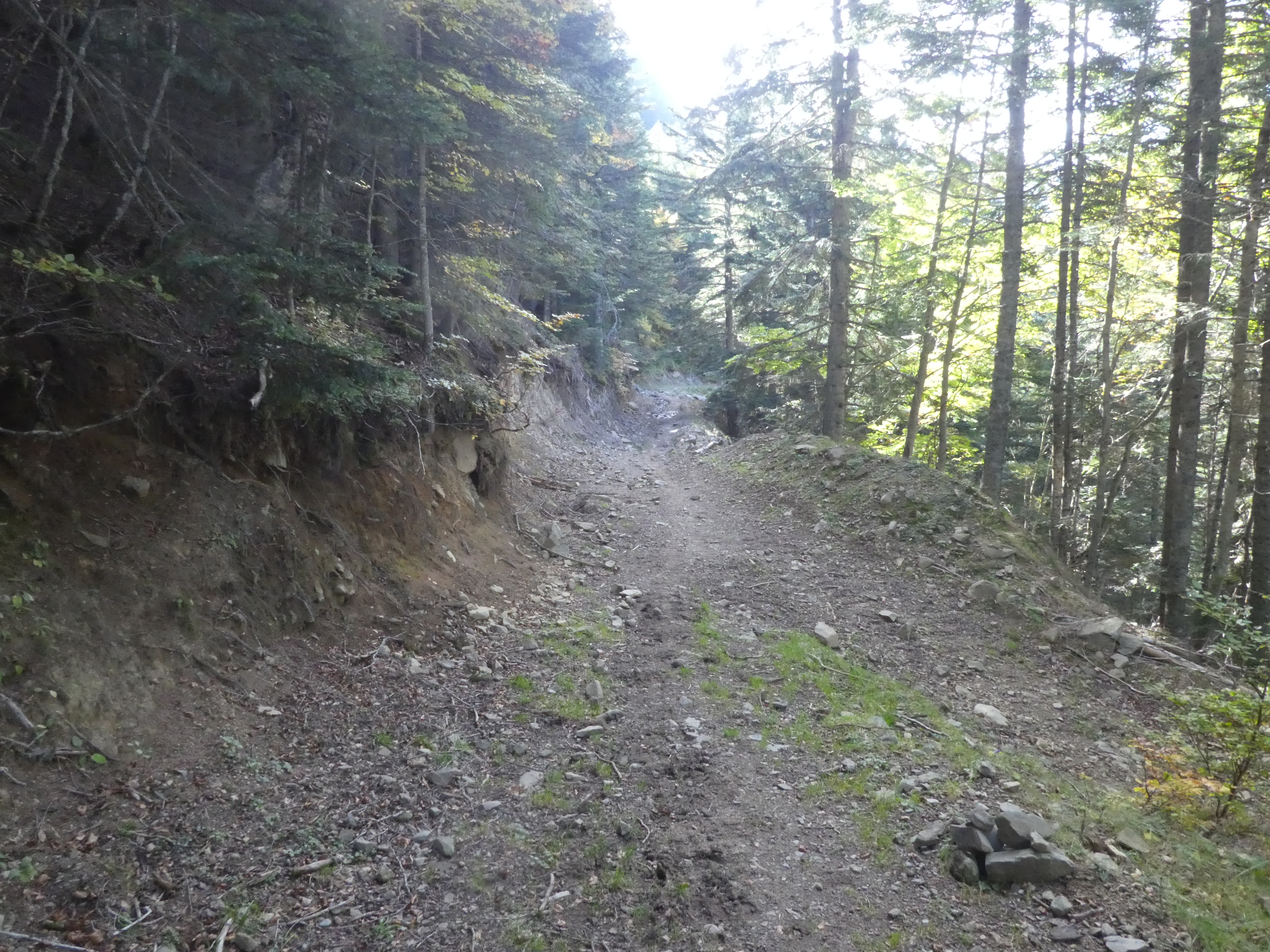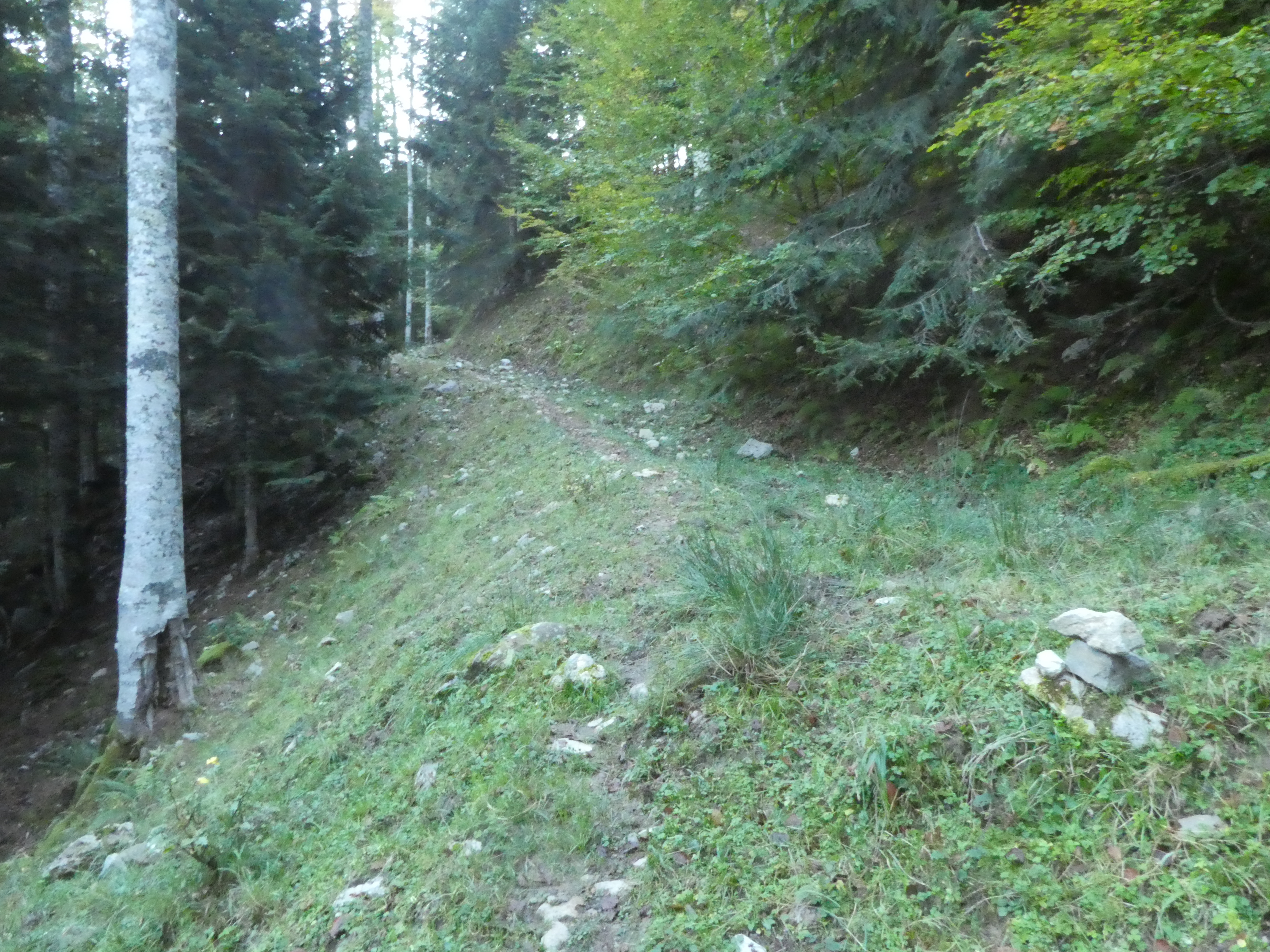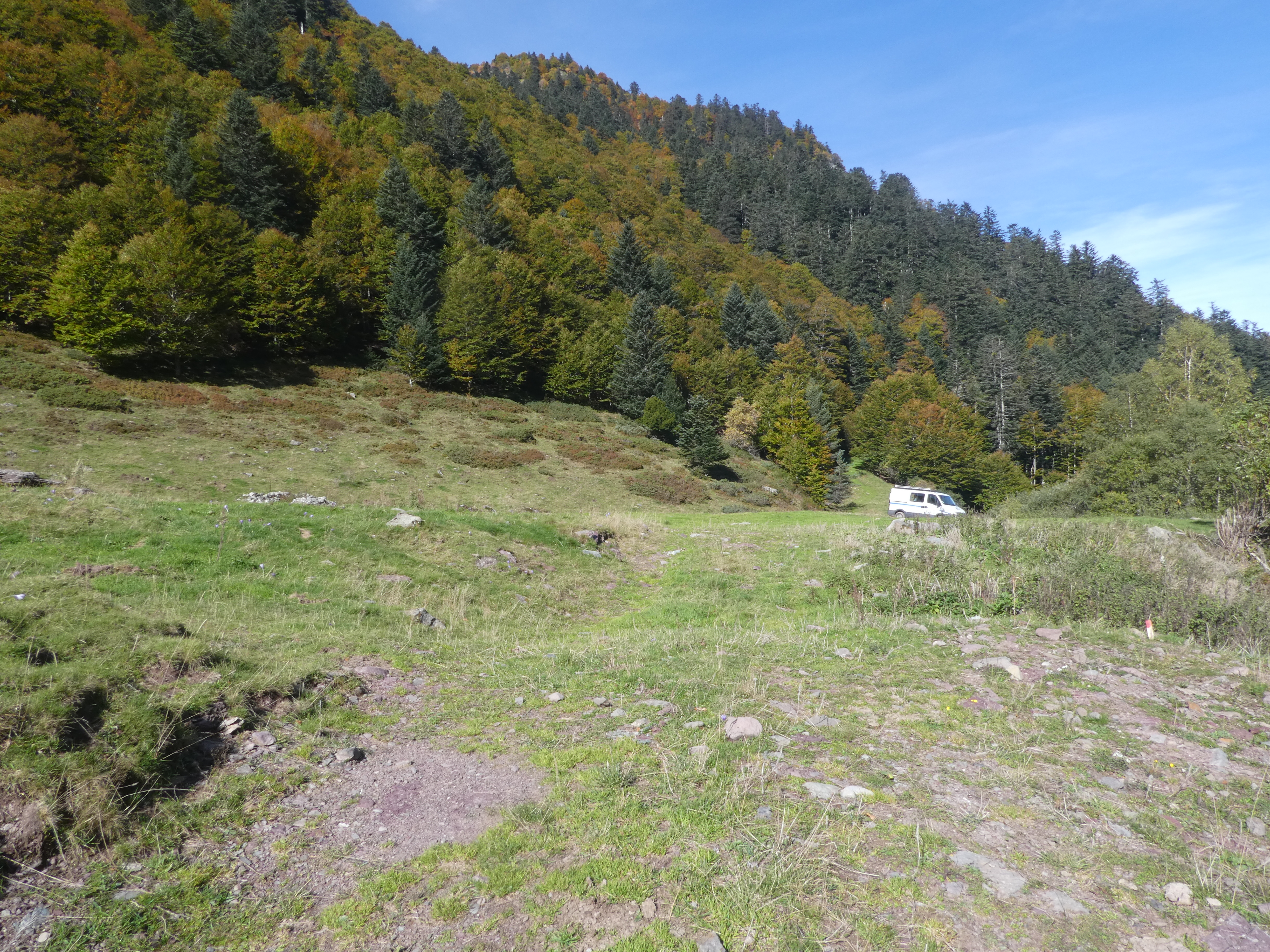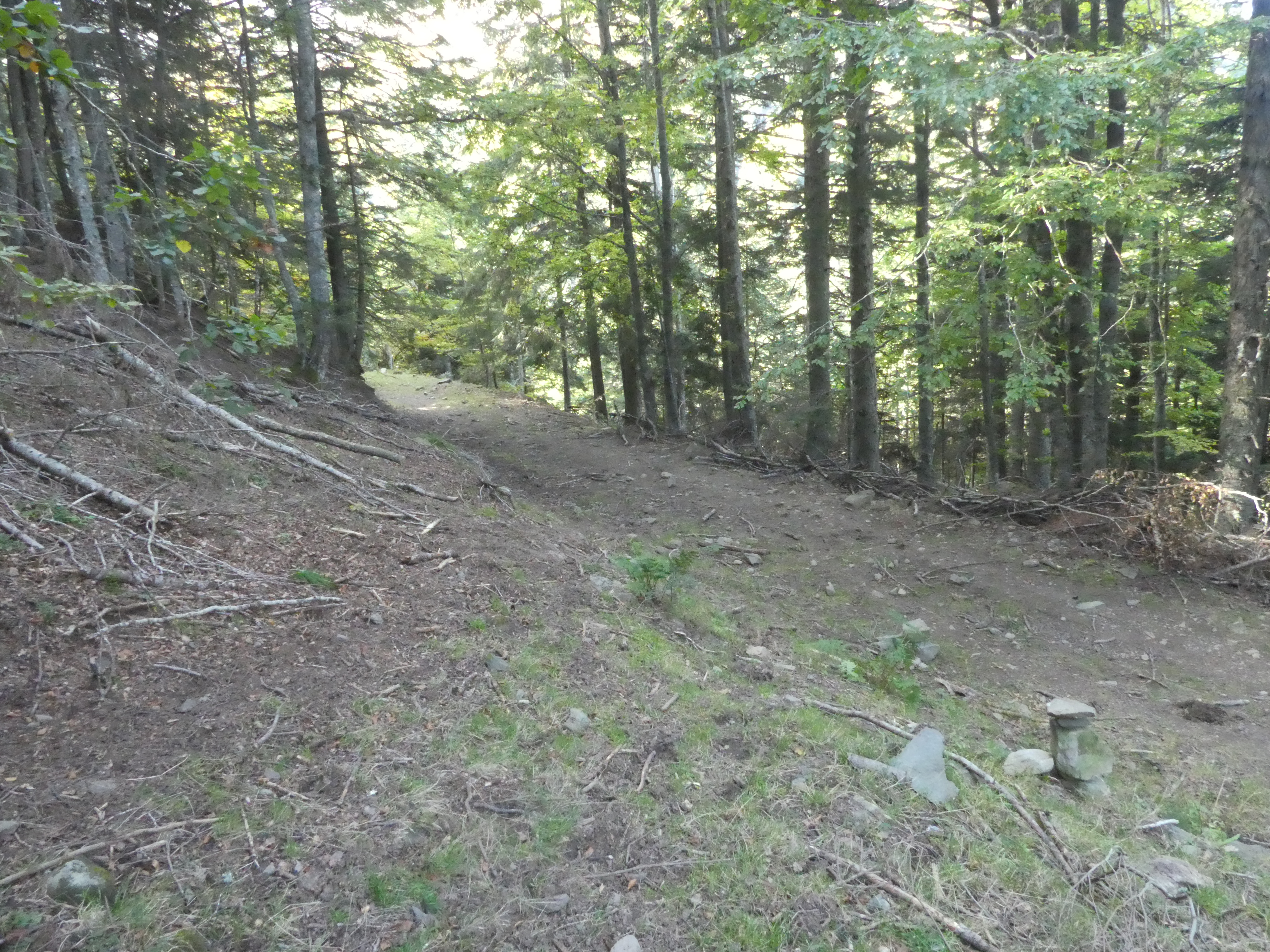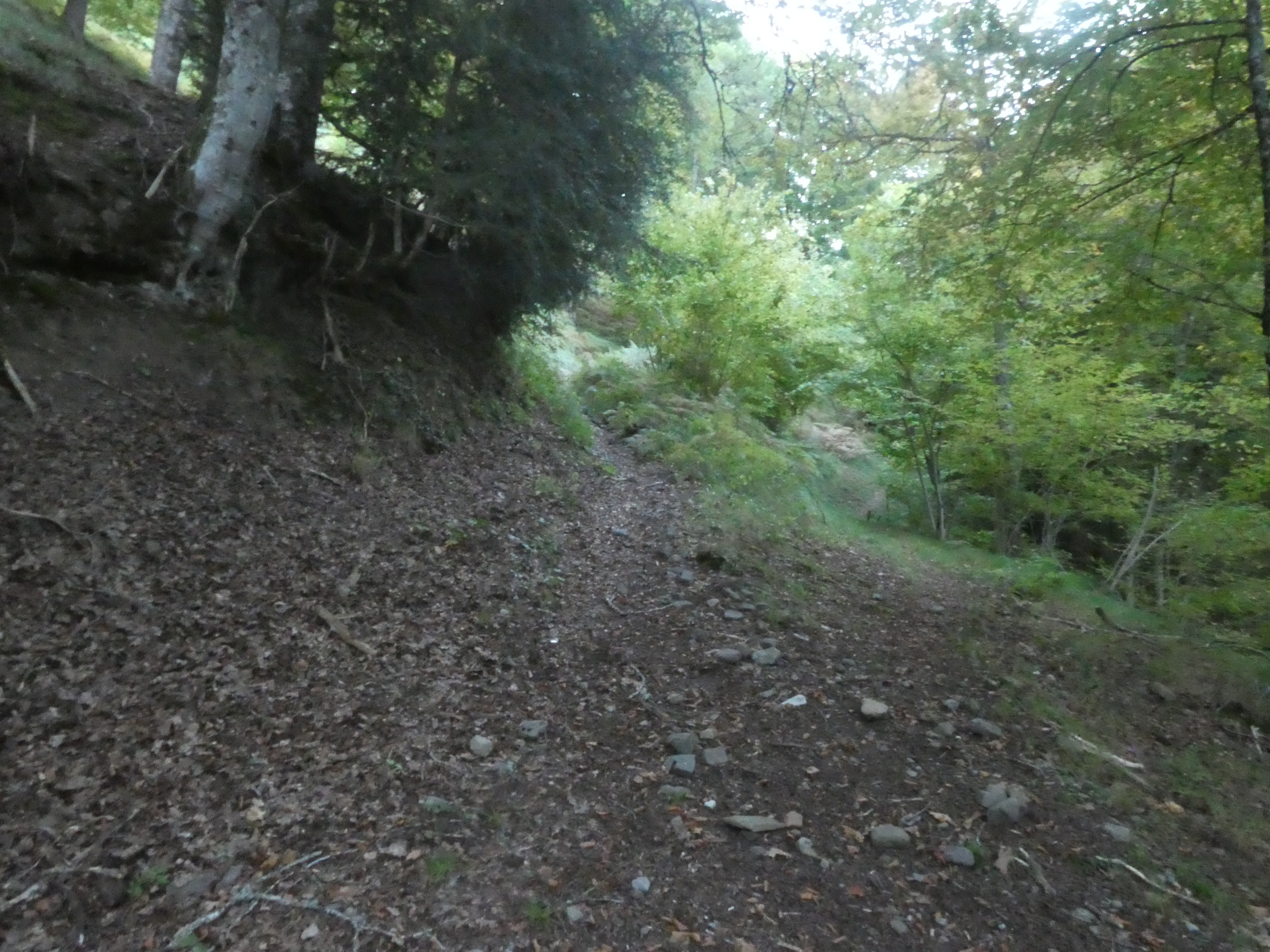 Dès que la Cabane de Bénou ruinée est atteinte (1700 mètres après avoir passé le col), continuer à descendre sur la gauche pour rejoindre la lisière du sous-bois où un sentier peu marqué est présent environ 100 mètres plus loin direction Pont d'Arnousse
