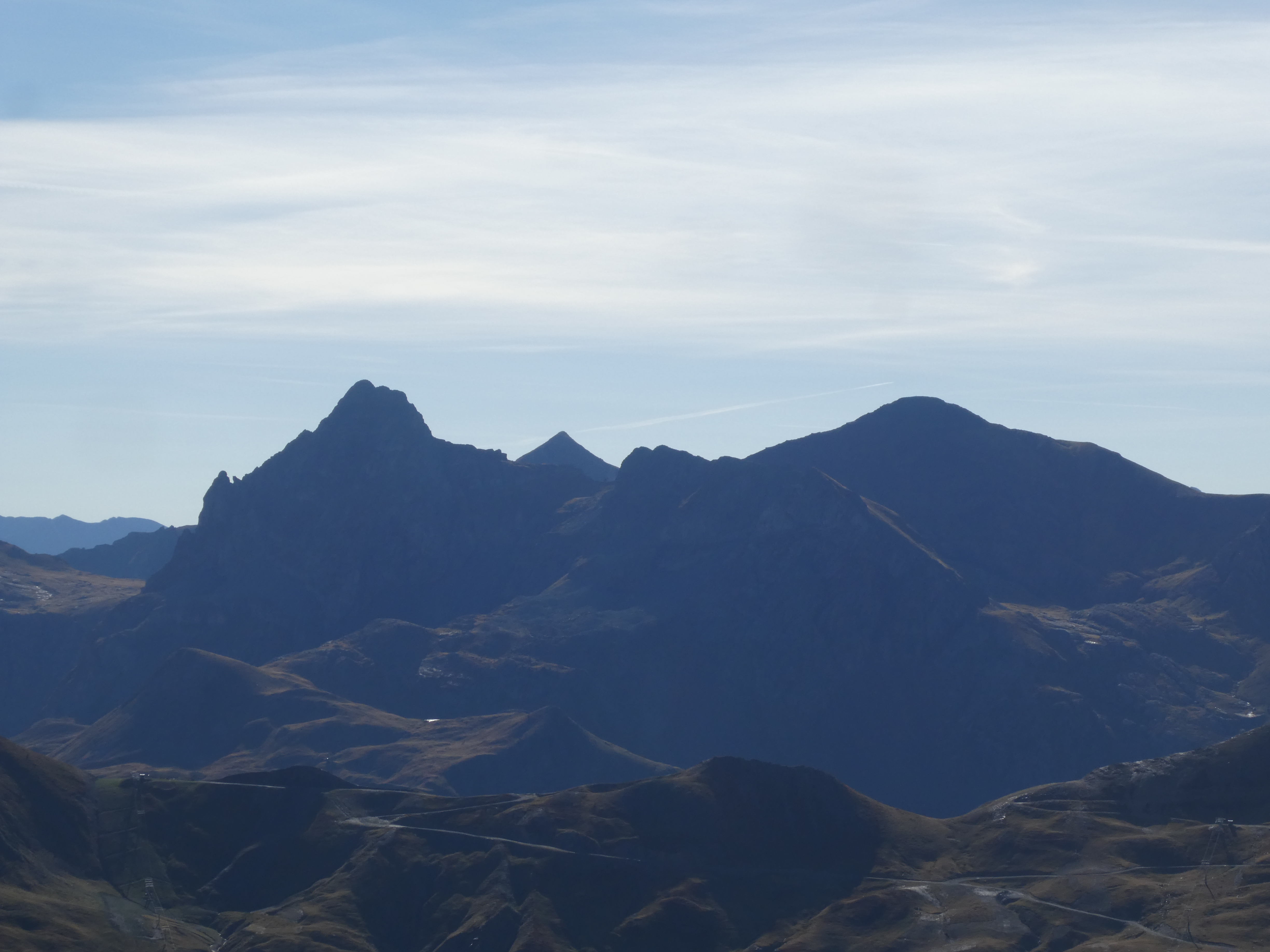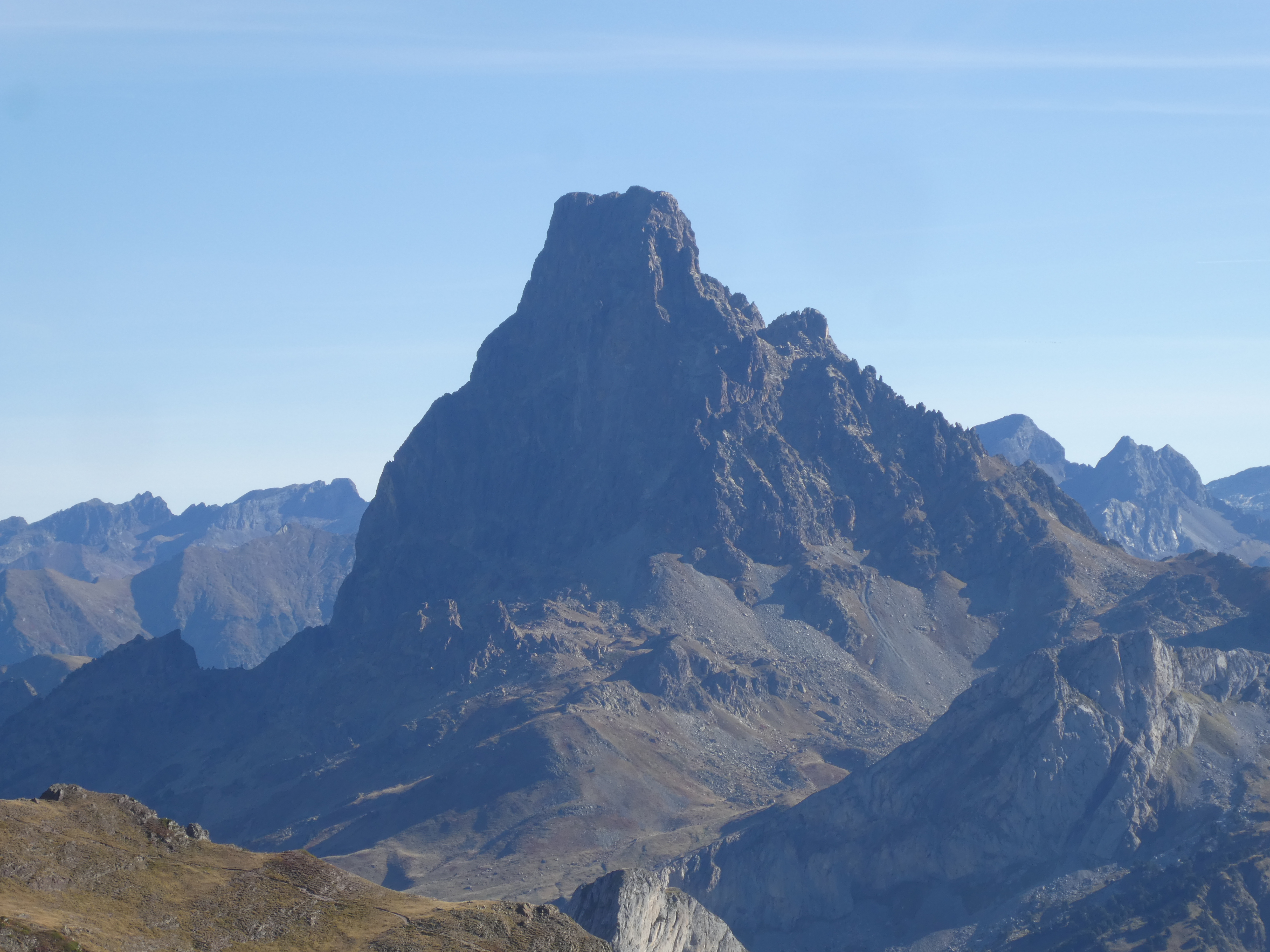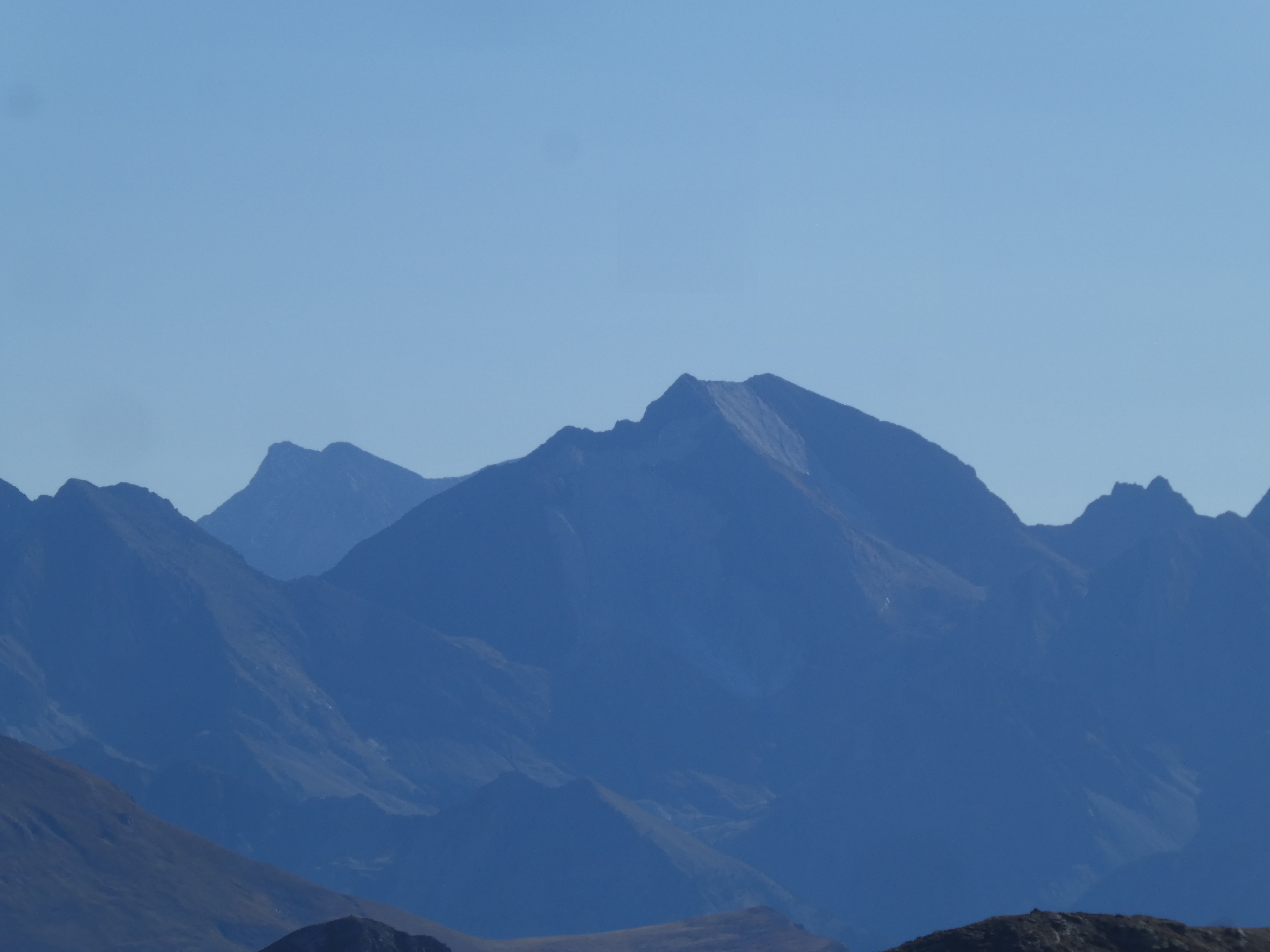 Zoom sur le Pic Palas (2974 m), plus haut sommet des Pyrénées-Atlantiques, et le Pic Balaïtous (3144 m)