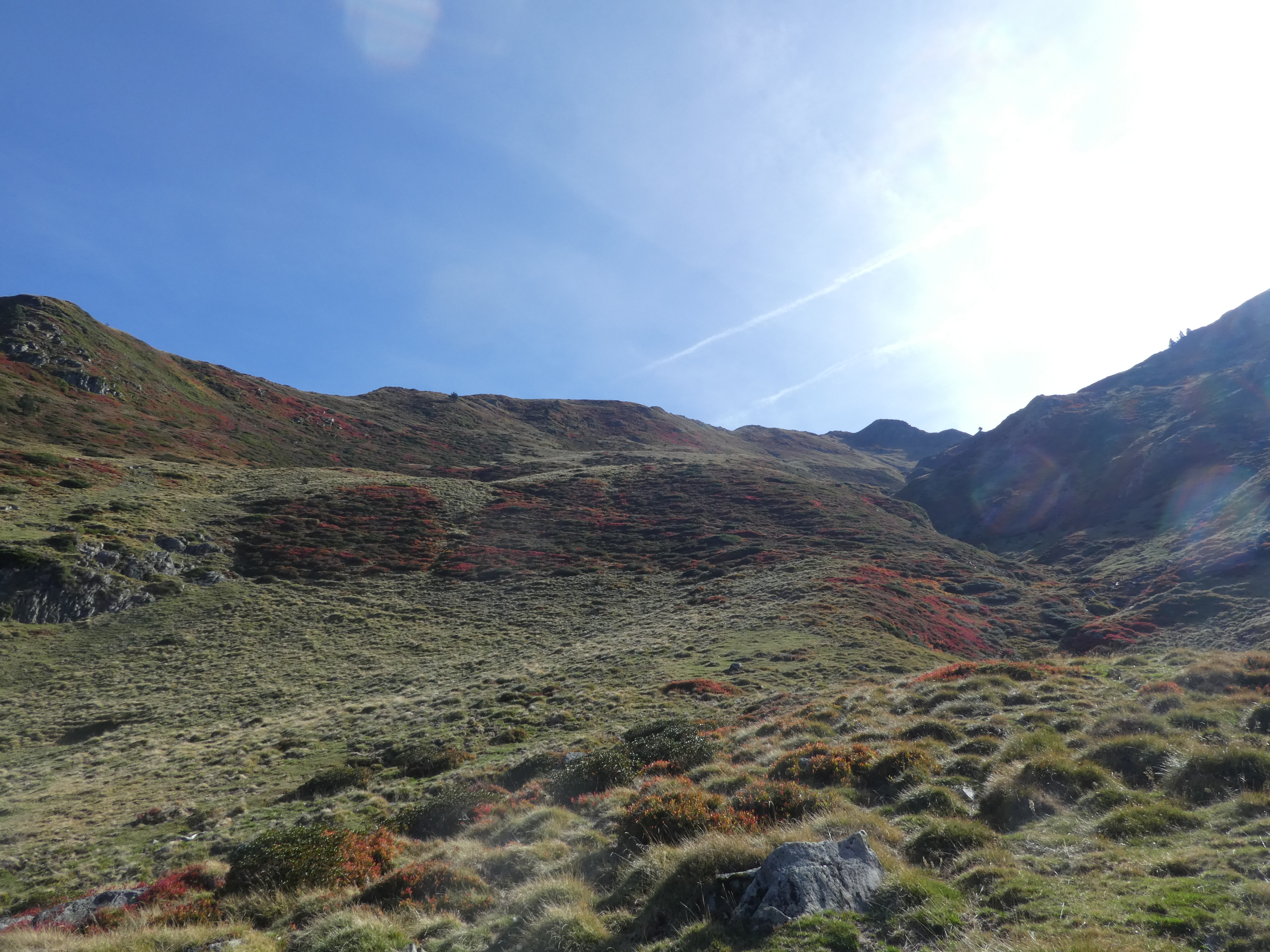 Redescendre du sommet dans le même sens que celui de l'aller direction Vallon de Bénou