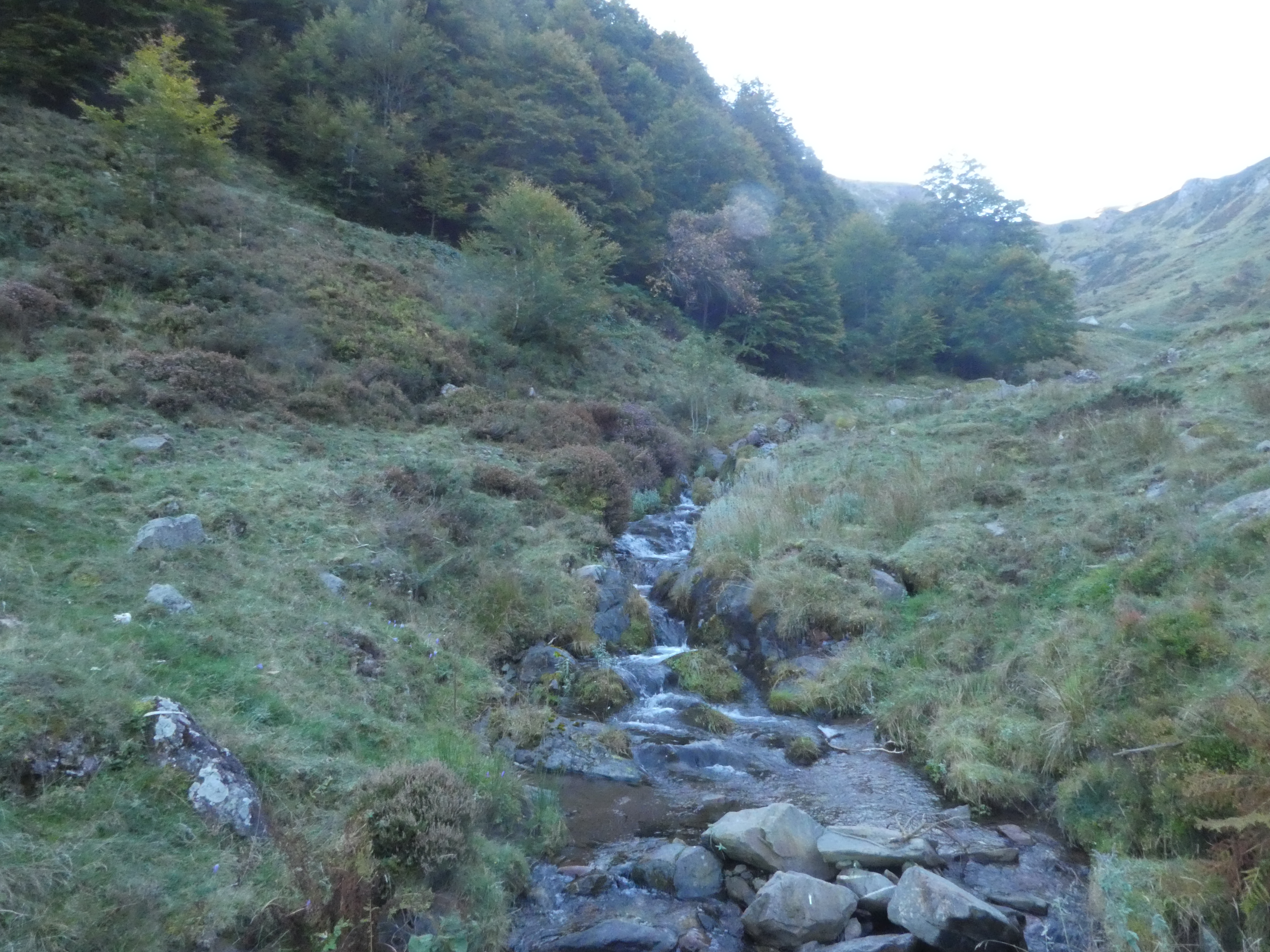Au fur et à mesure de la descente, on aperçoit le lit du Ruisseau de Bénou : il faut toujours rester rive droite en suivant d'assez loin son lit pour rejoindre un plateau herbeux intermédiaire entre le col précédemment quitté et la Cabane de Bénou