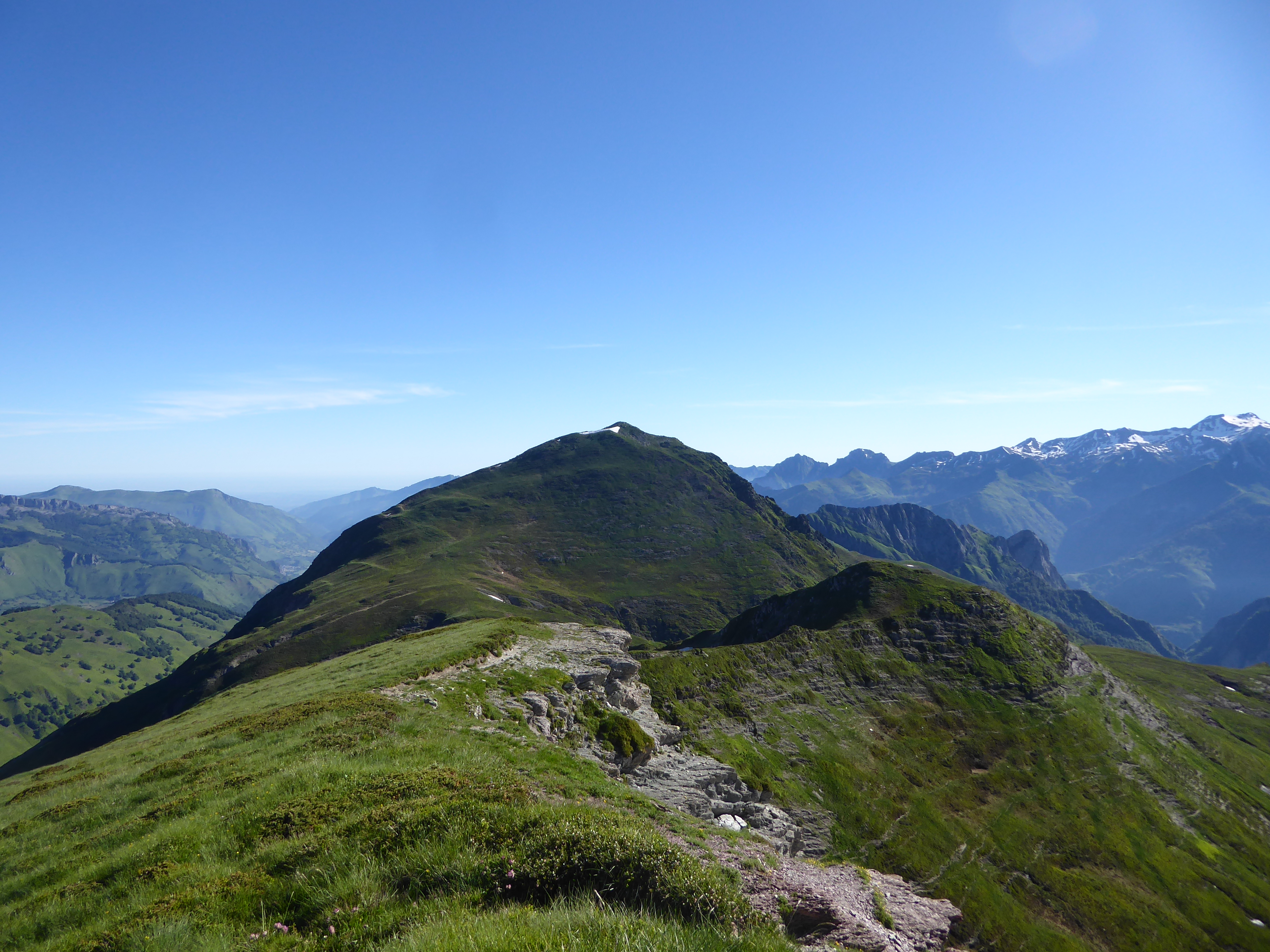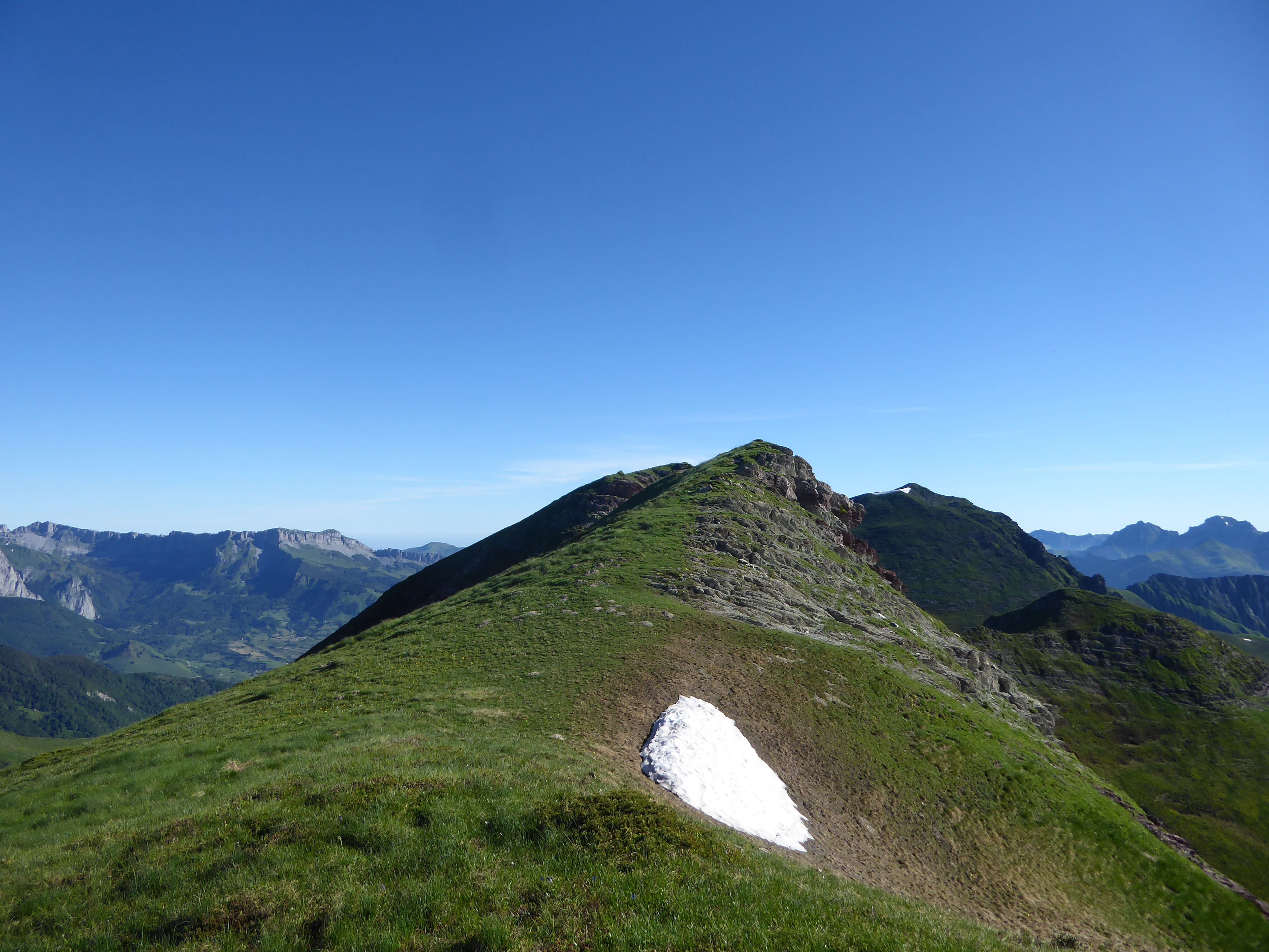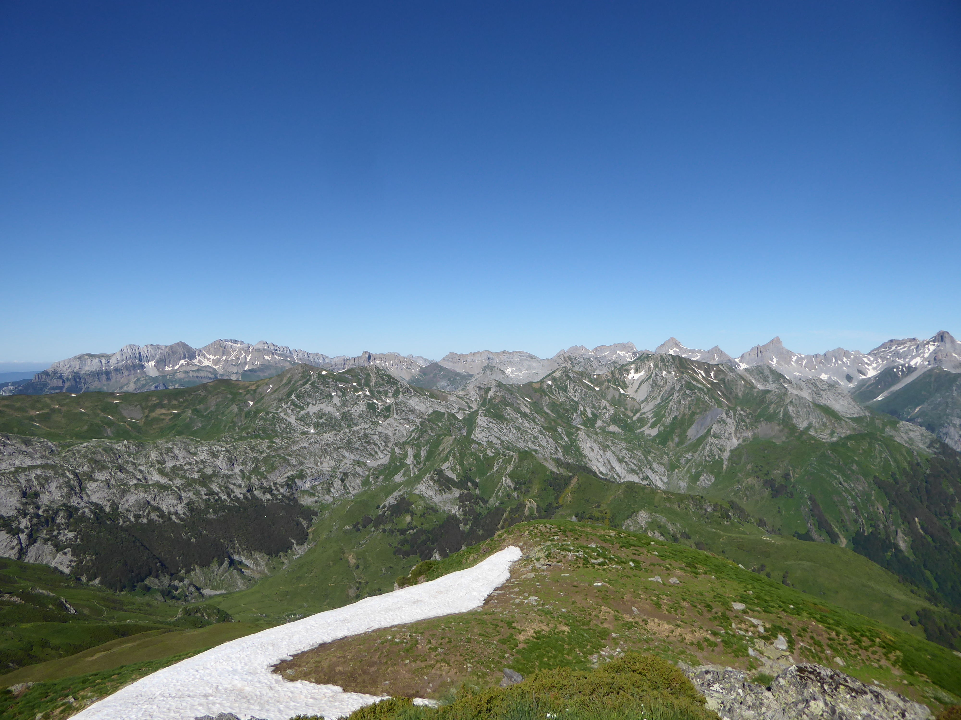 Arrivée au sommet de la Table de Souperret (2116 m) : magnifique panorama aujourd'hui sur les sommets de la Vallée d'Aspe mais aussi sur ceux de la Vallée d'Ossau et de l'Espagne proche !