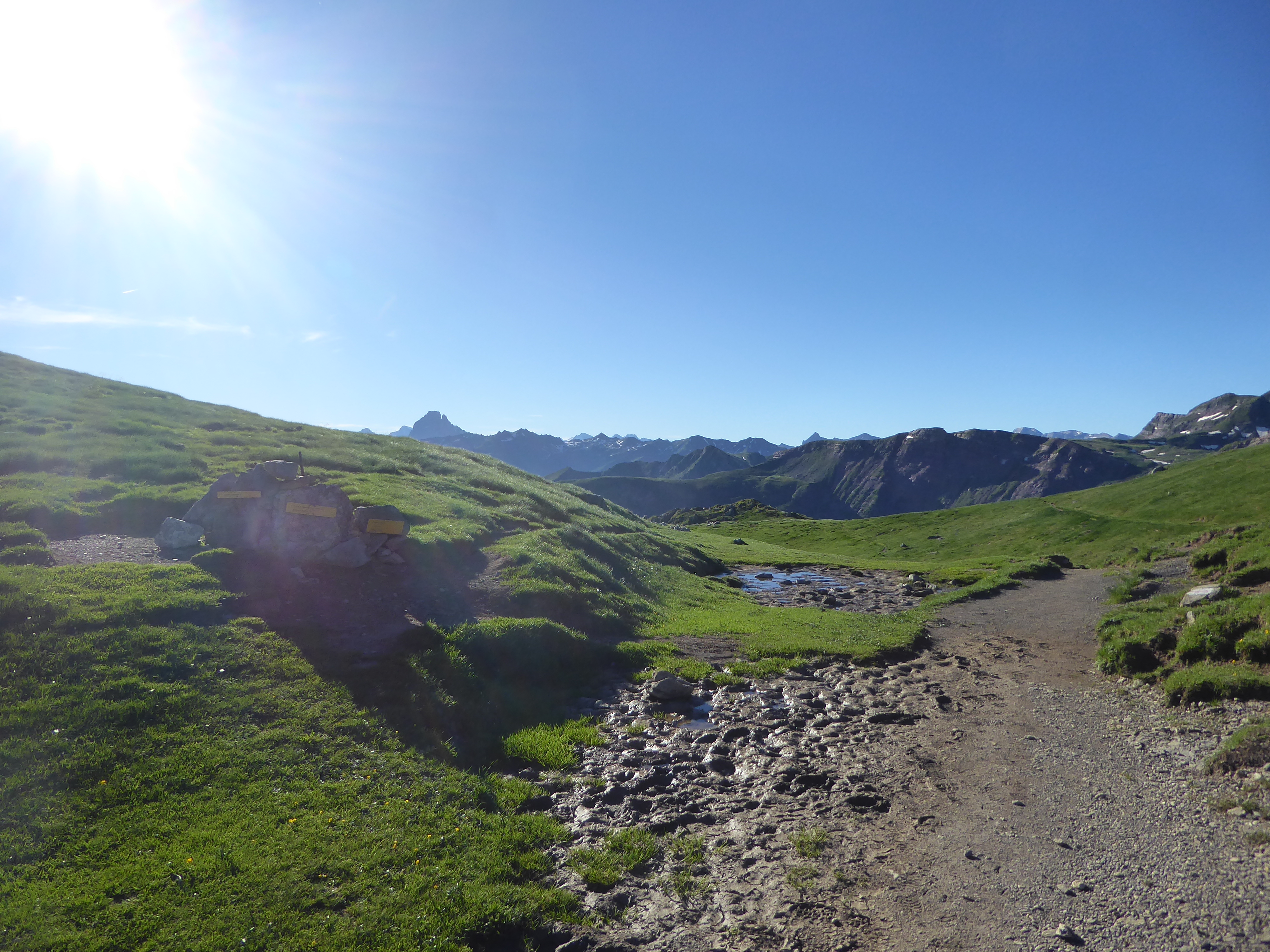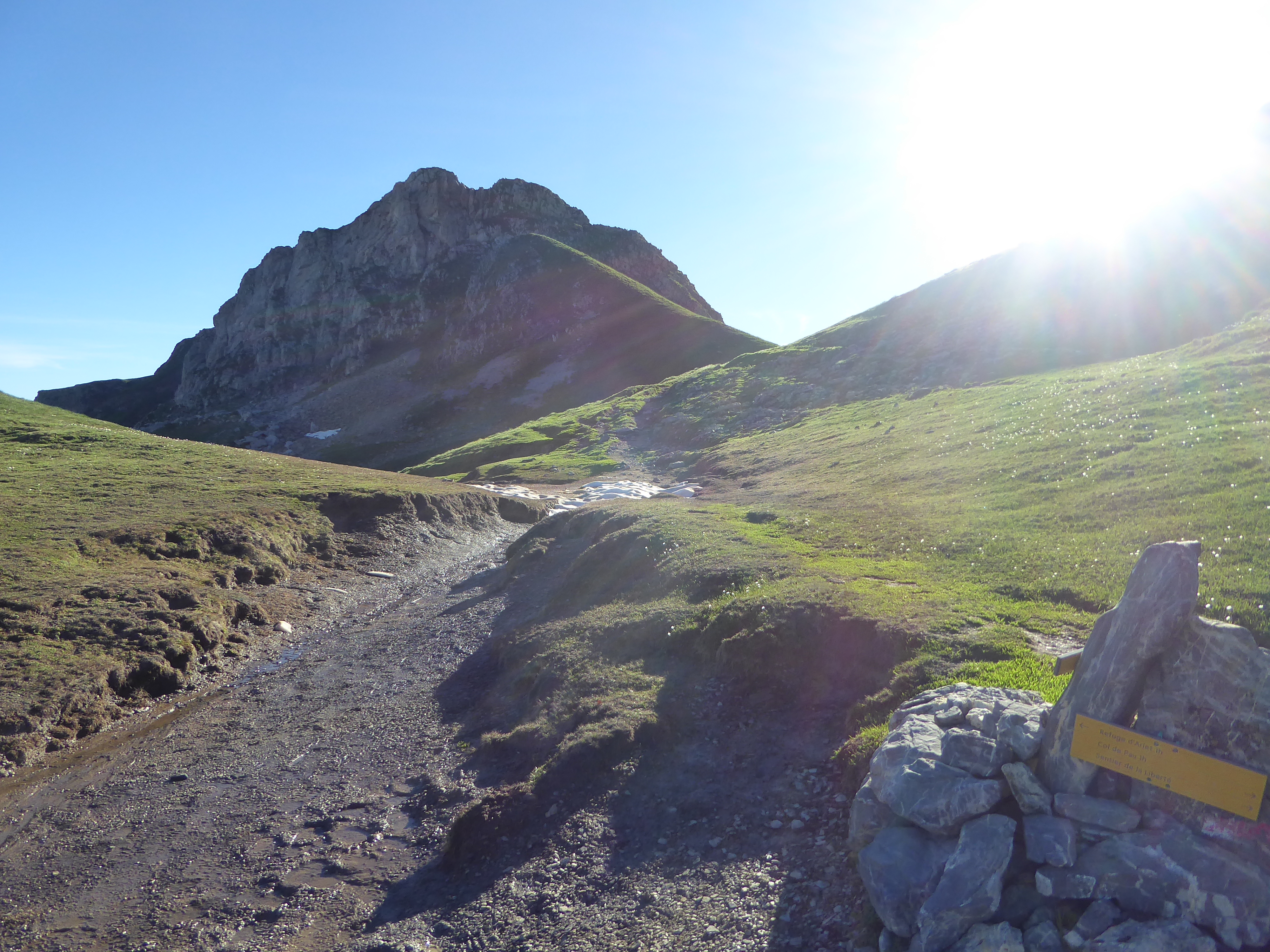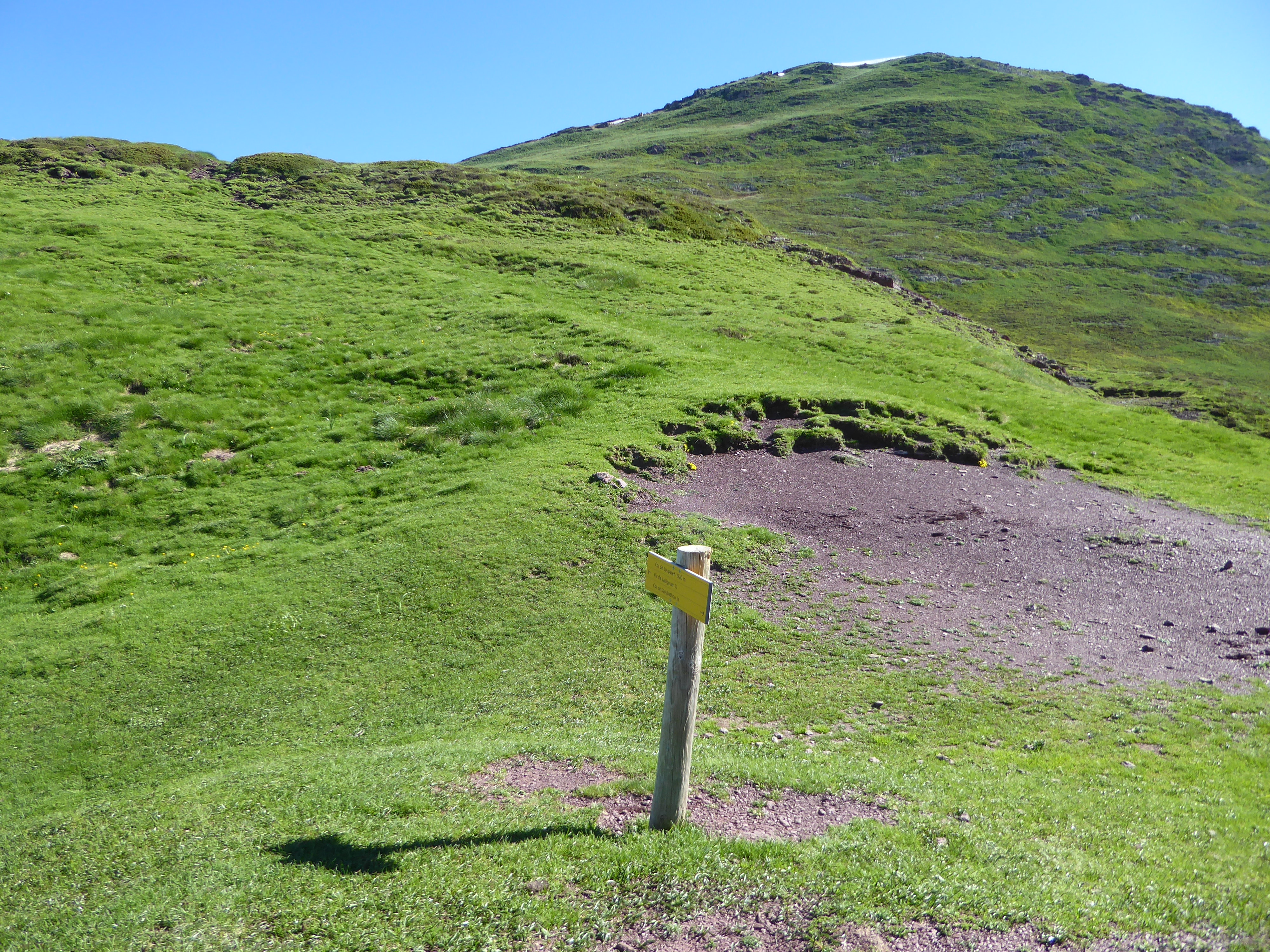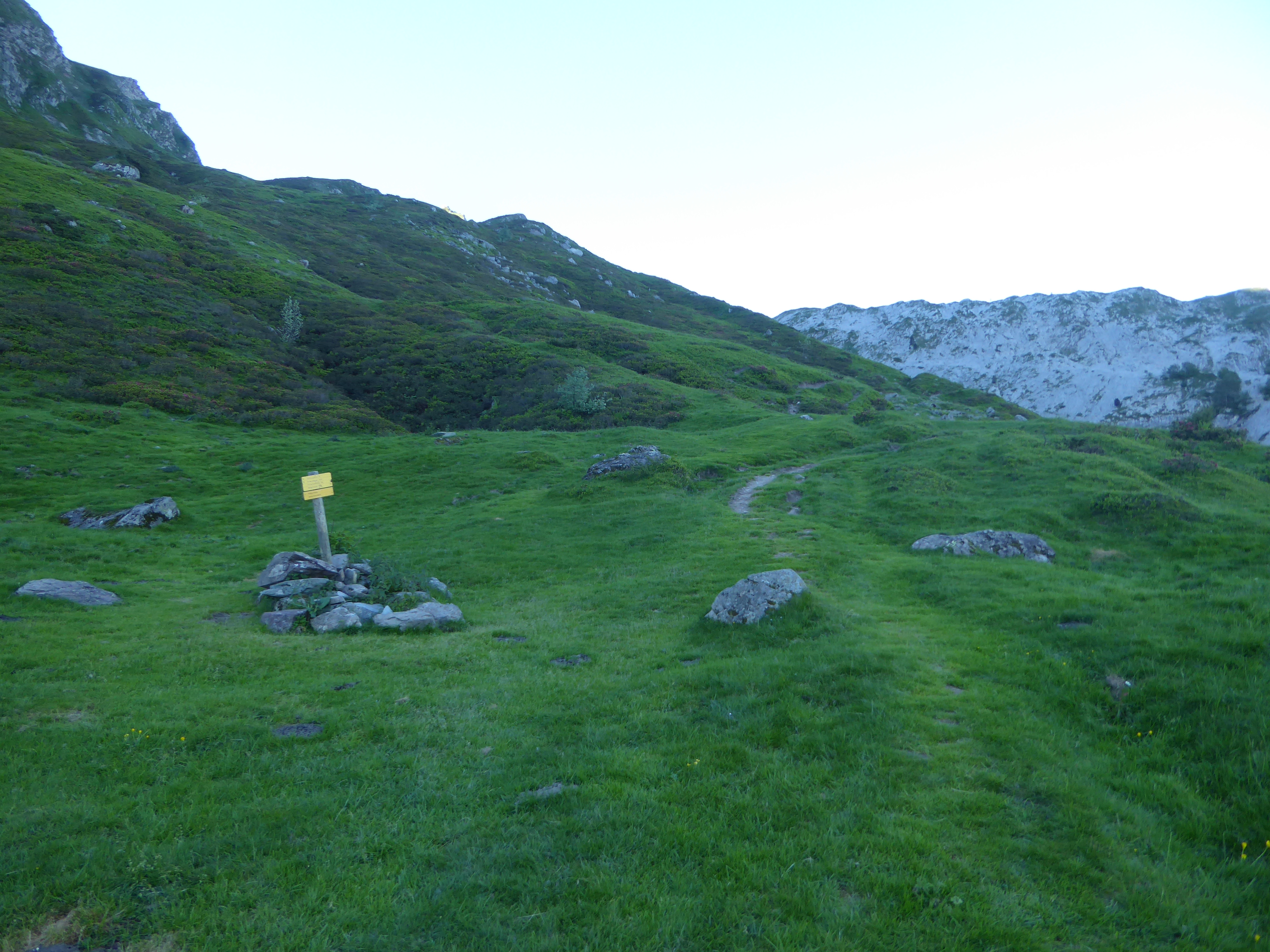 A ce croisement marqué d'un panneau directionnel avant le Col de Saoubathou (1949 m), suivre le chemin partant sur la gauche direction Col de Saoubathou