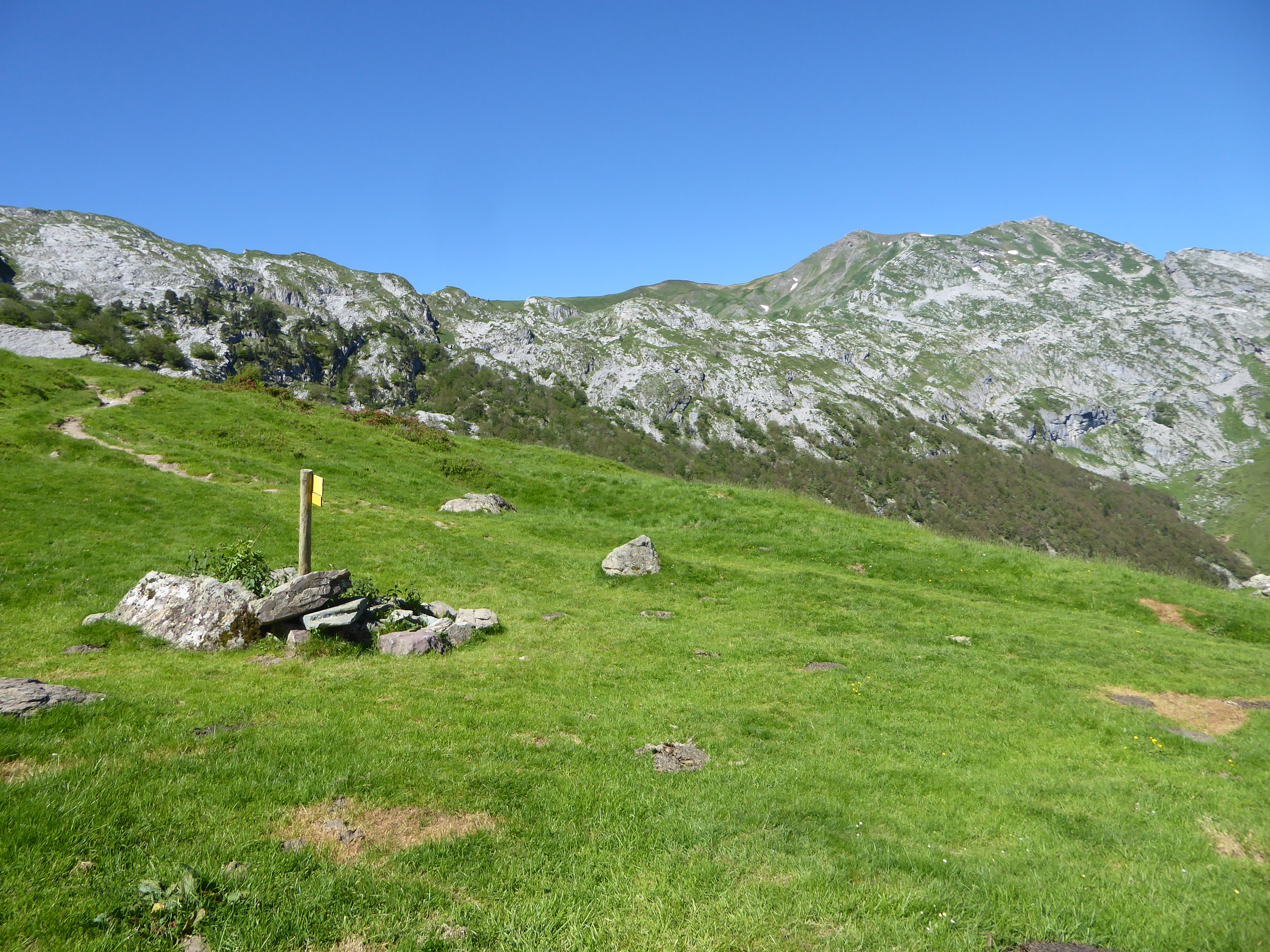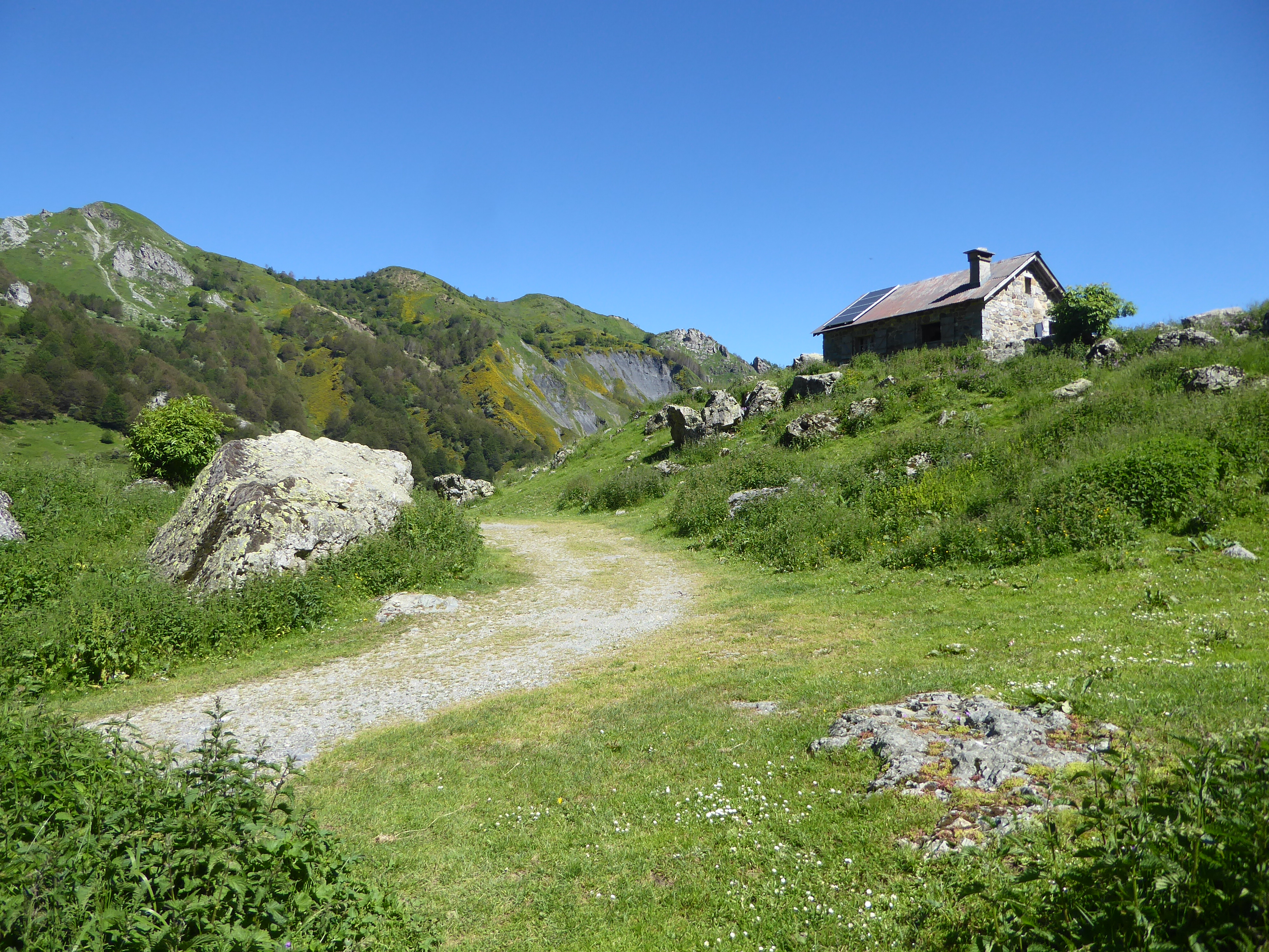 Ignorer les chemins coupant la piste et menant au Pic de Labigouer ; continuer à suivre la piste jusqu'à la prochaine cabane direction Refuge d'Arlet