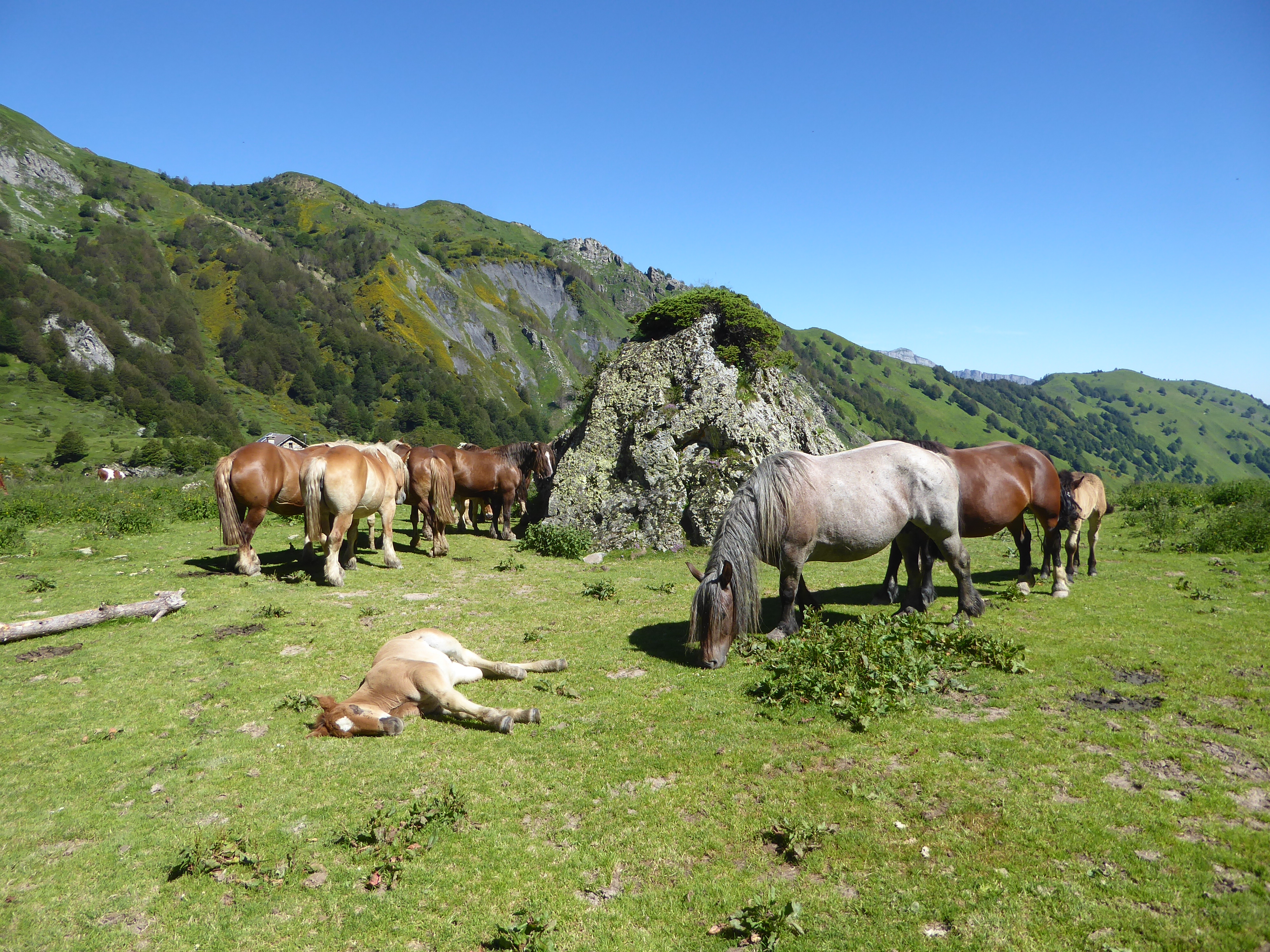 Les cheveaux sont toujours là ... avec le poulain faisant une bonne sieste !