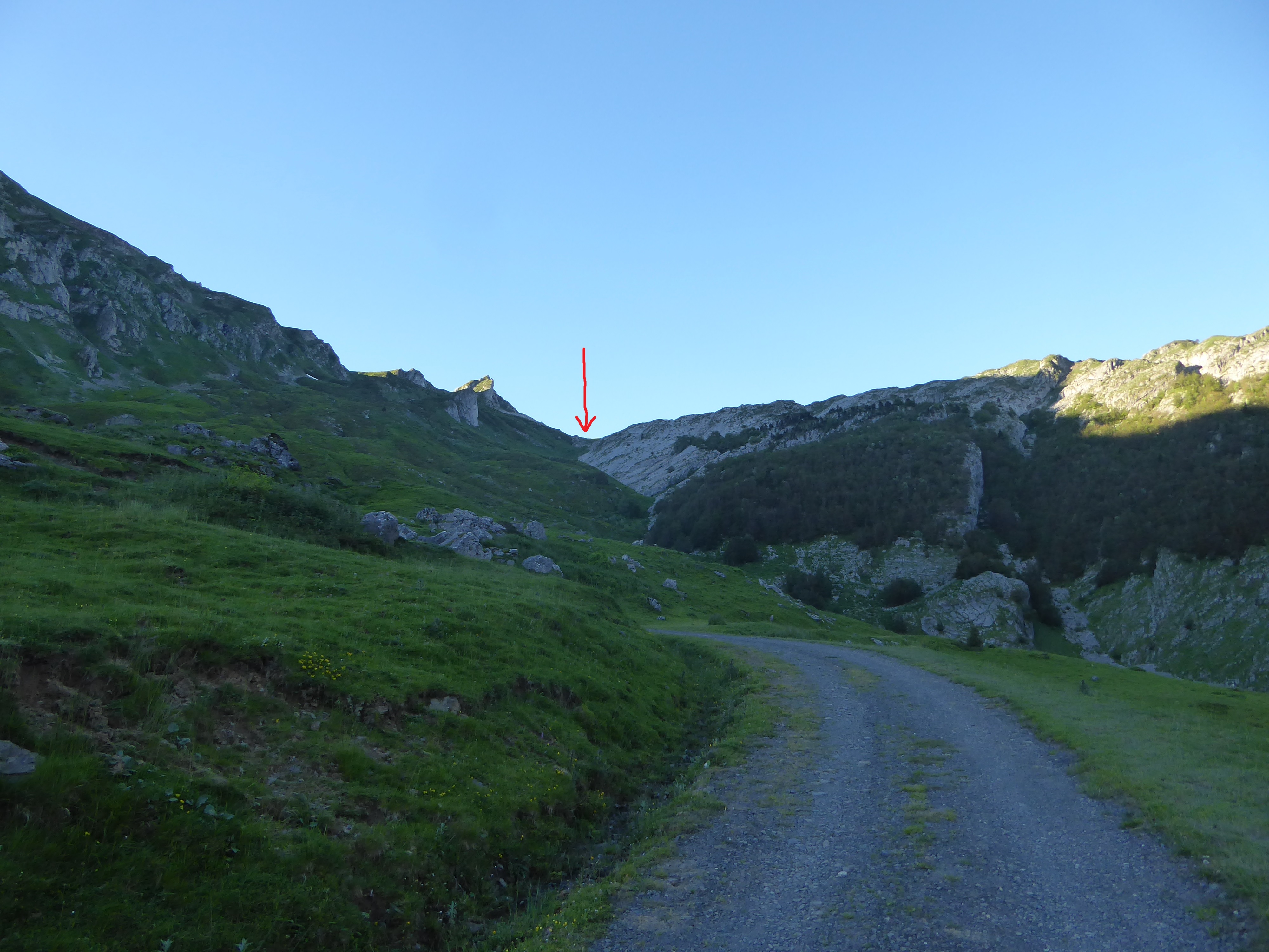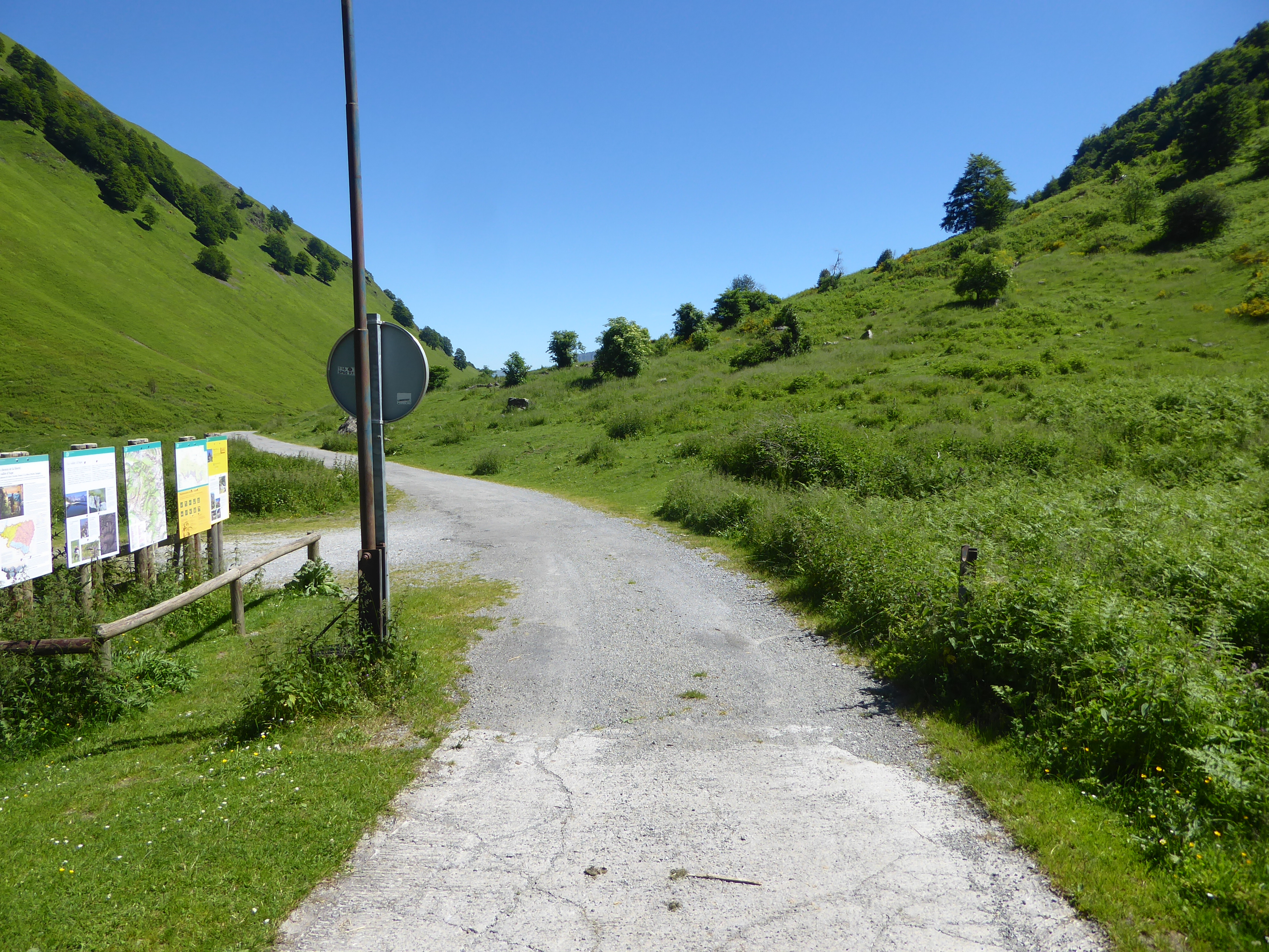 Départ Parking d'Aumet (1152 m) : suivre la large piste partant tout droit direction Refuge d'Arlet, aucun balisage (entrée dans le Parc National des Pyrénées)