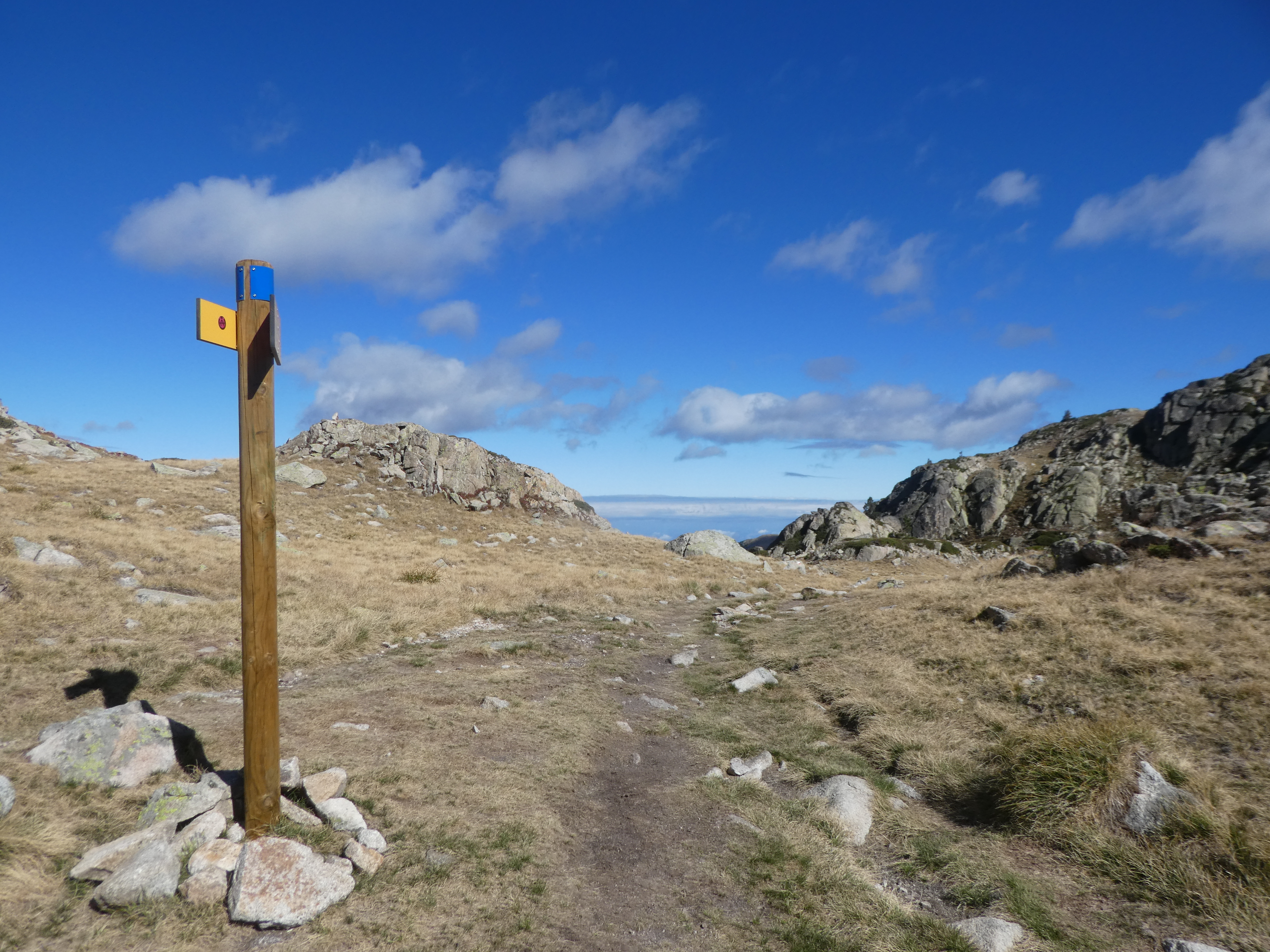 Départ Virage du Garet - D918 (1423 m) : suivre le chemin descendant tout droit direction Refuge de Campana de Cloutou, balisé en jaune
