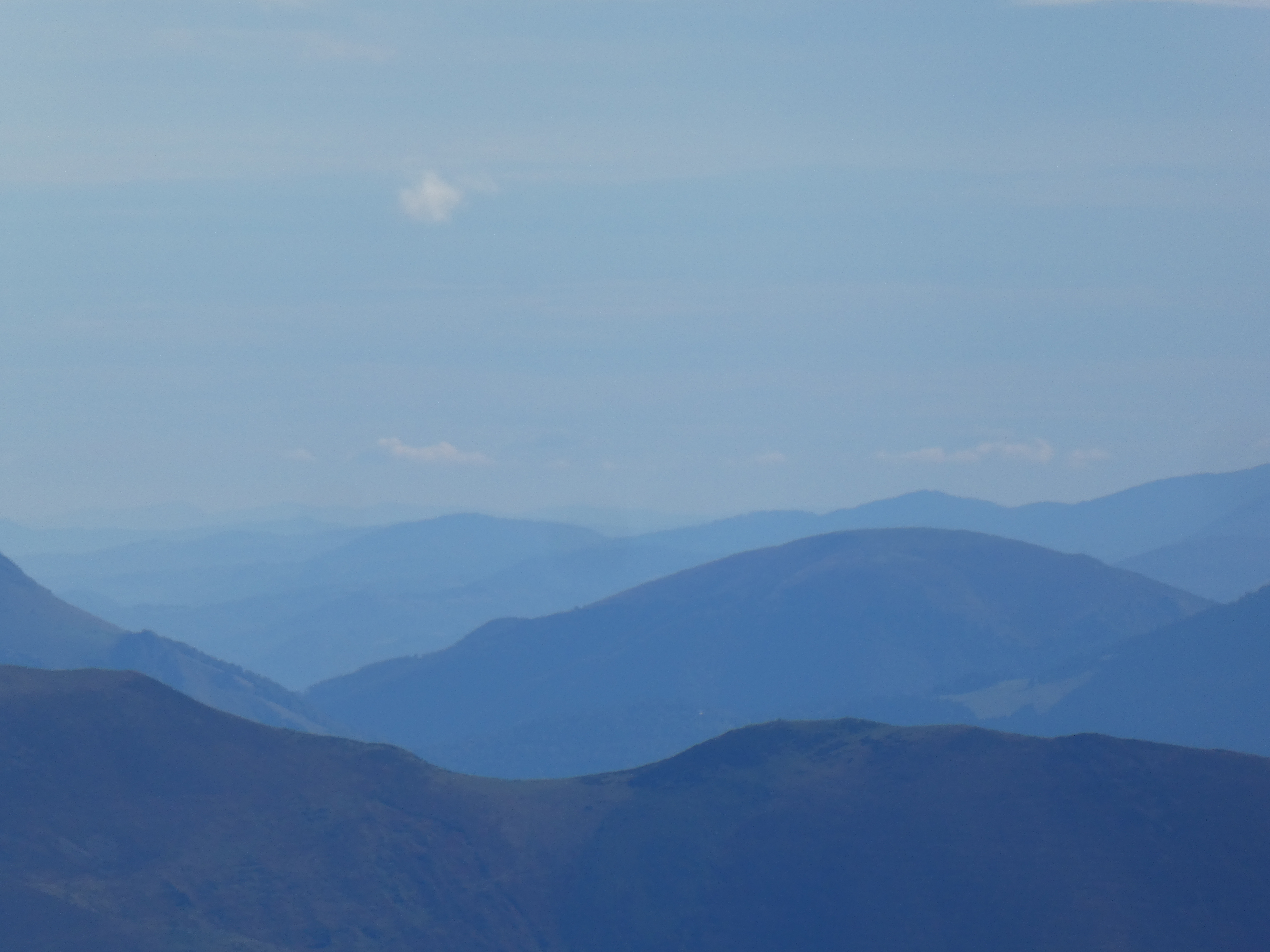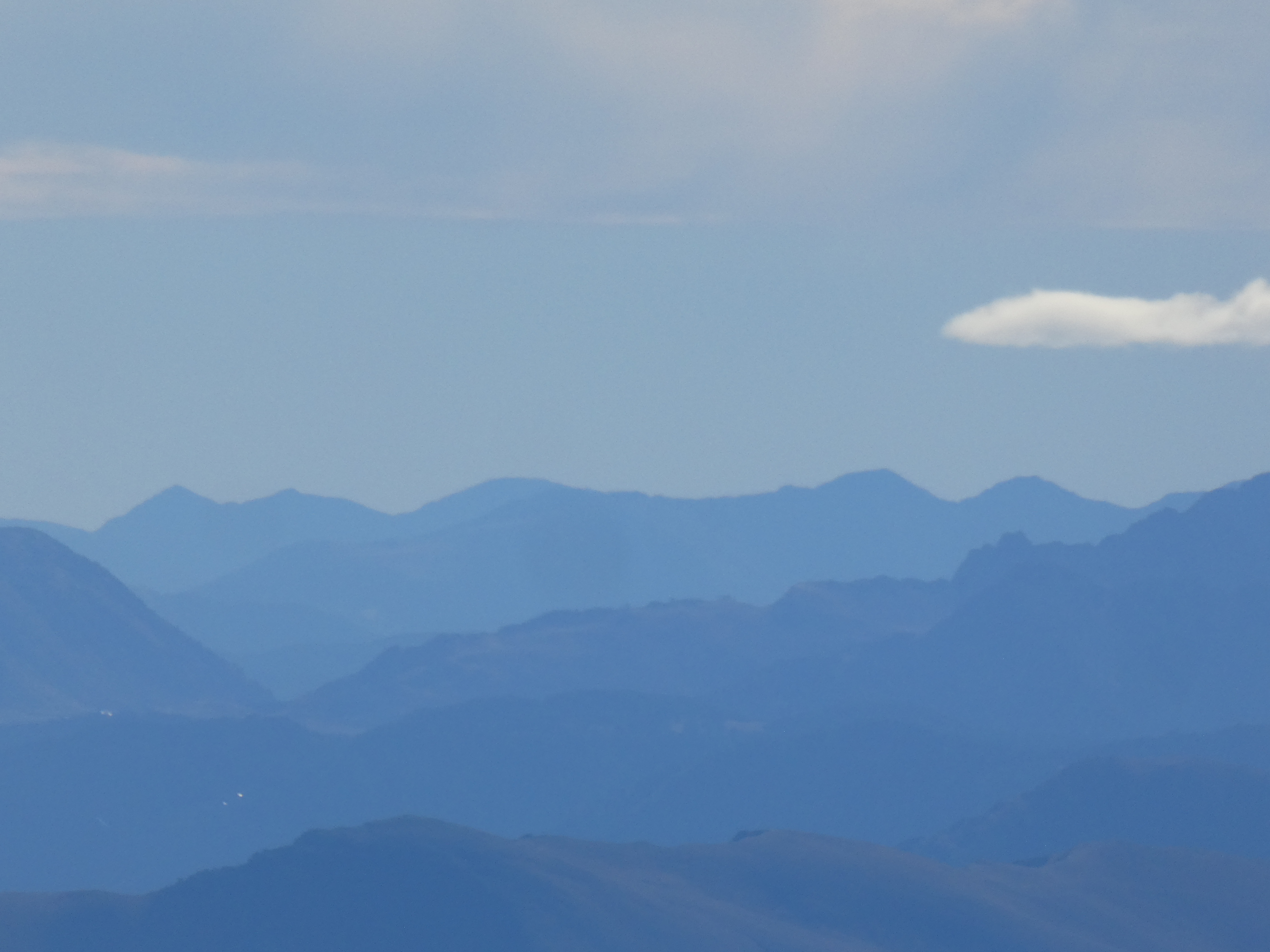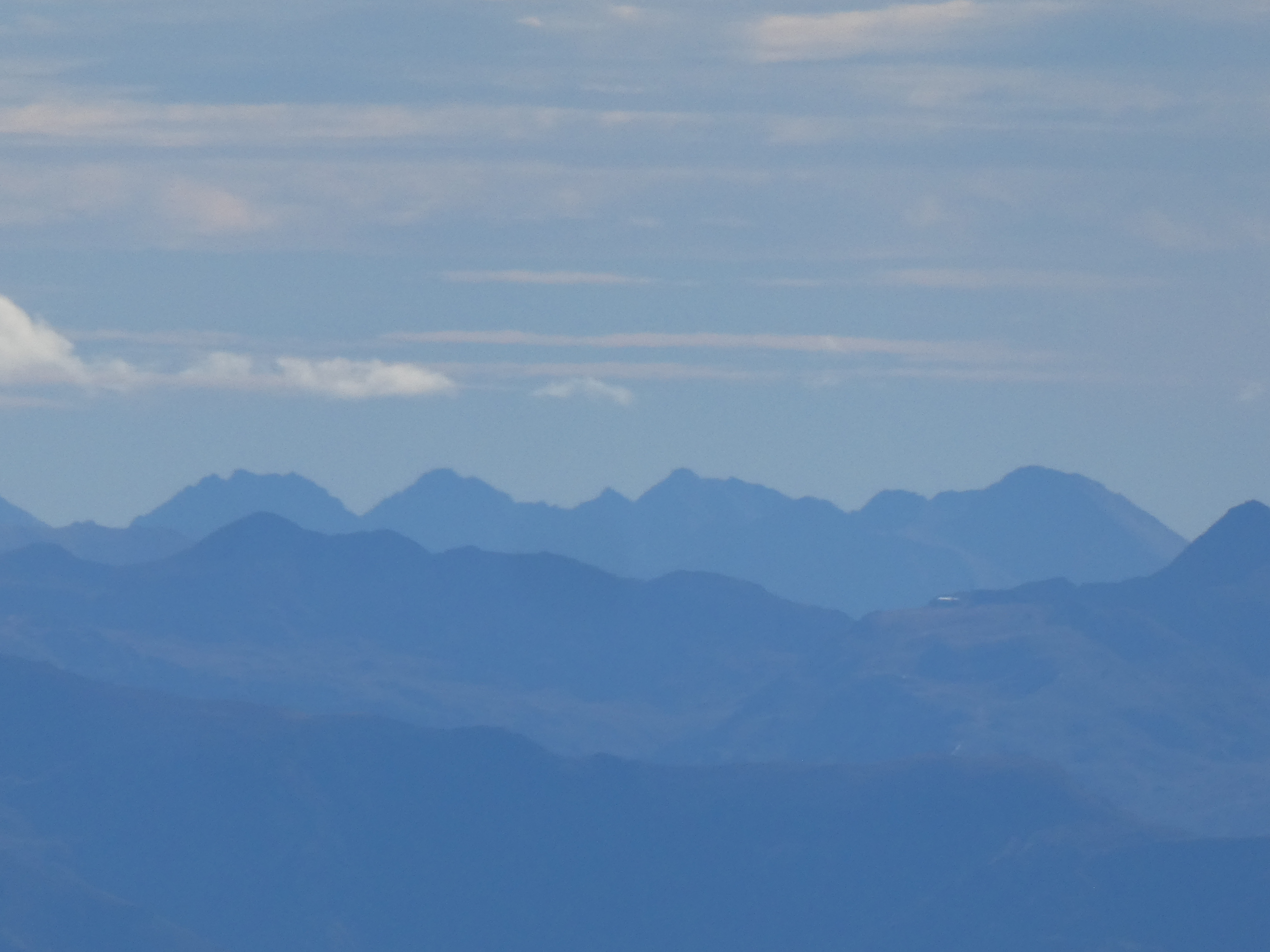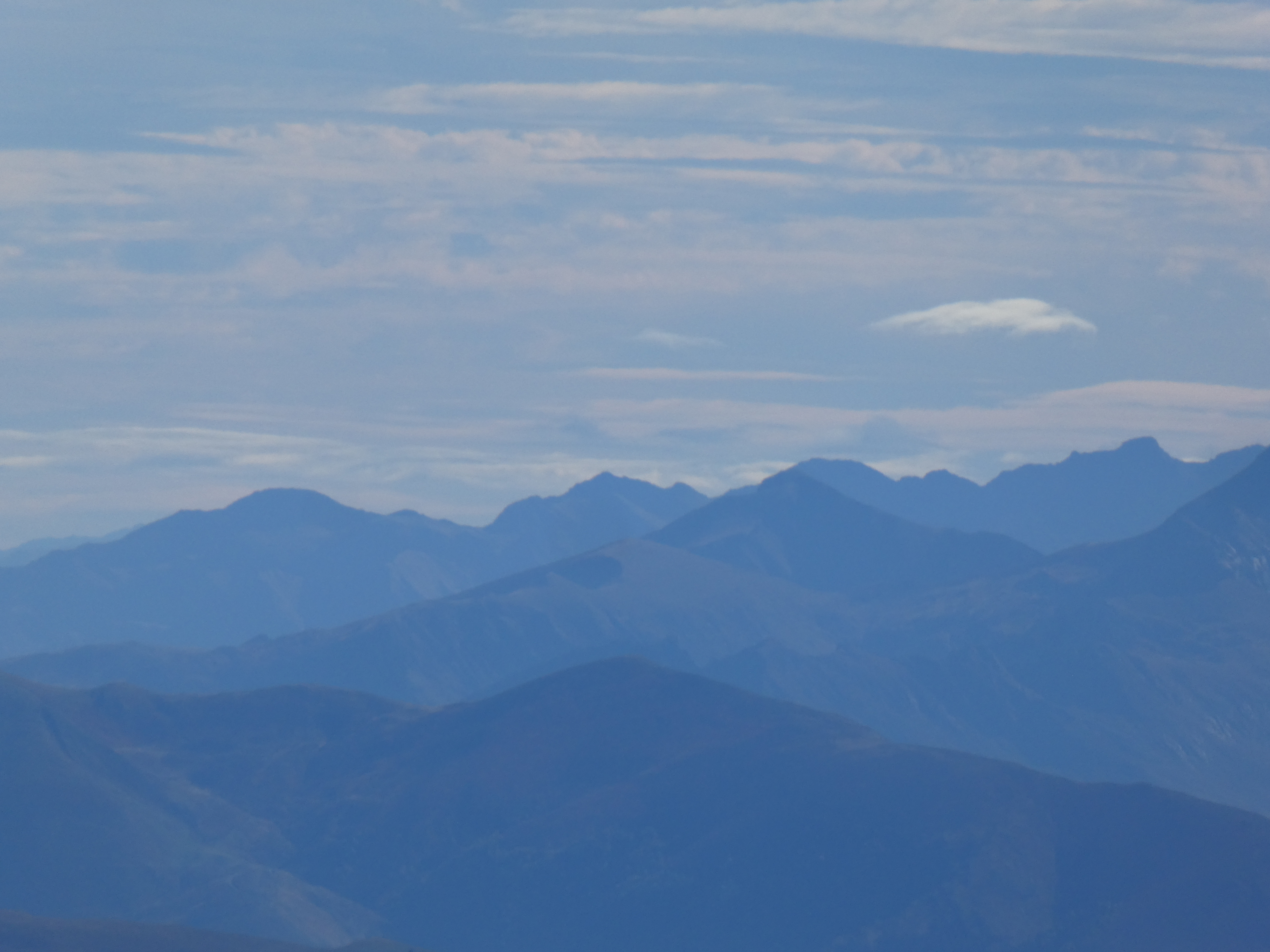 Zoom sur le sommet de Montcoustan (917 m) au centre-gauche et le Pic de Calamane (1363 m) à droite