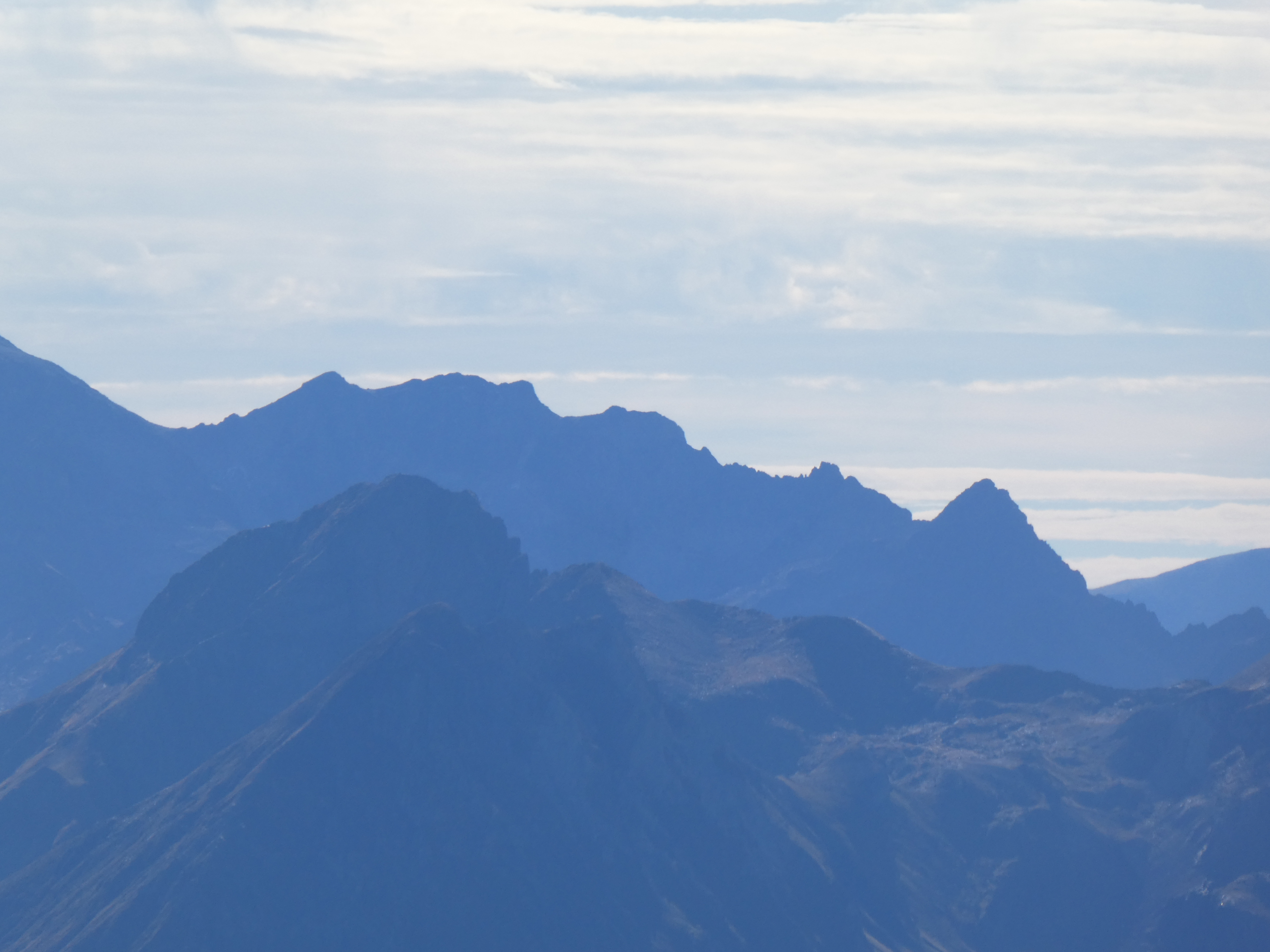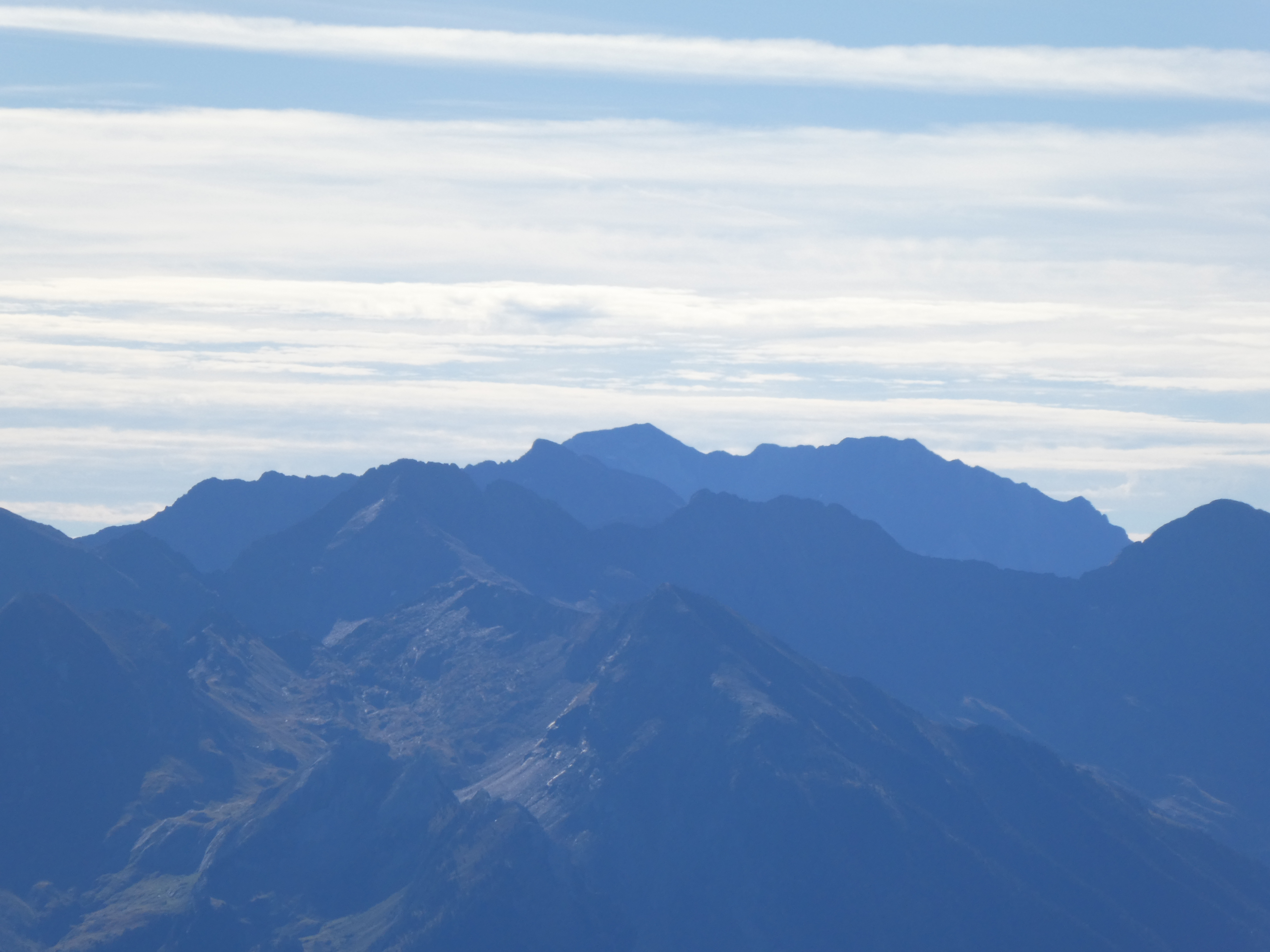 Zoom sur le Pic de Palada (2681 m) au centre-gauche, le Milhas (2739 m) au centre et le Pic des Tourettes (2771 m) au centre-droit