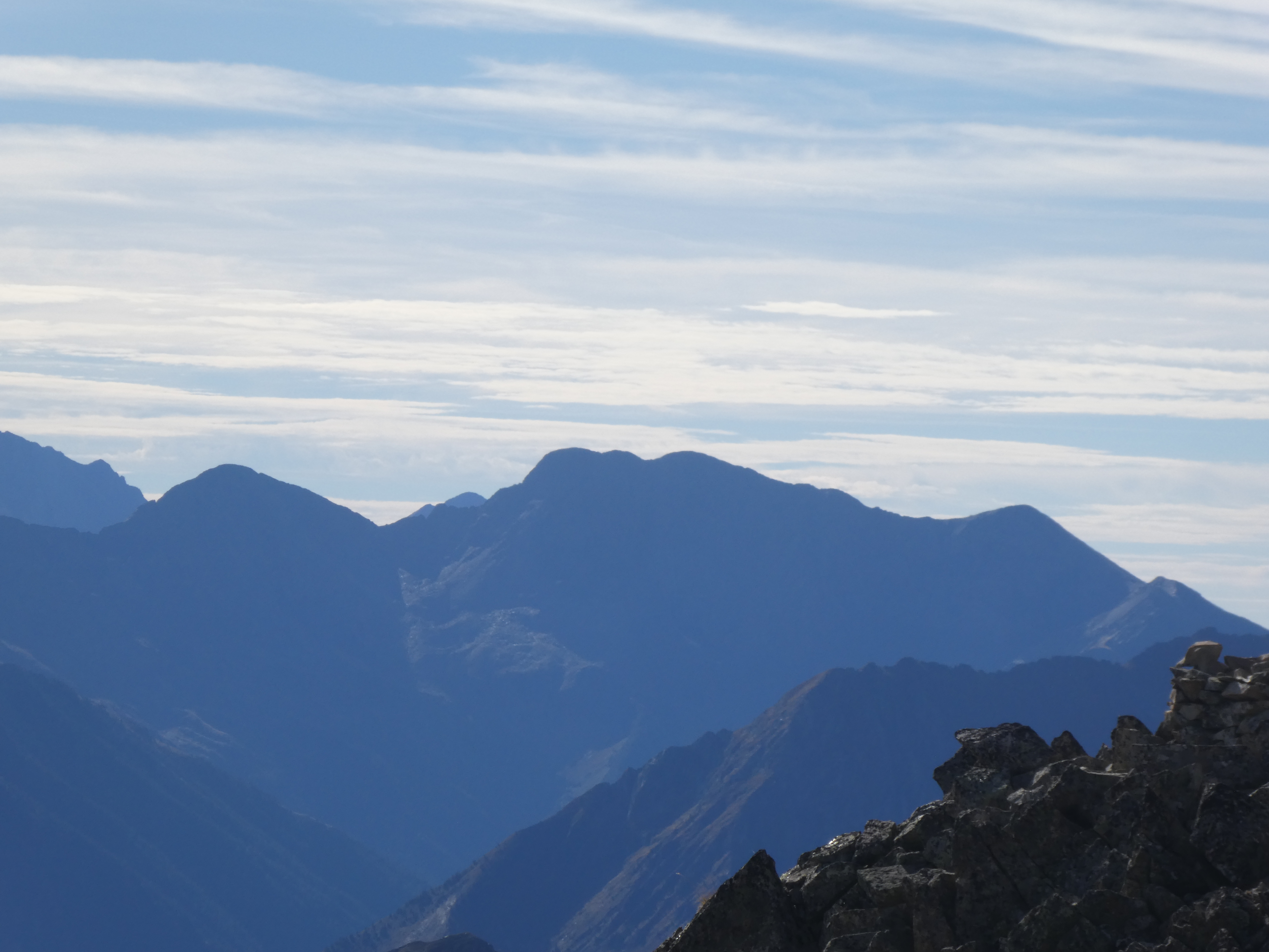 Zoom sur le Pic de Rosari de Baciver (2617 m) au centre-gauche, et le Tuc de Marimanha (2679 m) et le Pic de la Rouge (2903 m) au centre