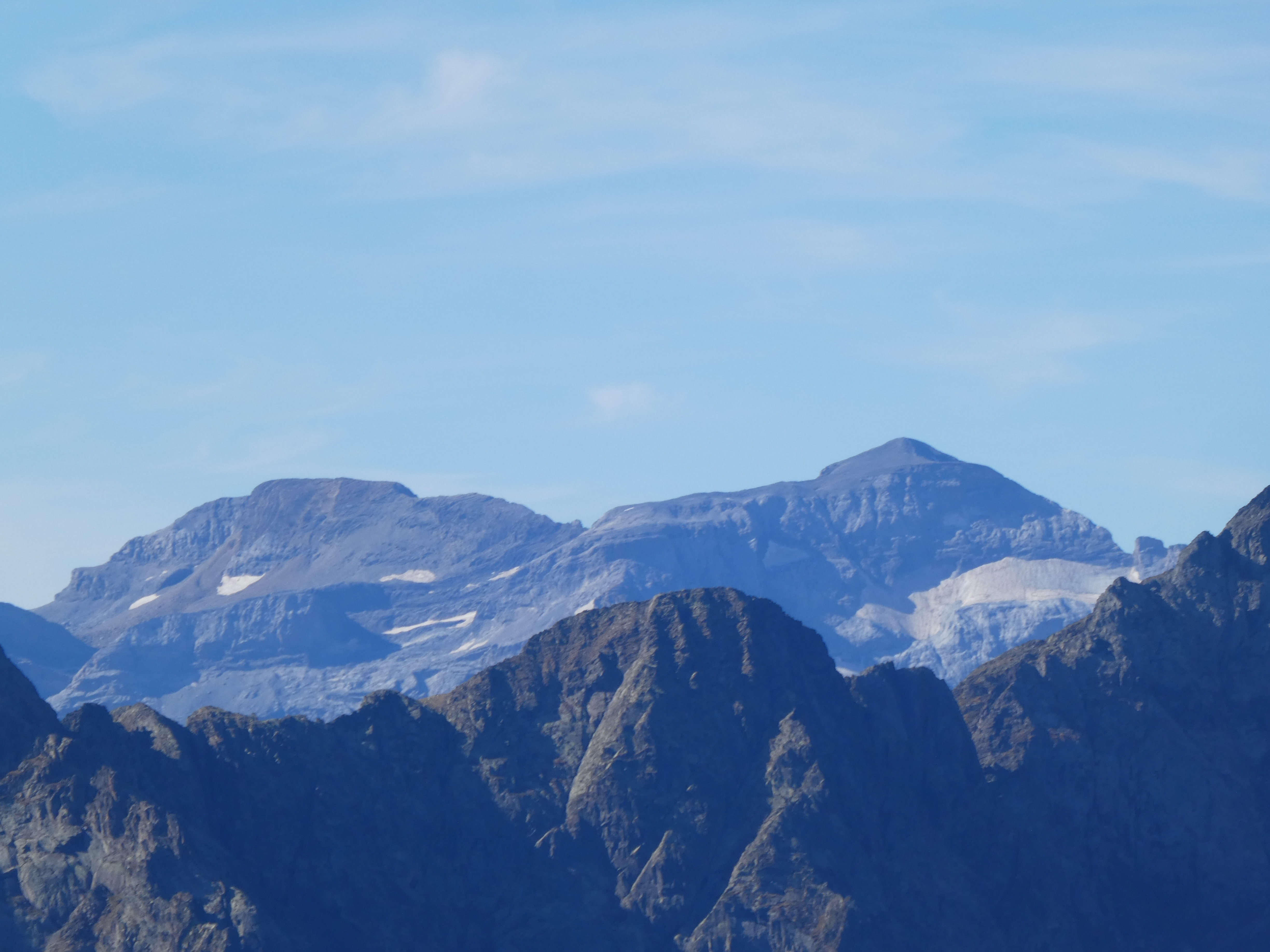 Zoom sur le Pic de Sarroués (2835 m) à gauche, la Punta Suelza (2972 m) au centre, et le Pic d'Arriouère (2866 m) et la Punta Fulsa (2866 m) à droite