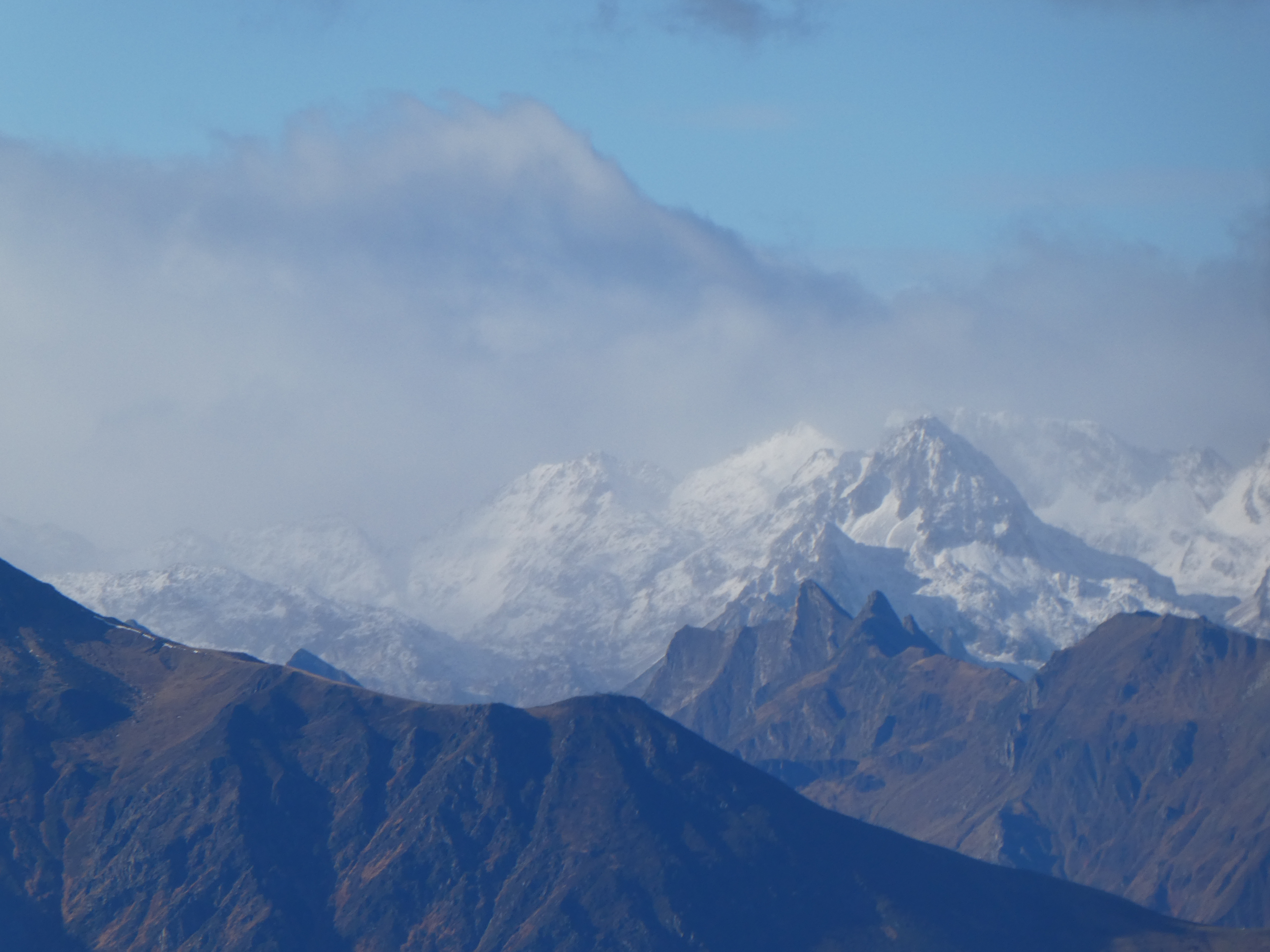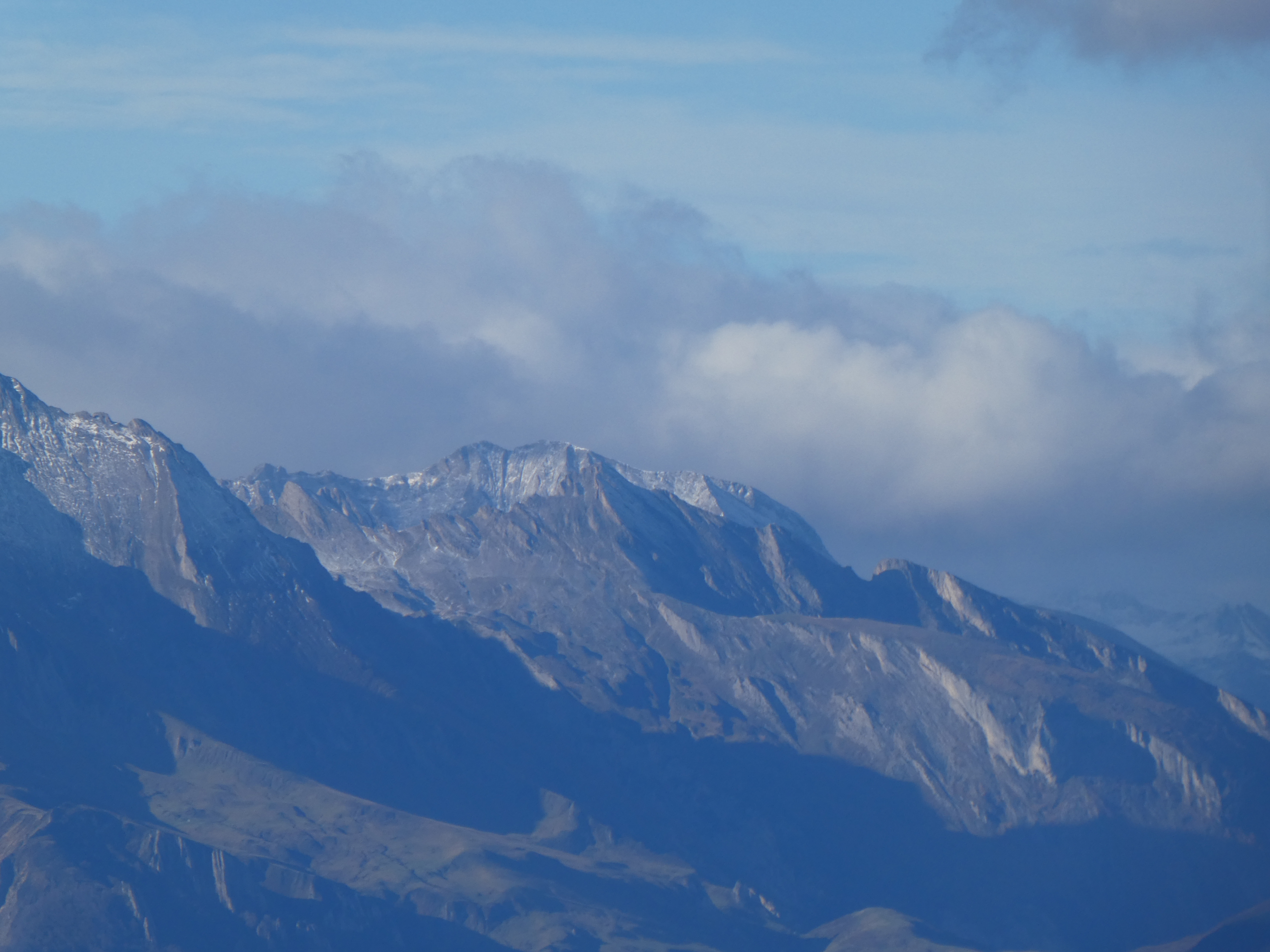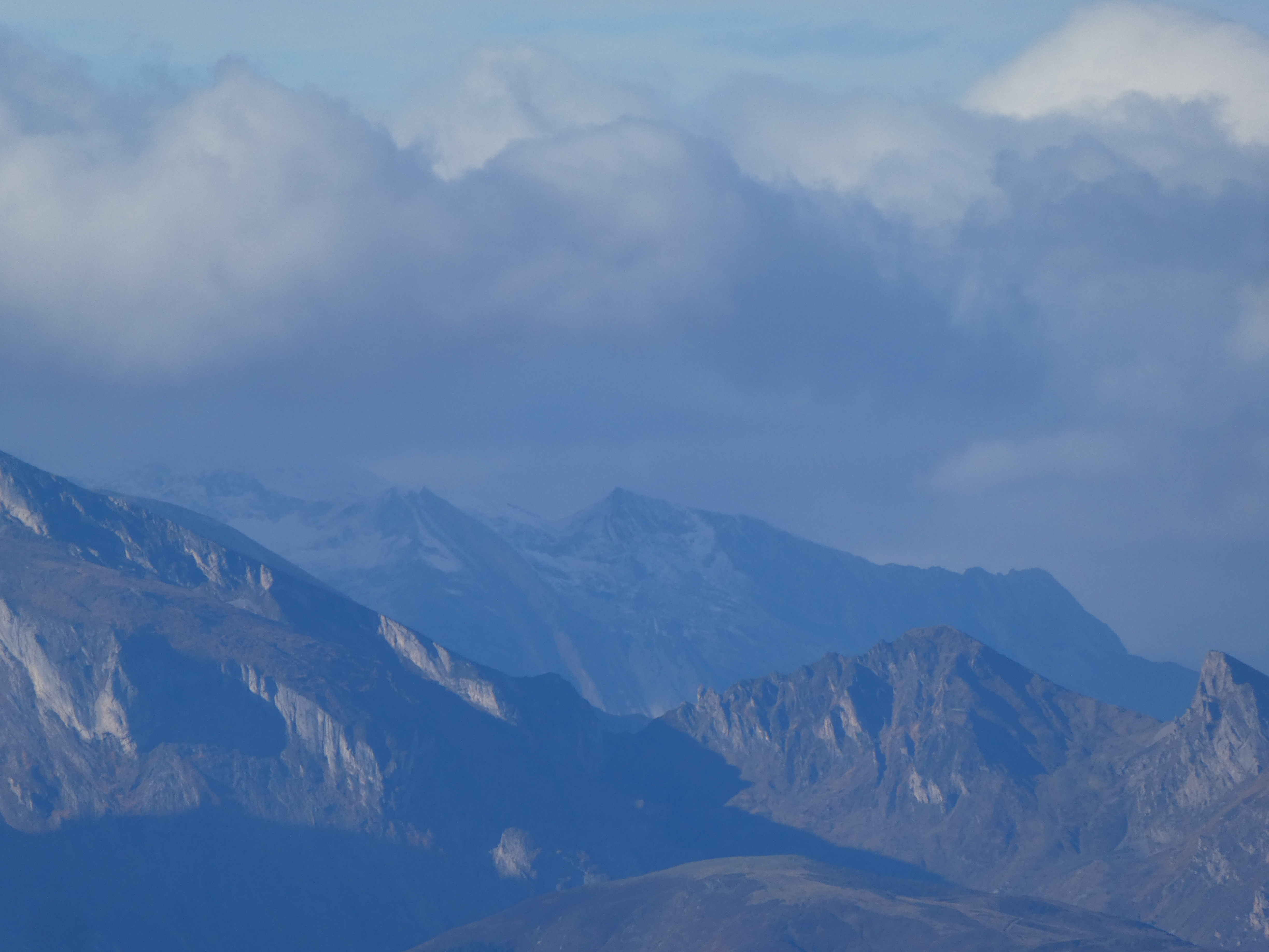 Zoom sur la Pène d'Aragon (2918 m) au centre-gauche et le Pic de Cambalès (2965 m) à droite