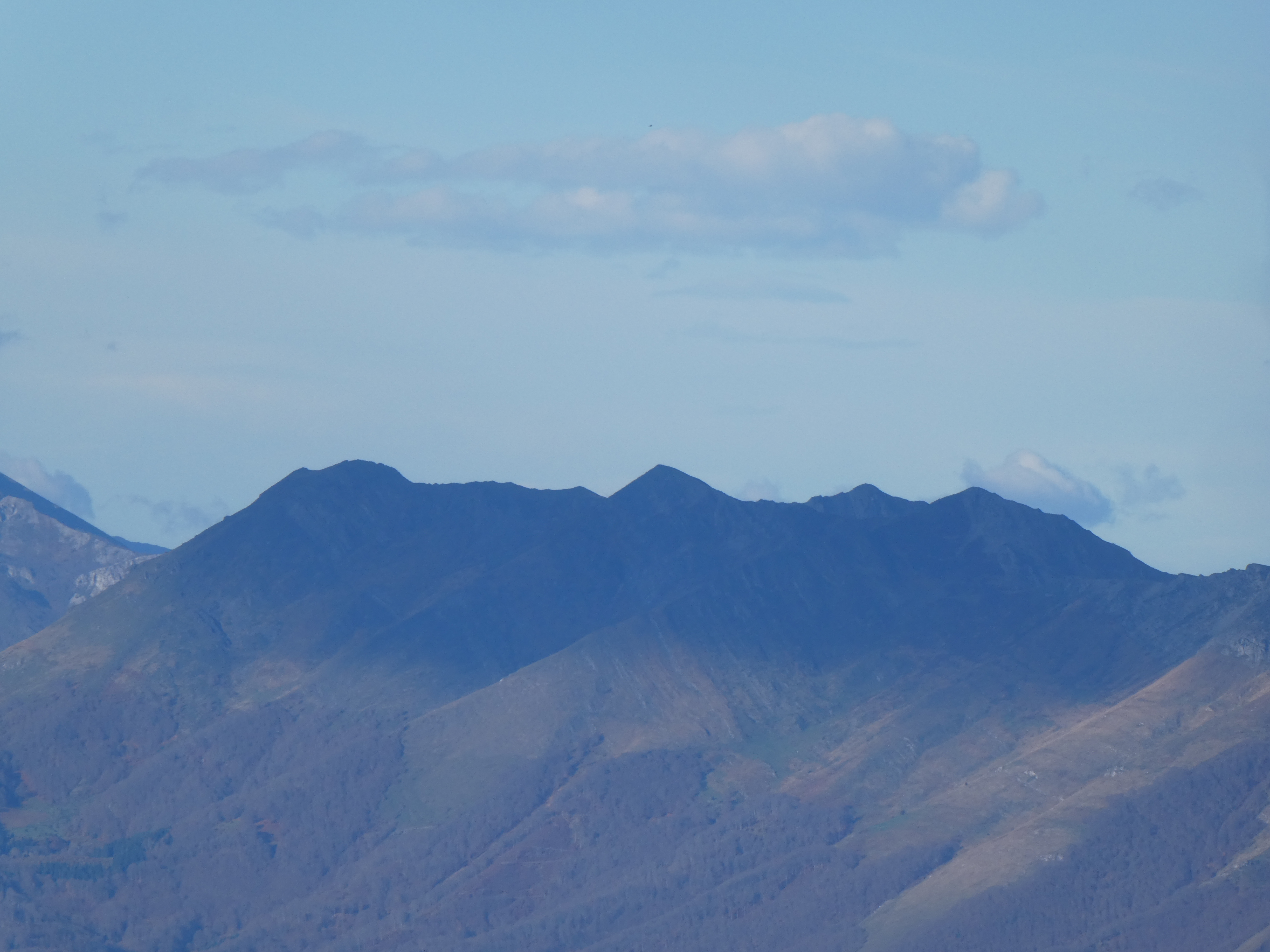Zoom sur les Pènas de Barran (2085 m) au centre-gauche et le Pic d'Oussaumiaou (2056 m) au centre-droit