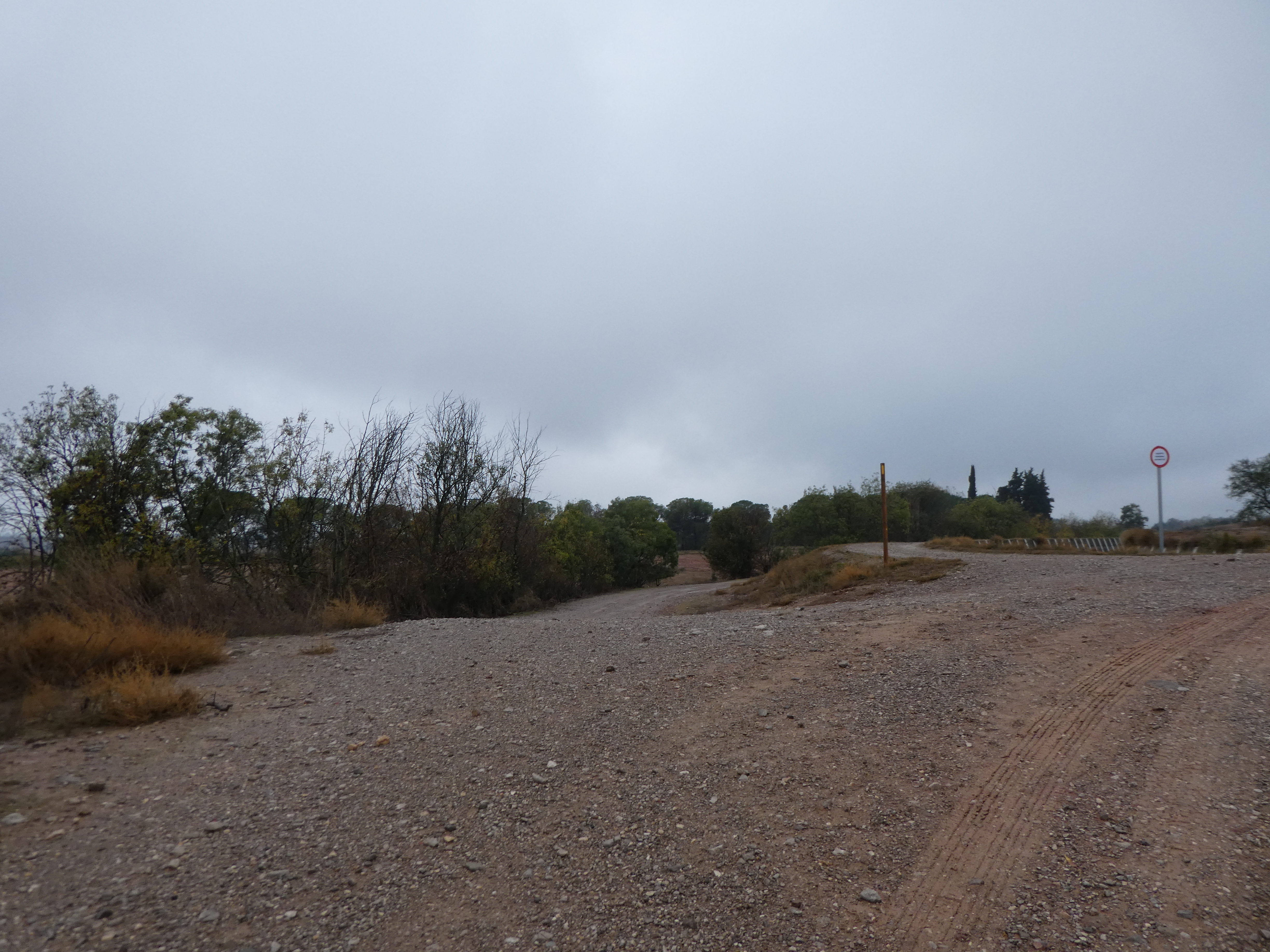 A ce croisement situé à proximité de la Ciutat Ibèrica del Molí d'Espígol (150 mètres après le précédent), suivre le chemin partant tout droit (Camí d'Espígol) direction Ciutat Ibèrica del Molí d'Espígol