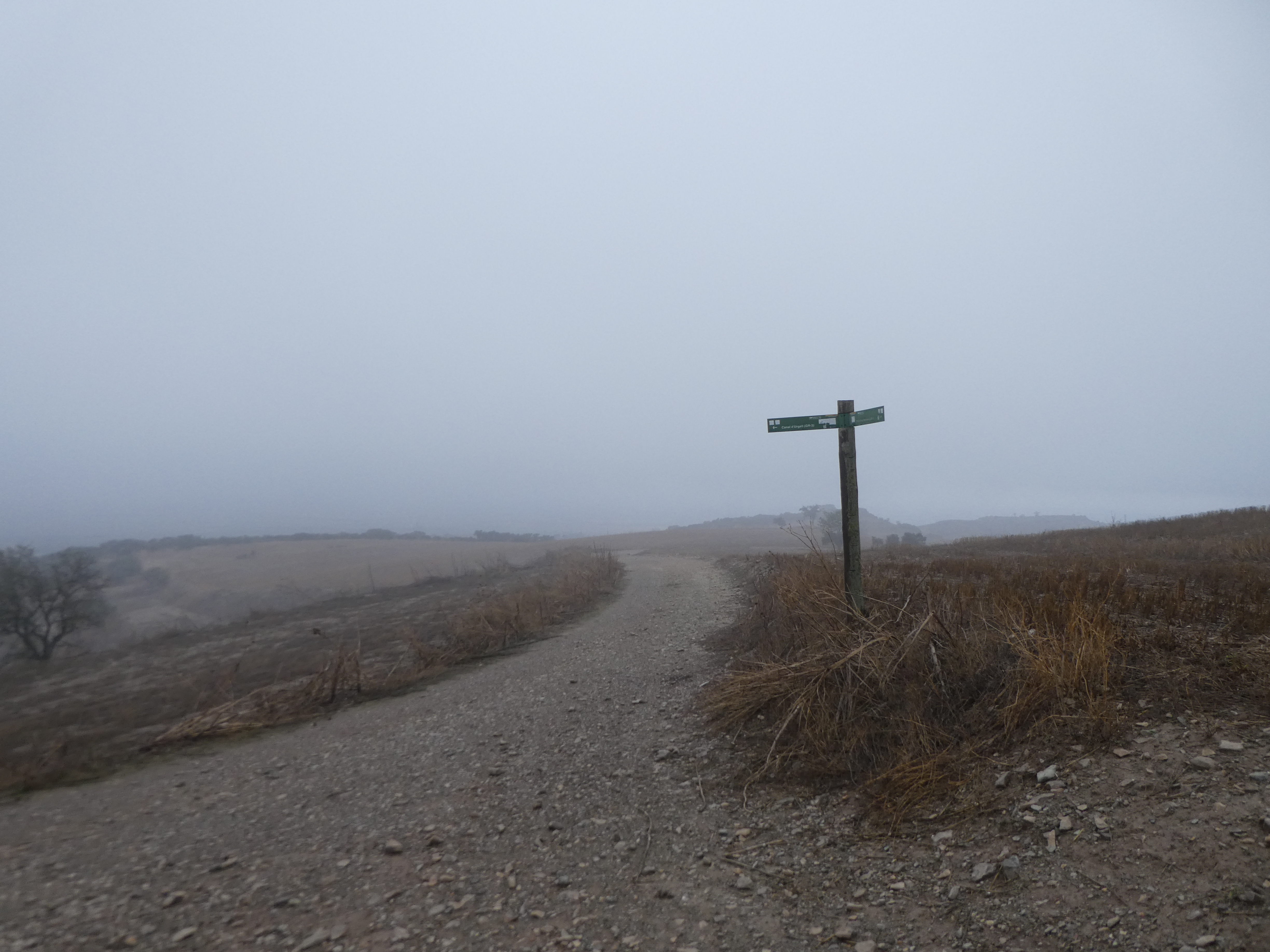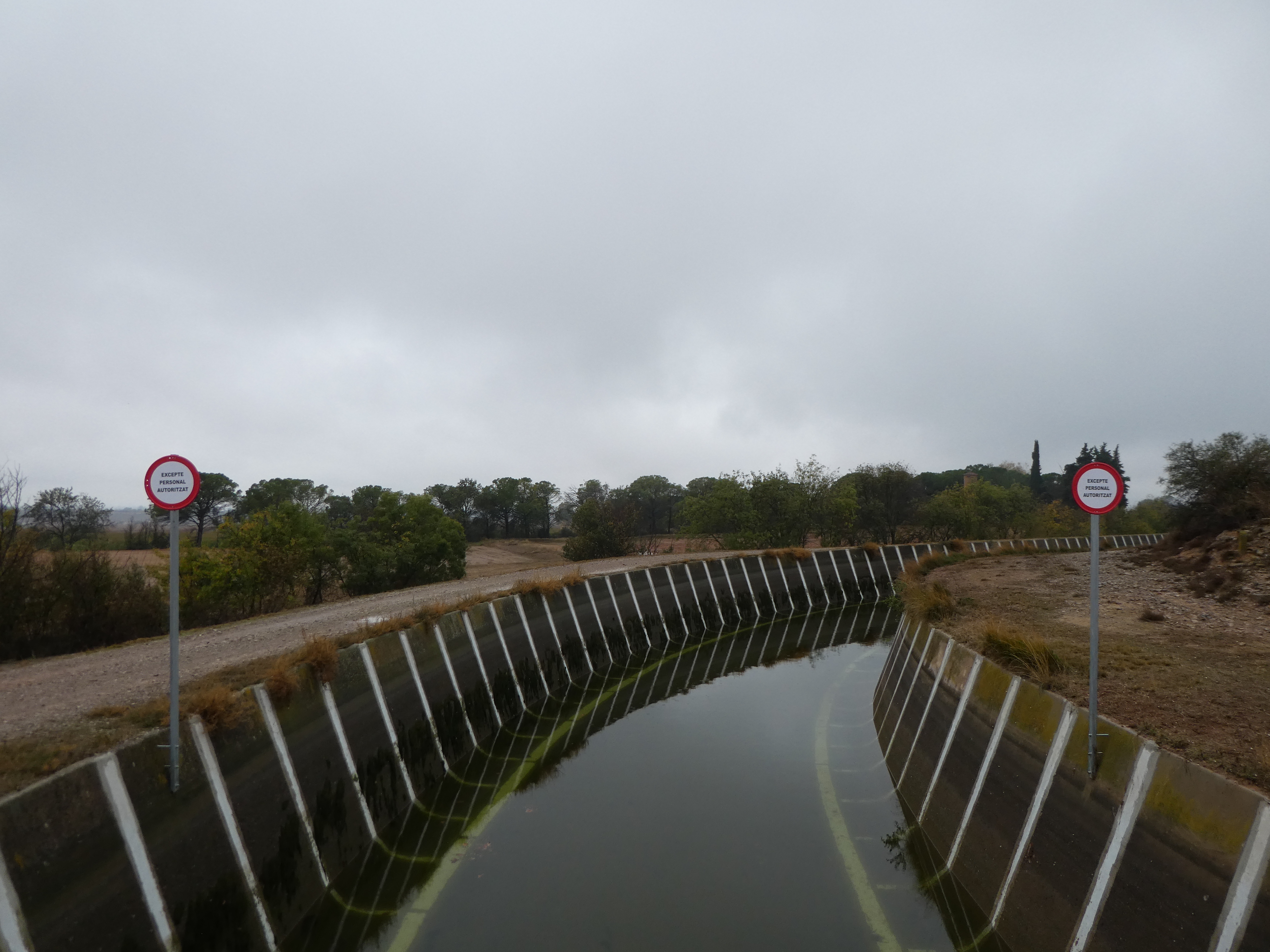 A ce croisement situé au niveau du Canal d'Urgell marqué par la présence d'un panneau directionnel (1050 mètres après le précédent), suivre le chemin partant tout droit vers la Masia del Pipó direction la Guàrdia, aucun balisage dorénavant