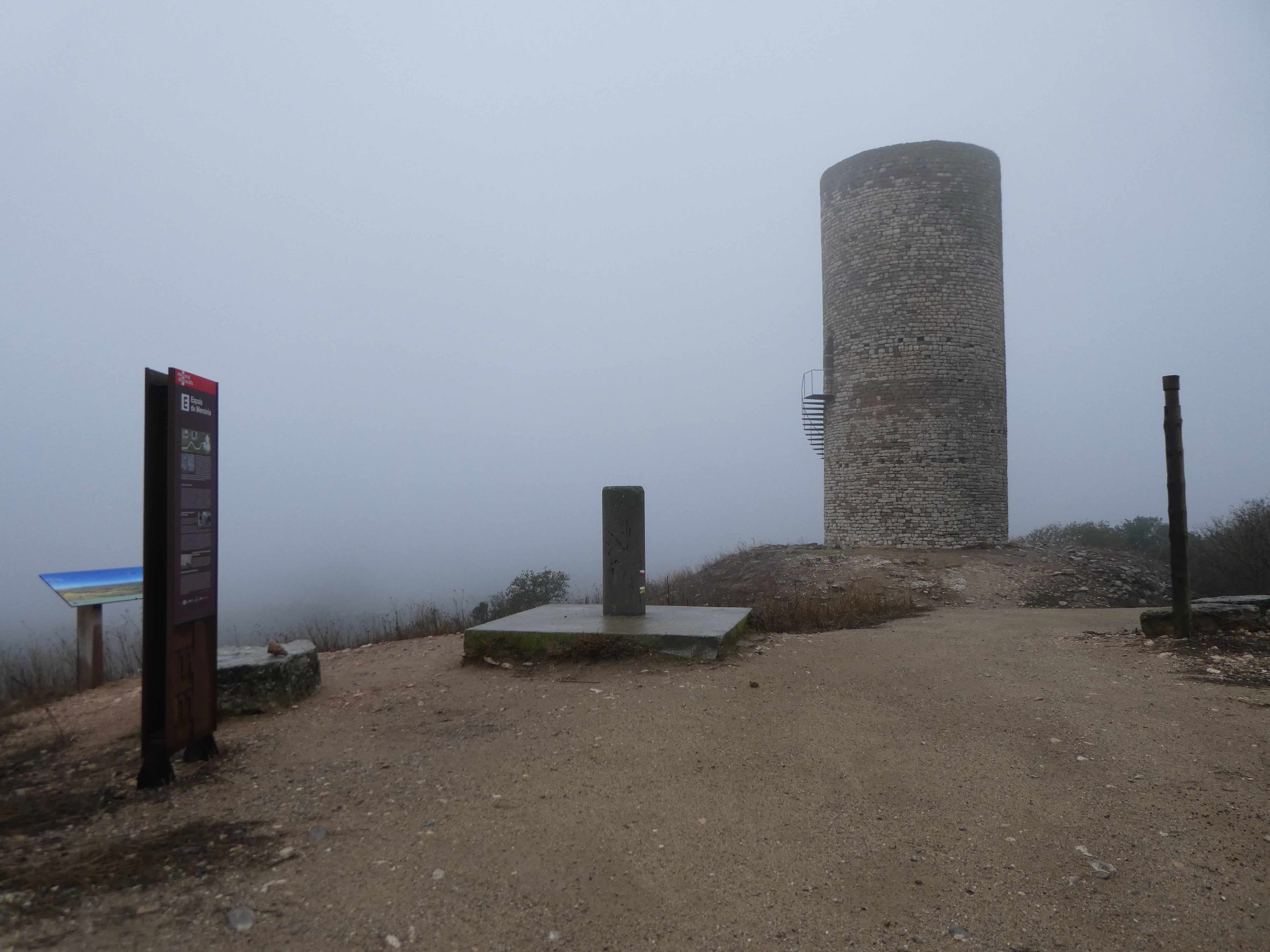 Arrivée au sommet du Pilar d'Almenara (457 m) : absence de panorama aujourd'hui à cause de la brume tenace !