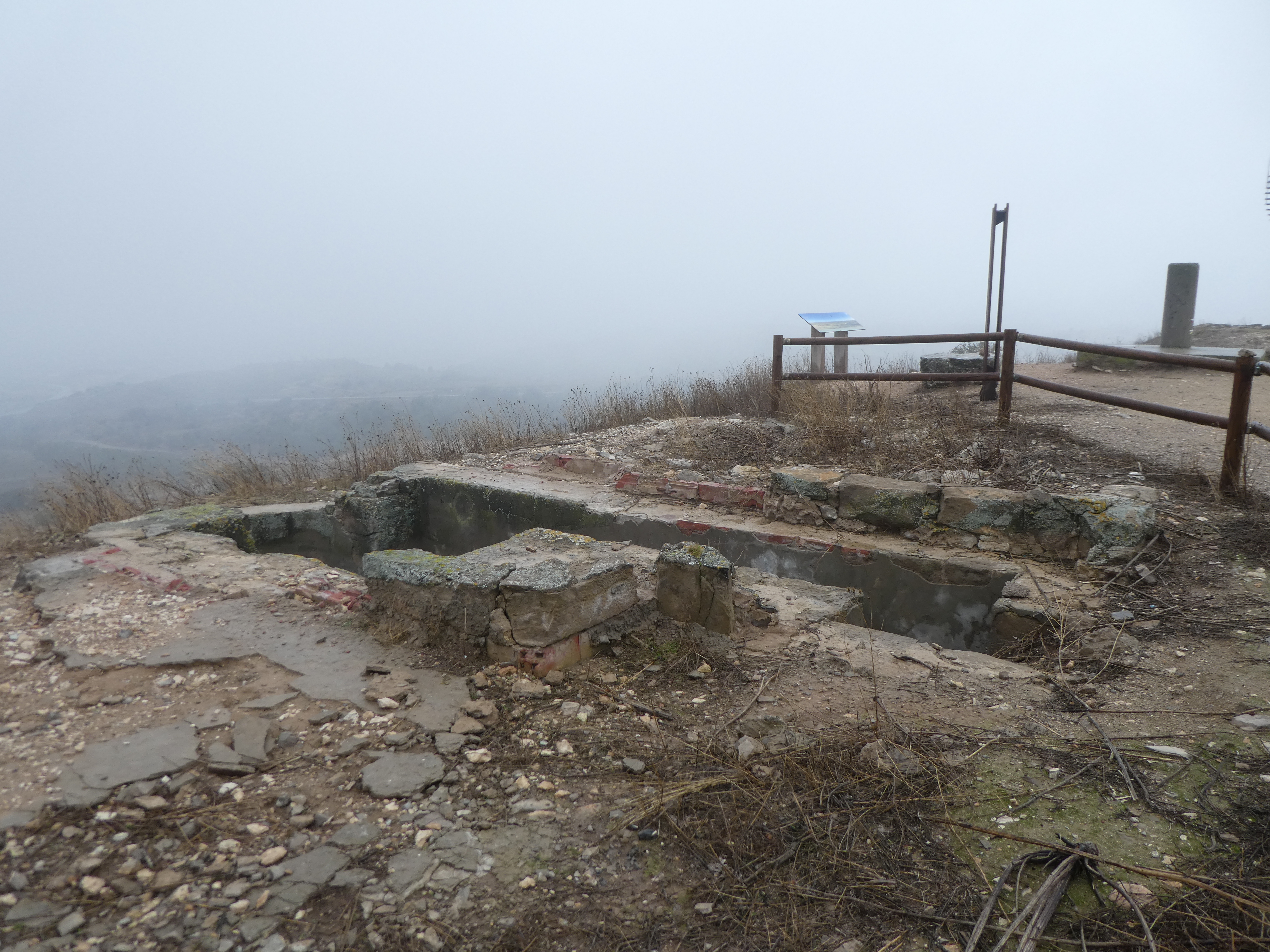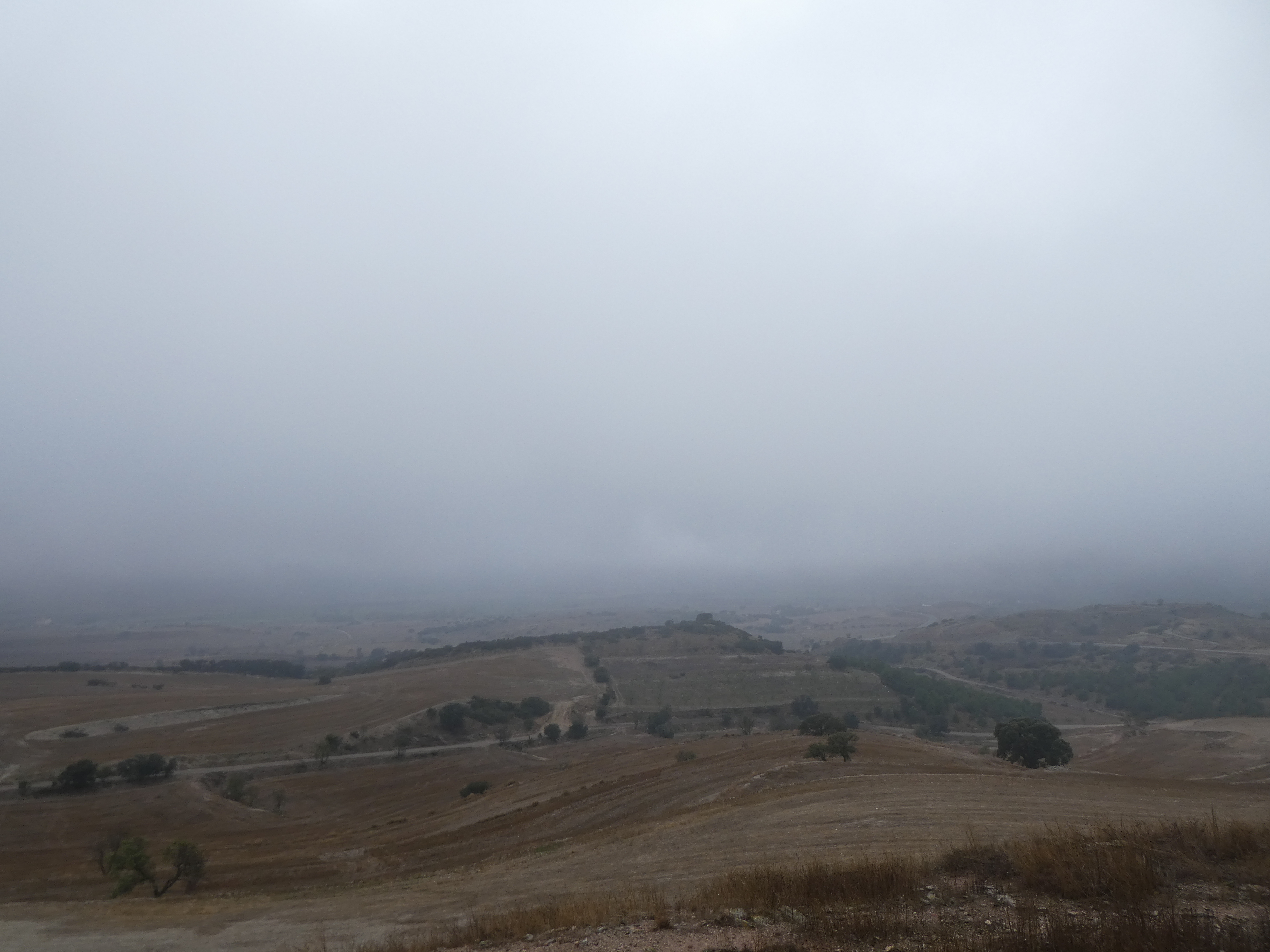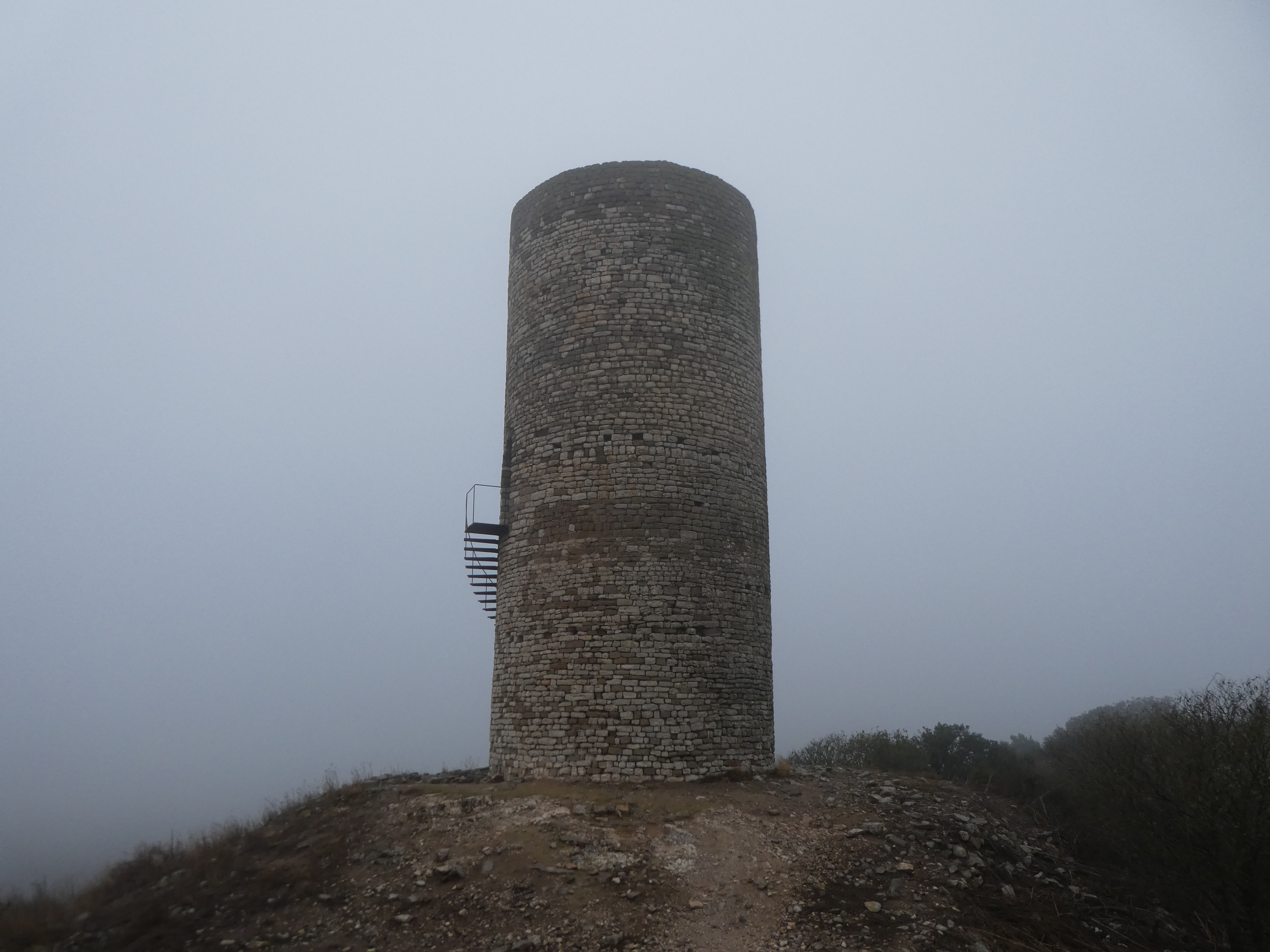 Arrivée au sommet du Tossal d'Espígol (368 m) : panorama bouché par la brume