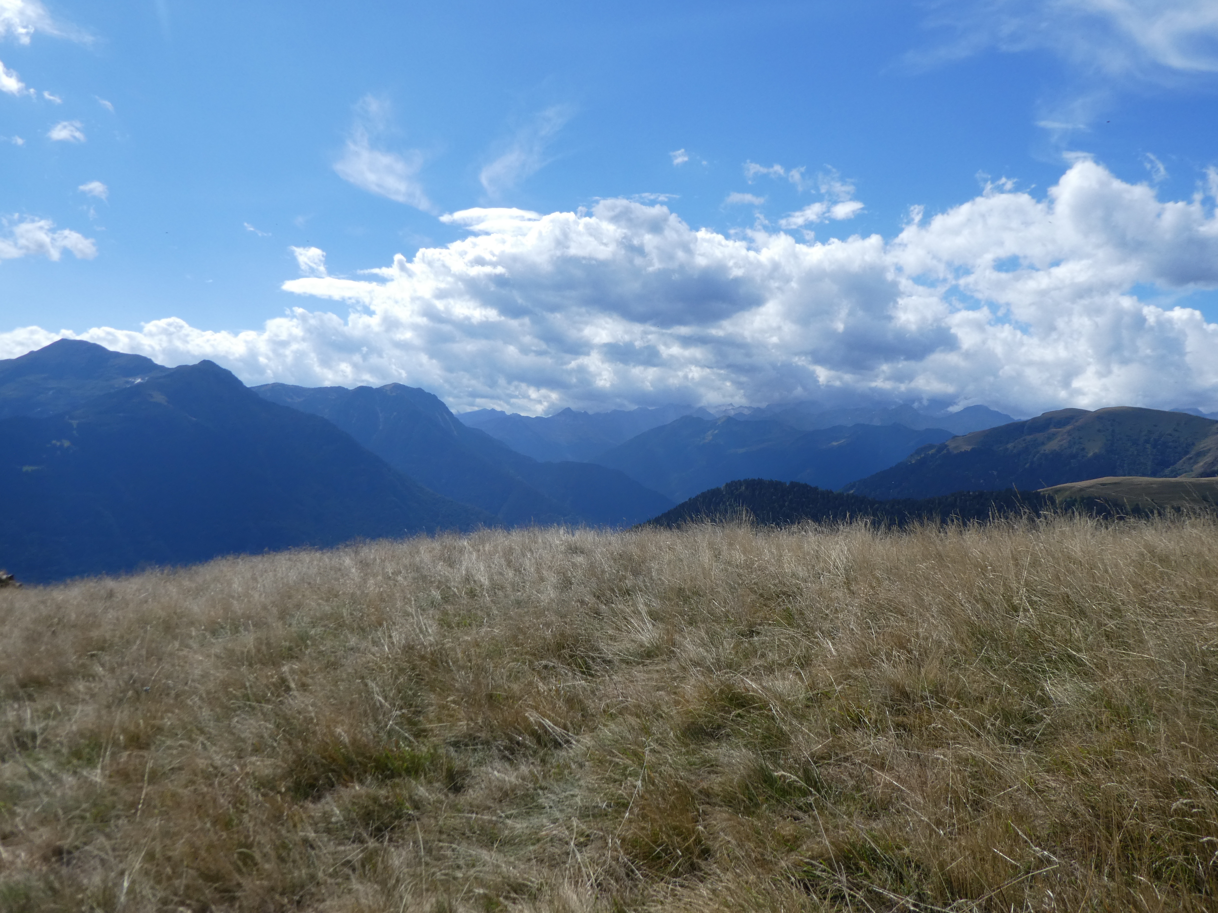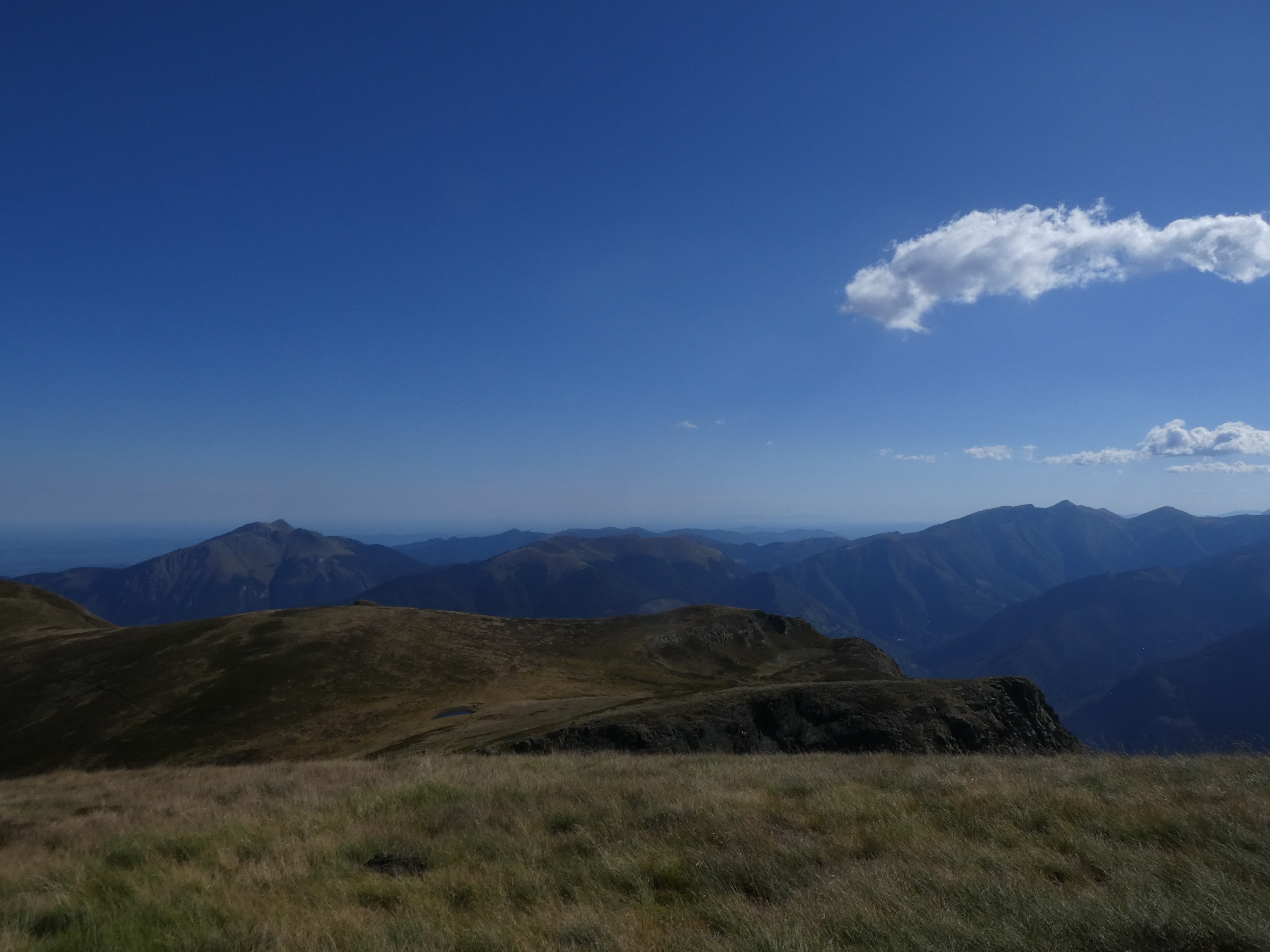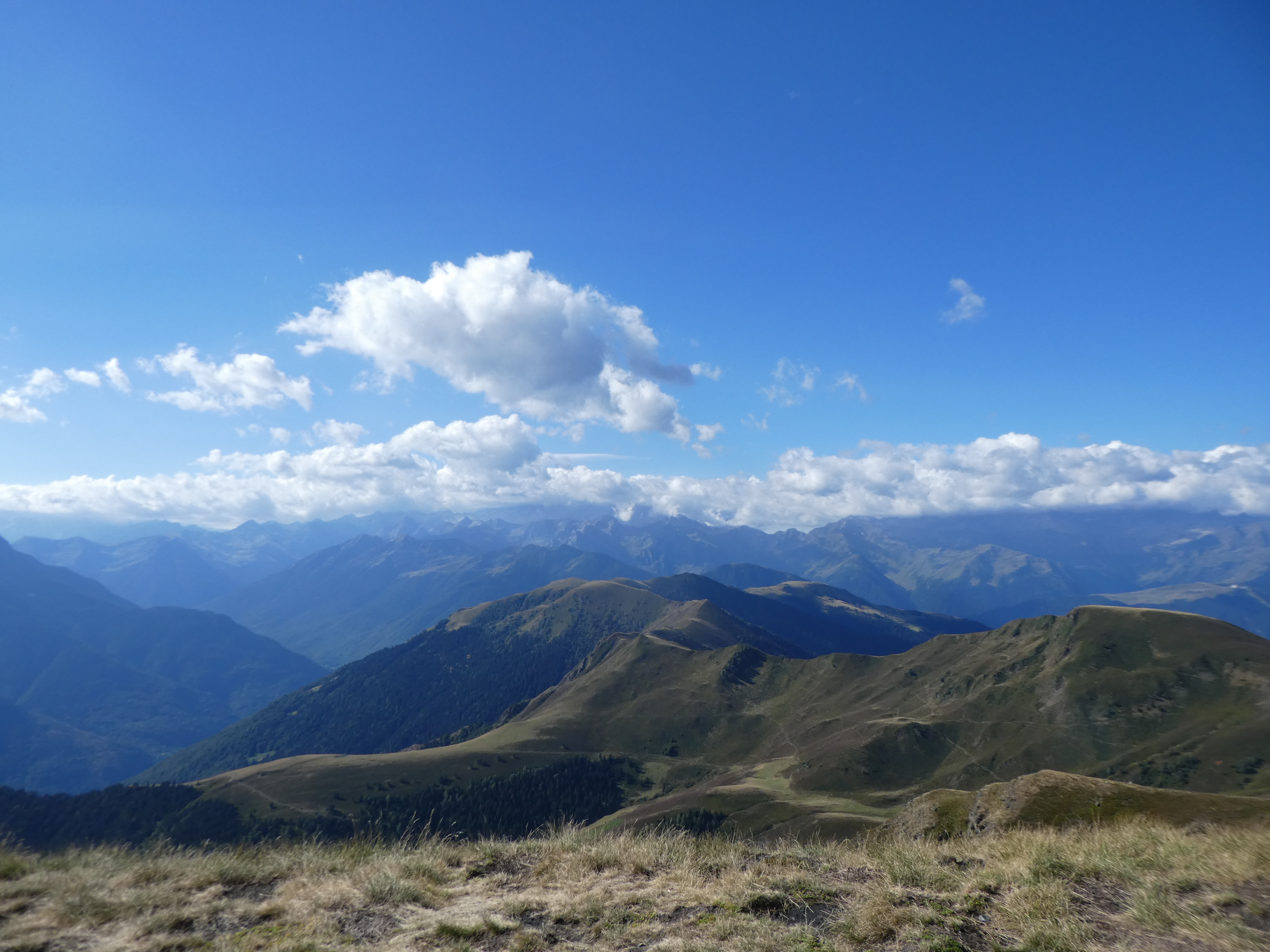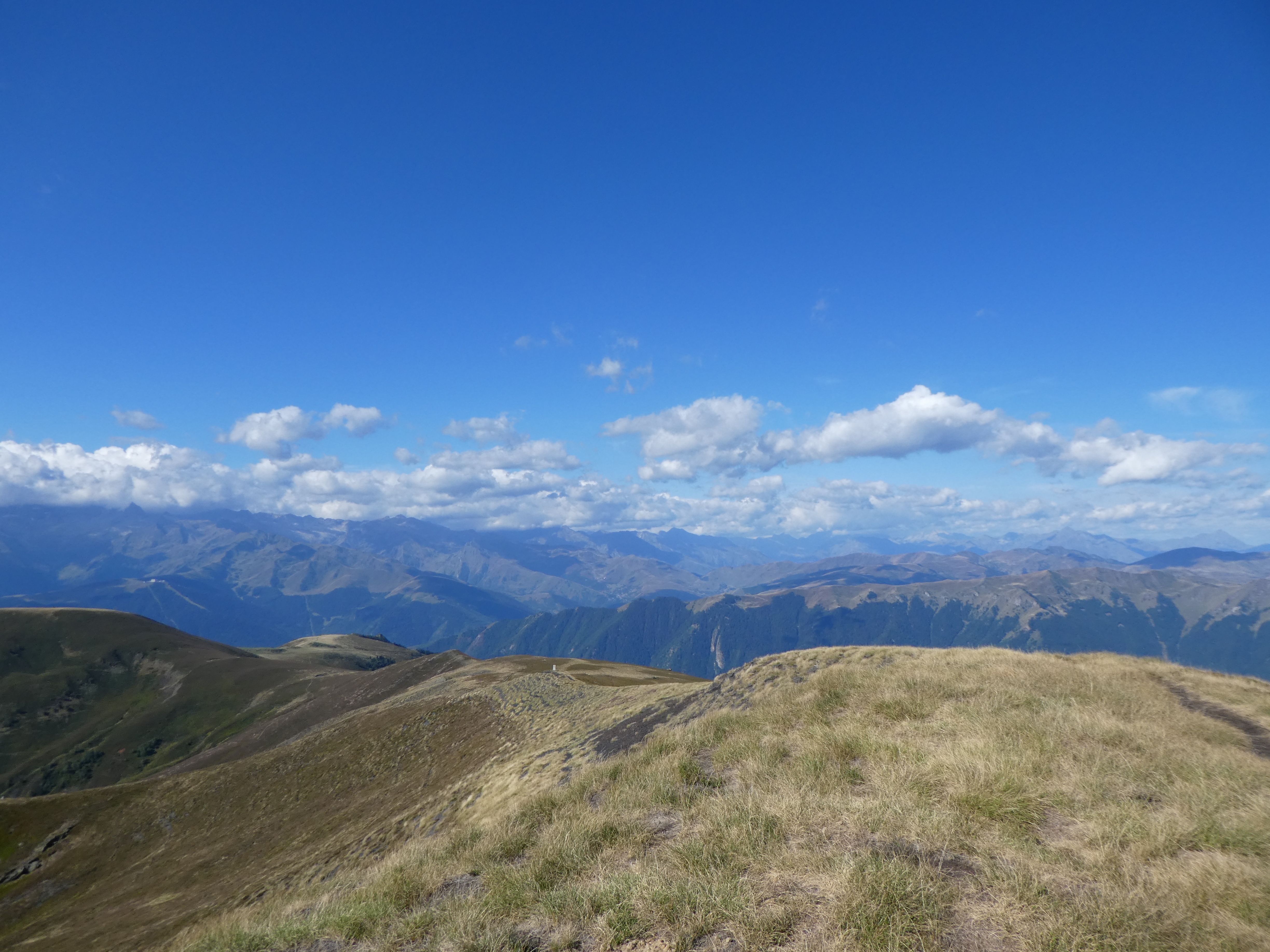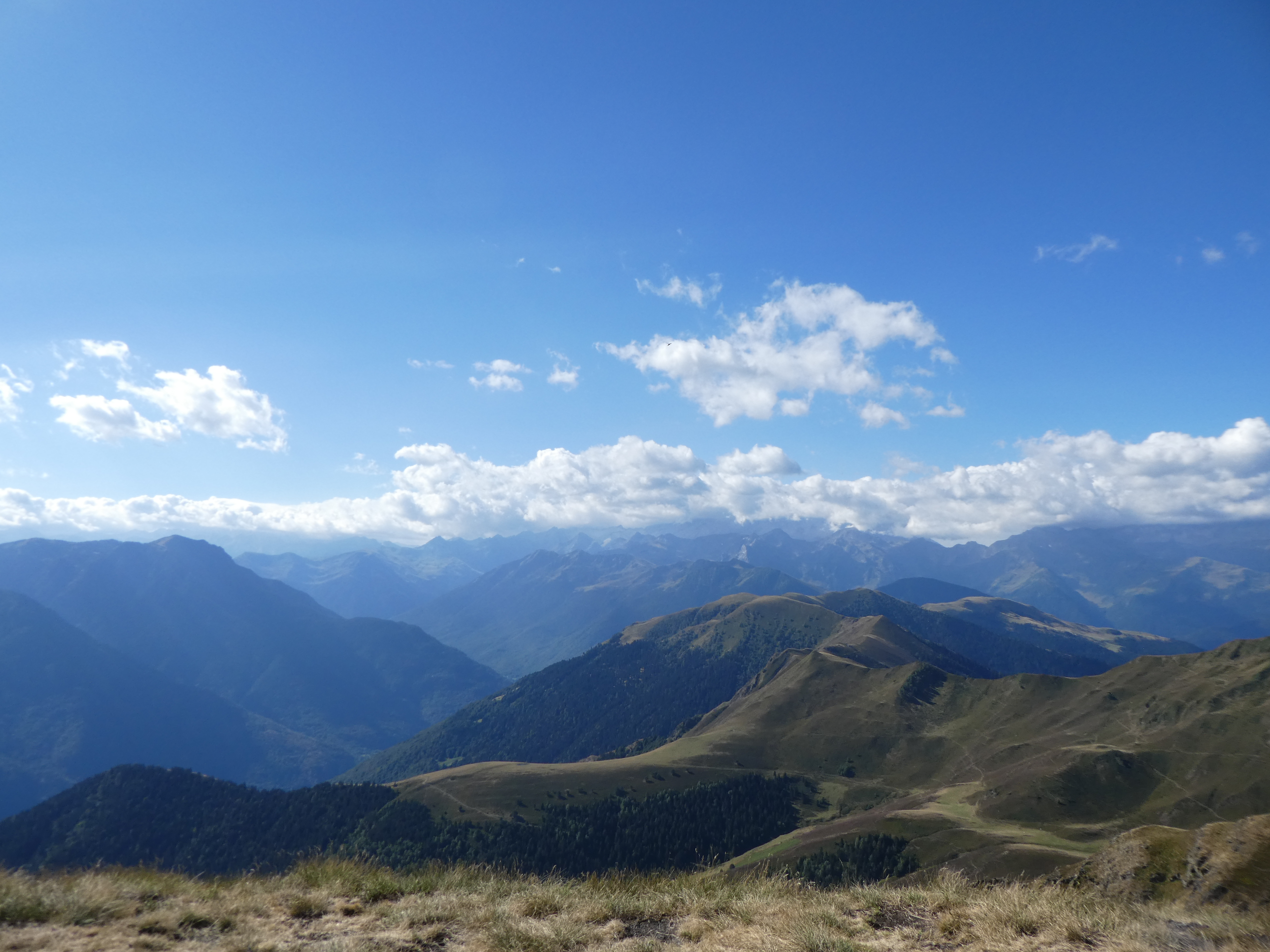 Arrivée au sommet du Tuc d'Angost (2128 m) : panorama semblable à celui du Tuc deth Plan der Òme avec vue plus restreinte sur les sommets du Luchonnais