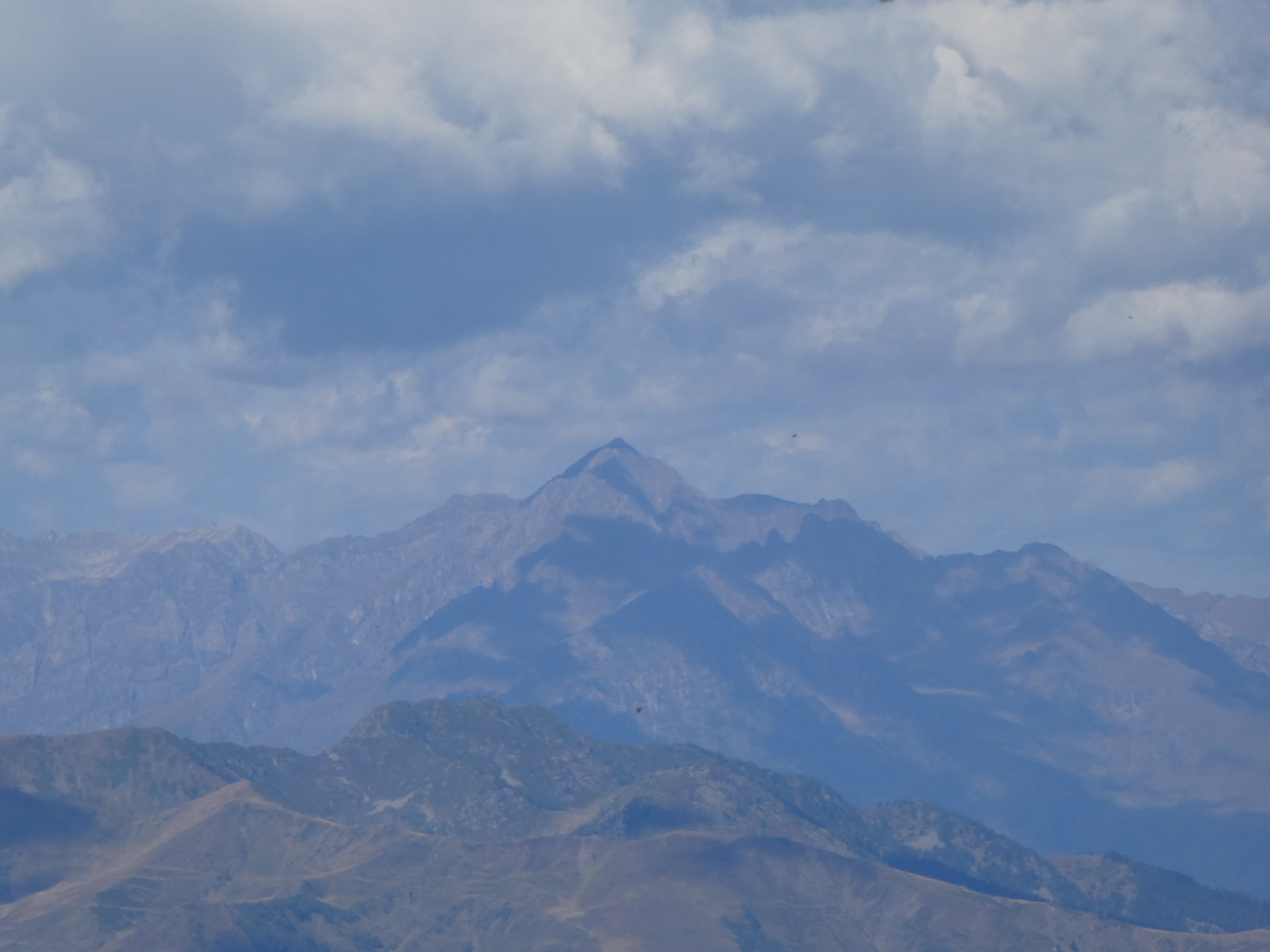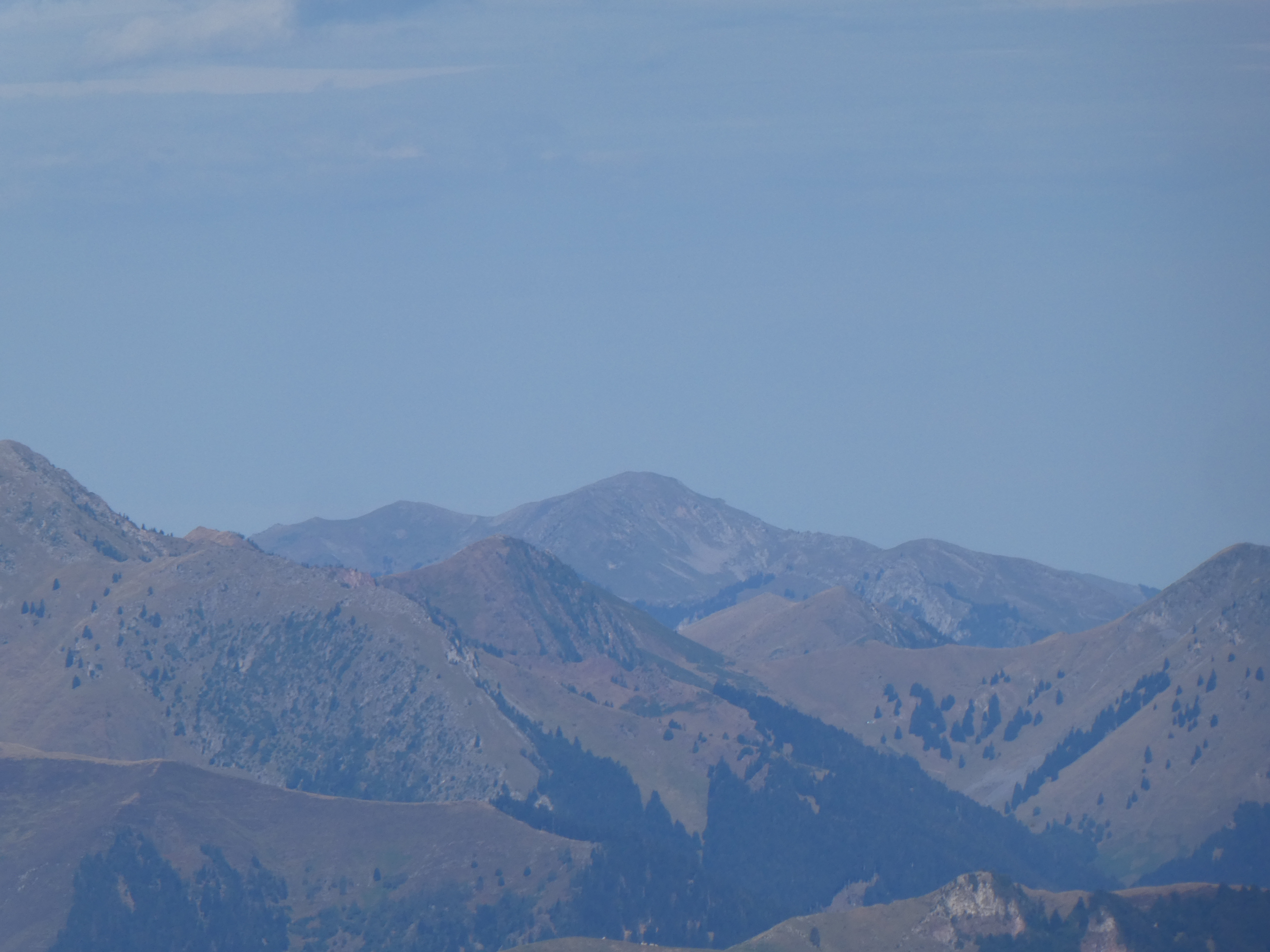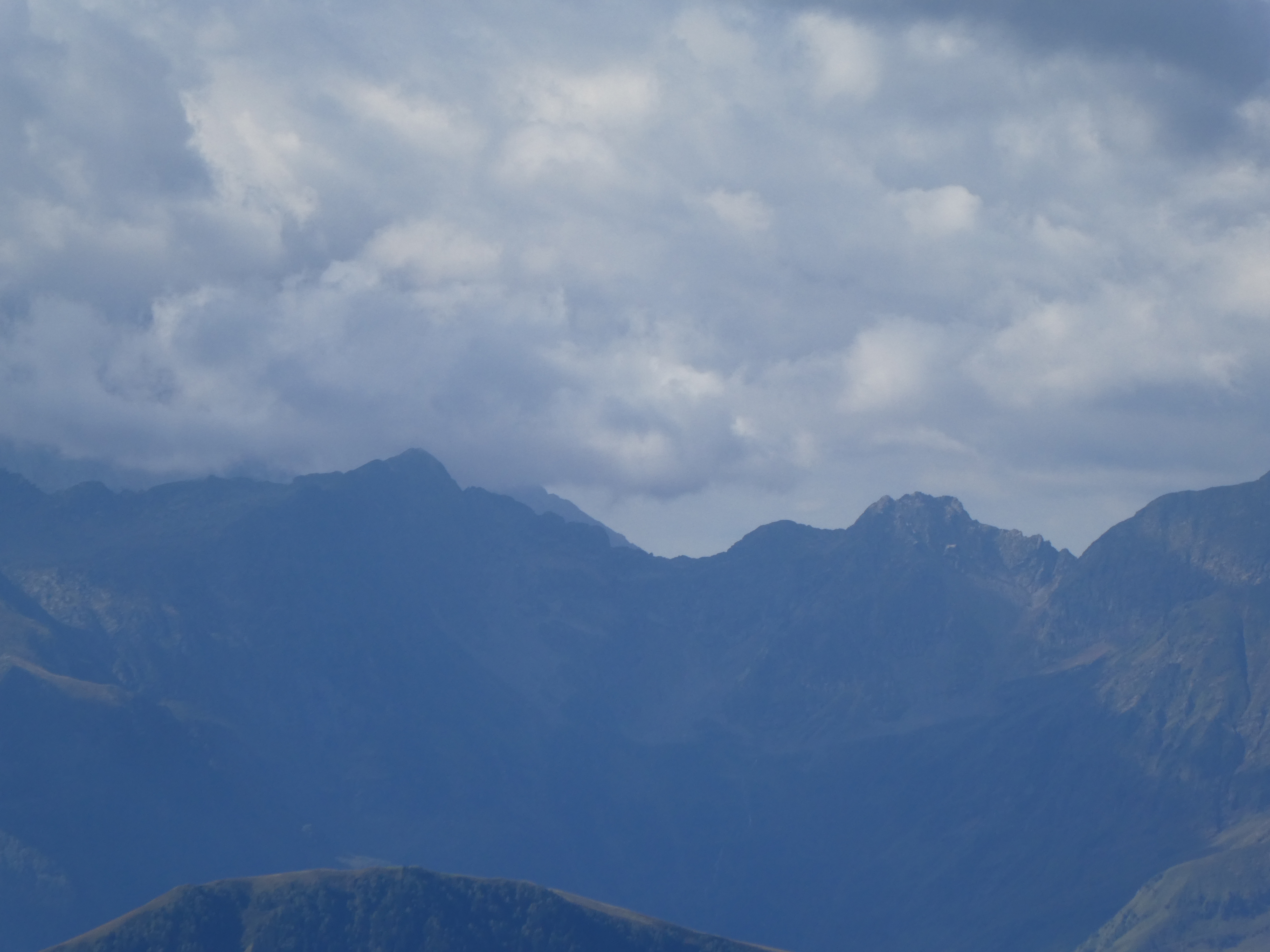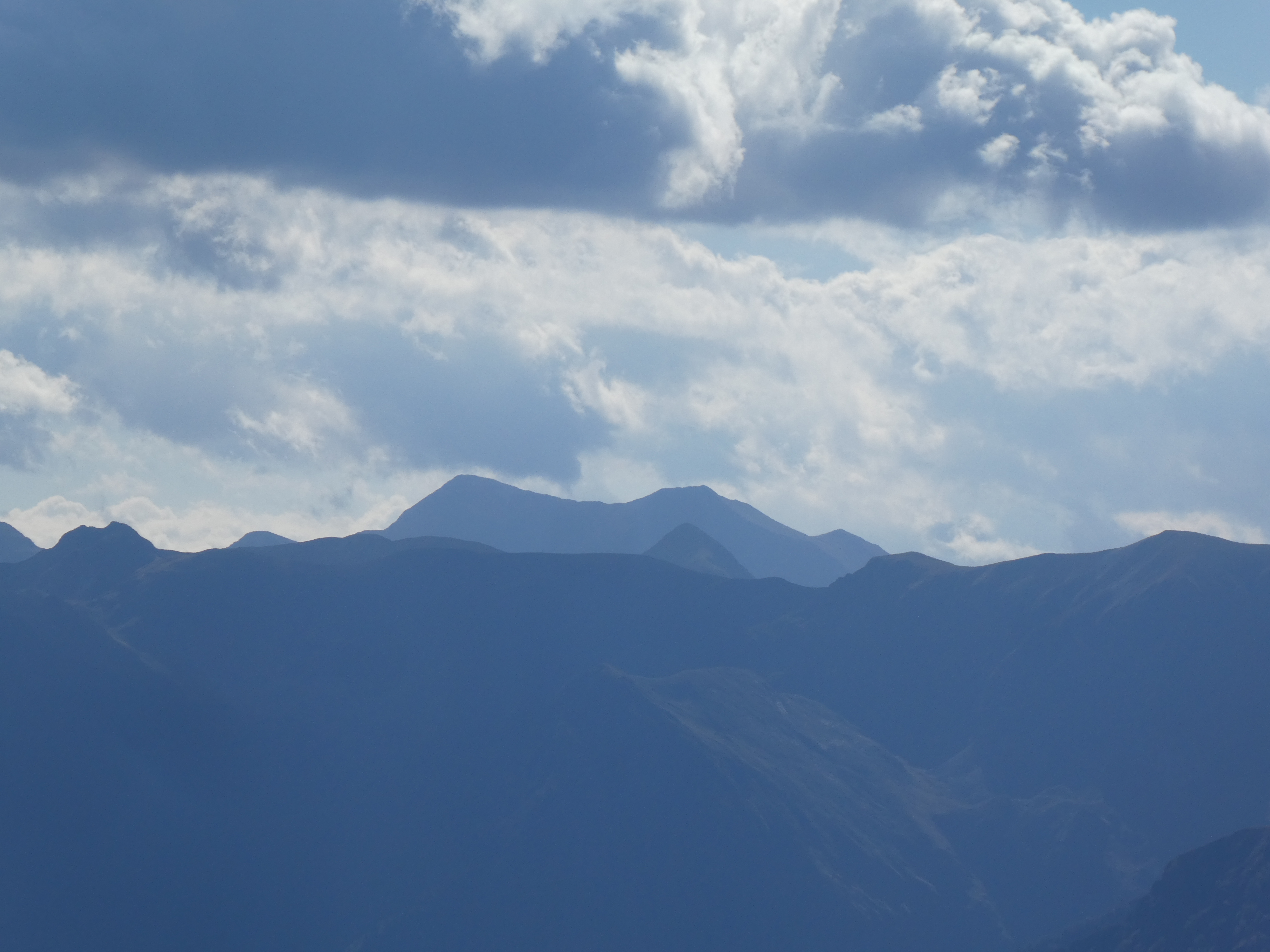 Zoom sur le Pic de Lampau (2543 m) au centre-gauche et le Pic de Pomebrunet (2569 m) au centre-droit