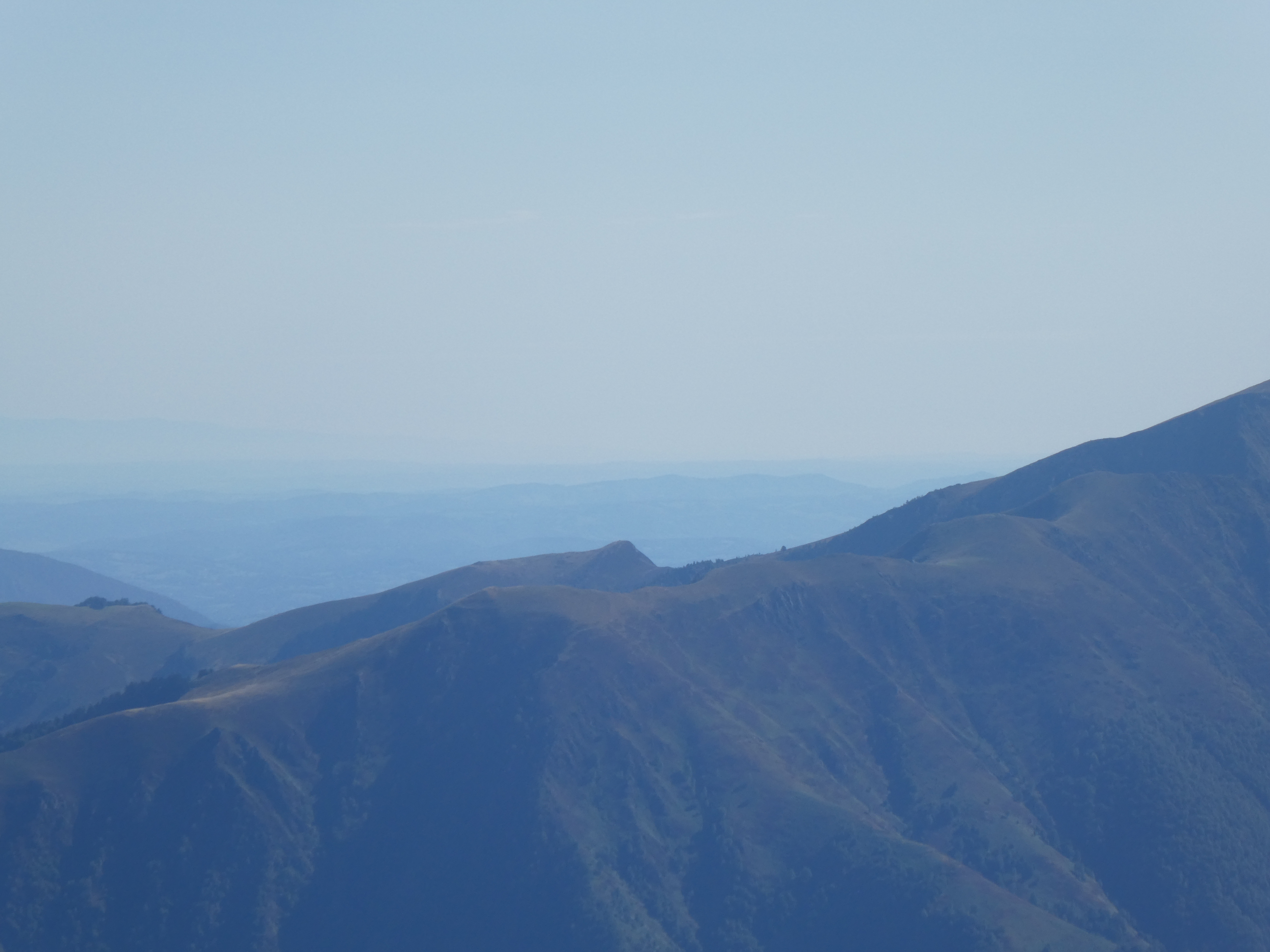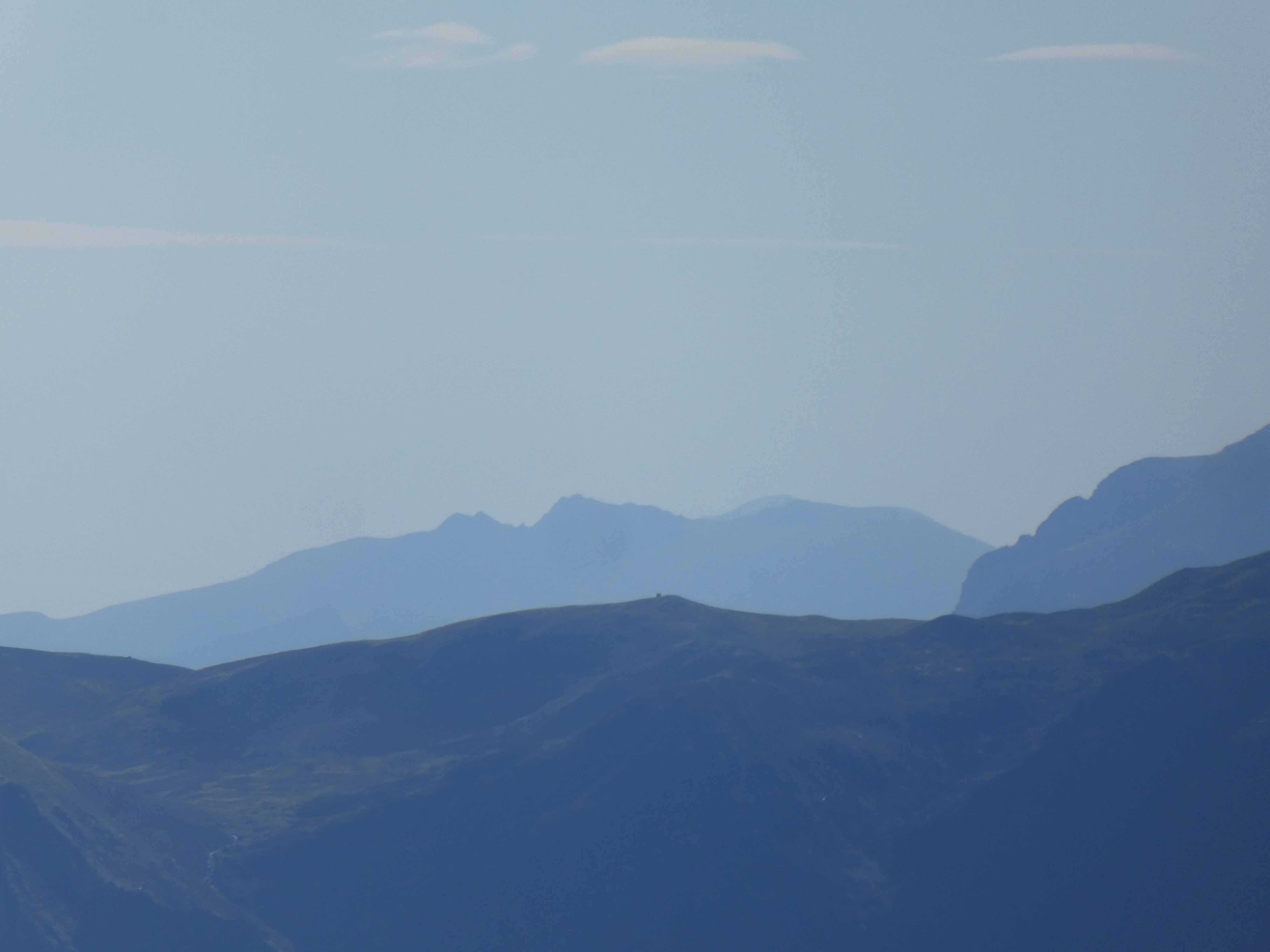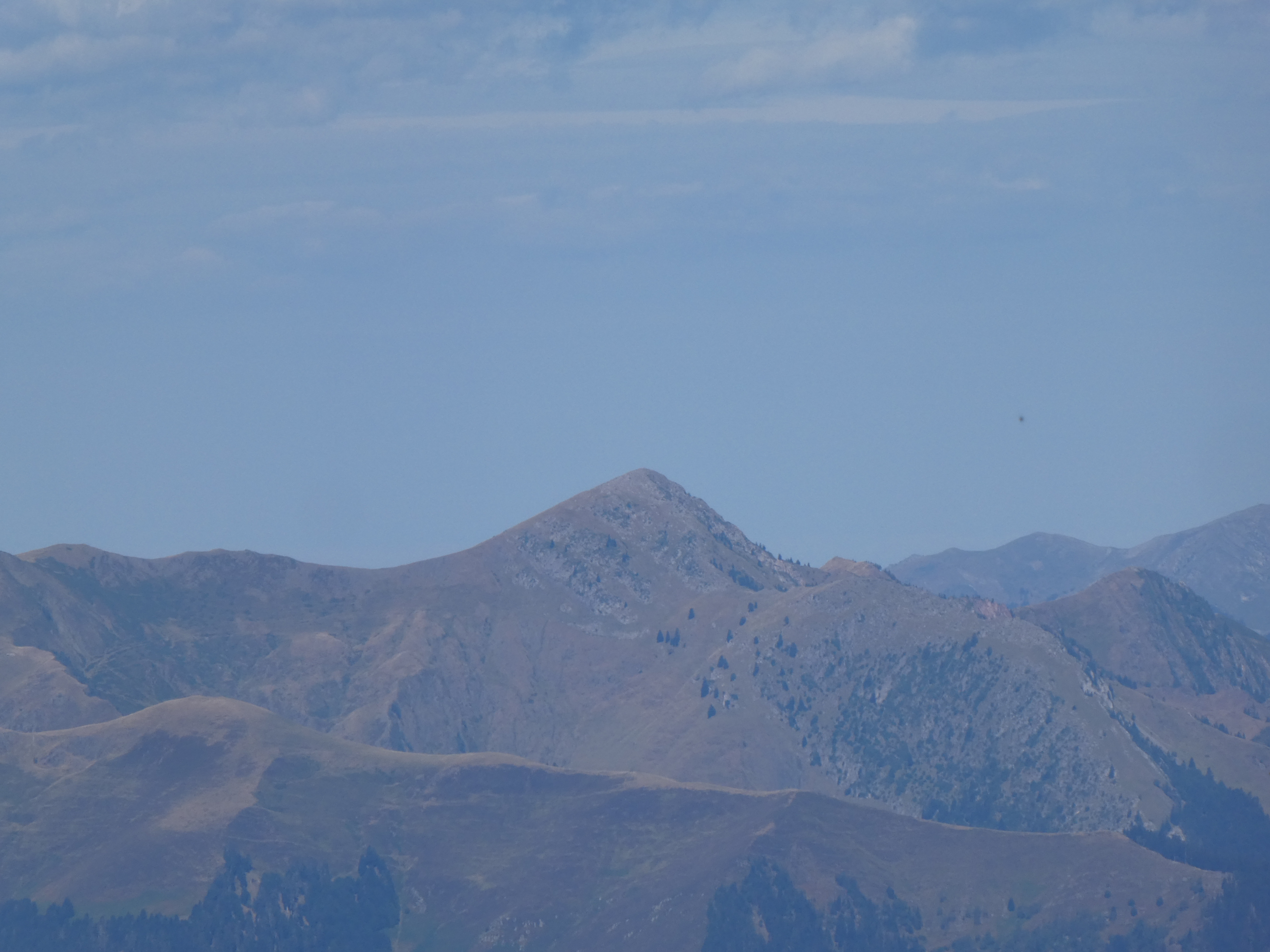 Zoom sur le Pic de Lampau (2543 m) au centre-gauche et le Pic de Pomebrunet (2569 m) au centre-droit