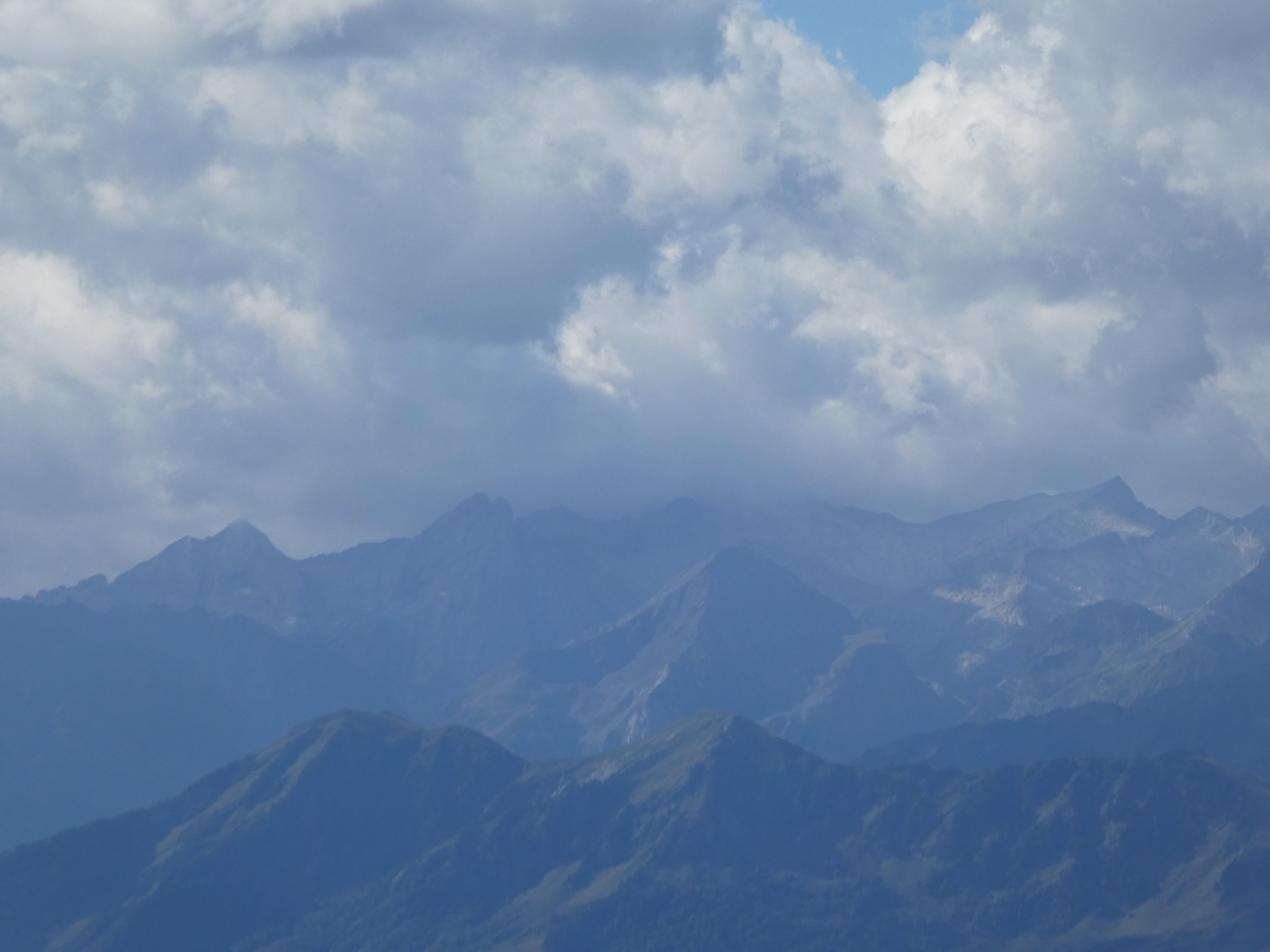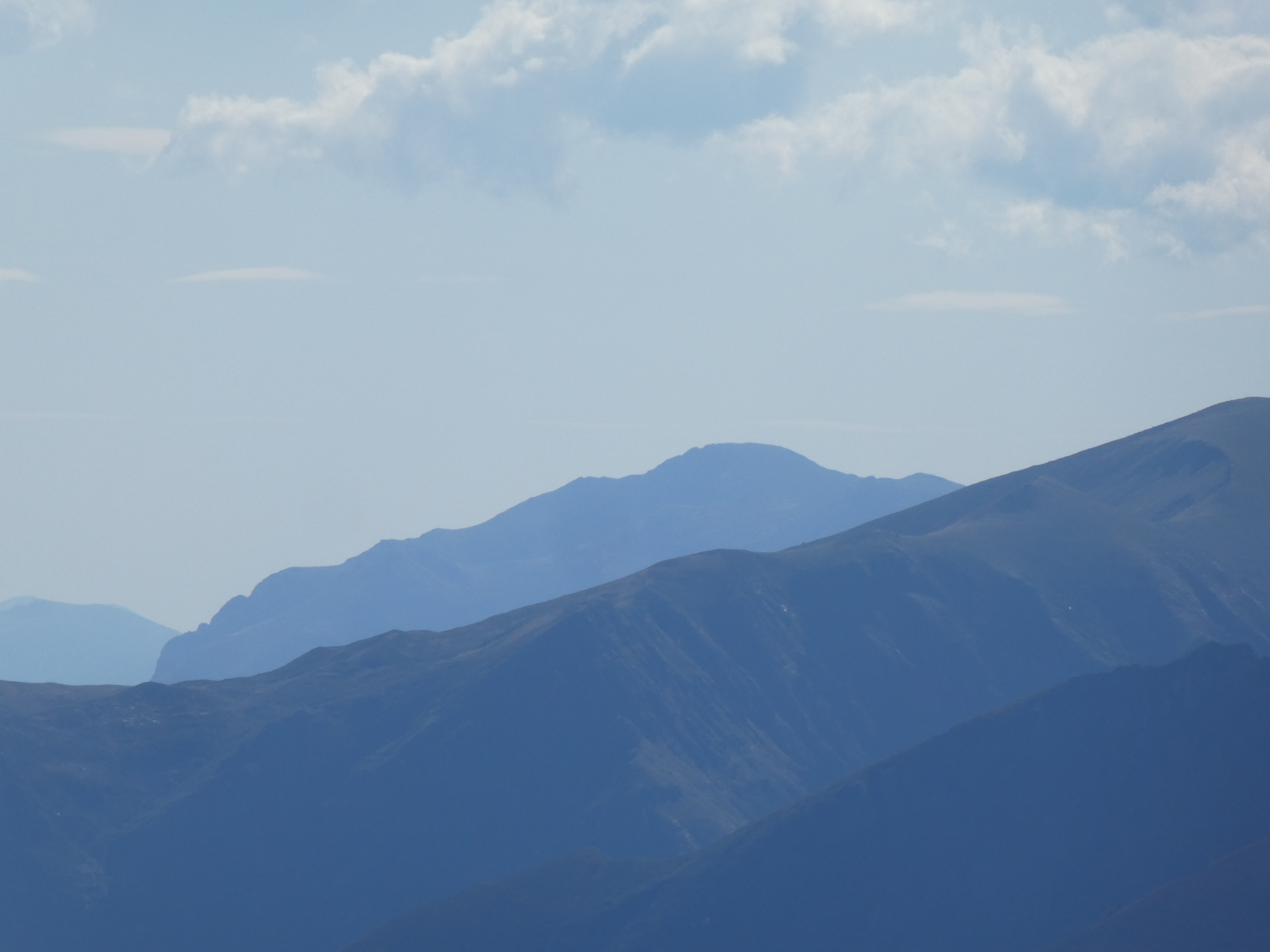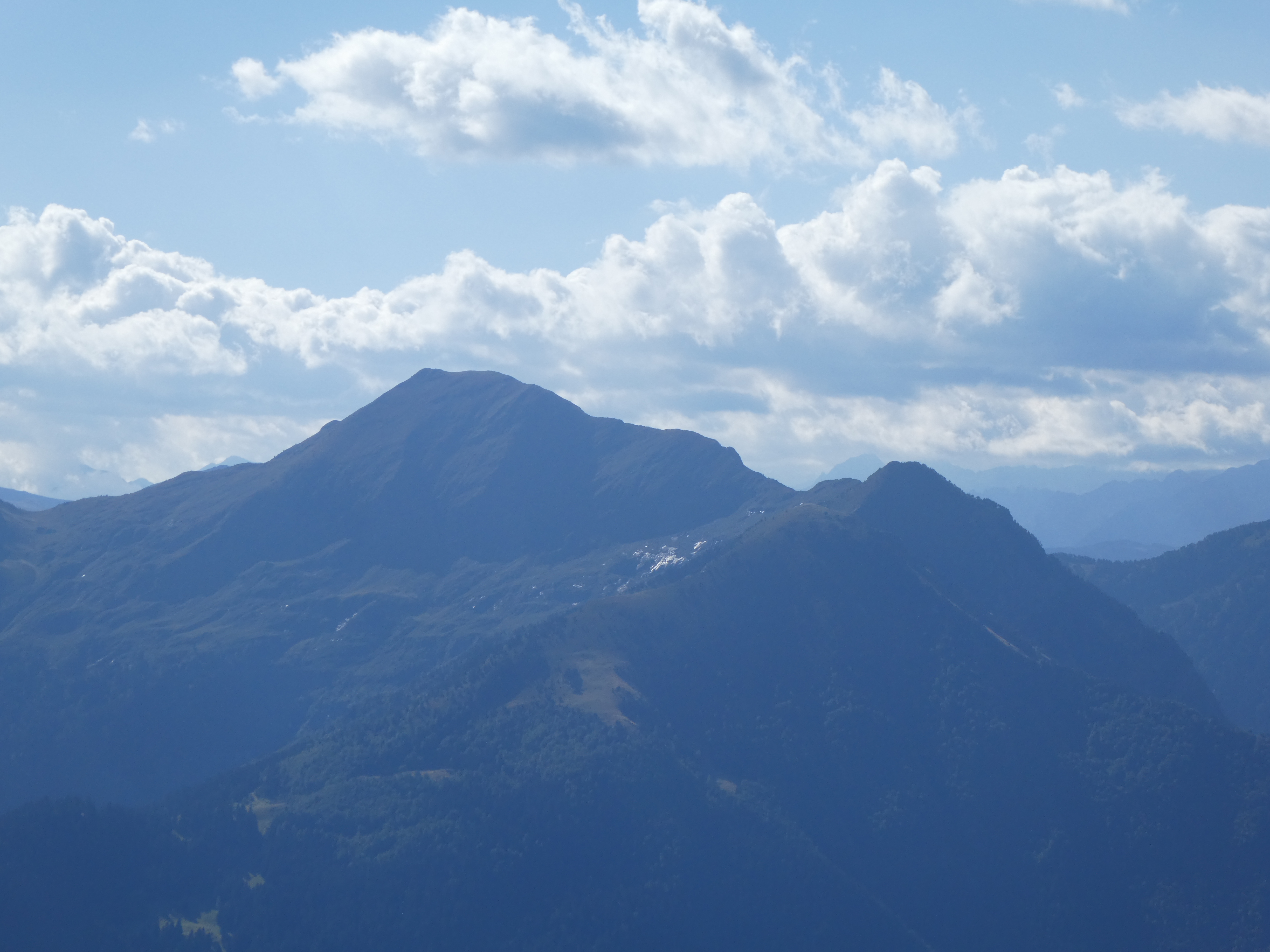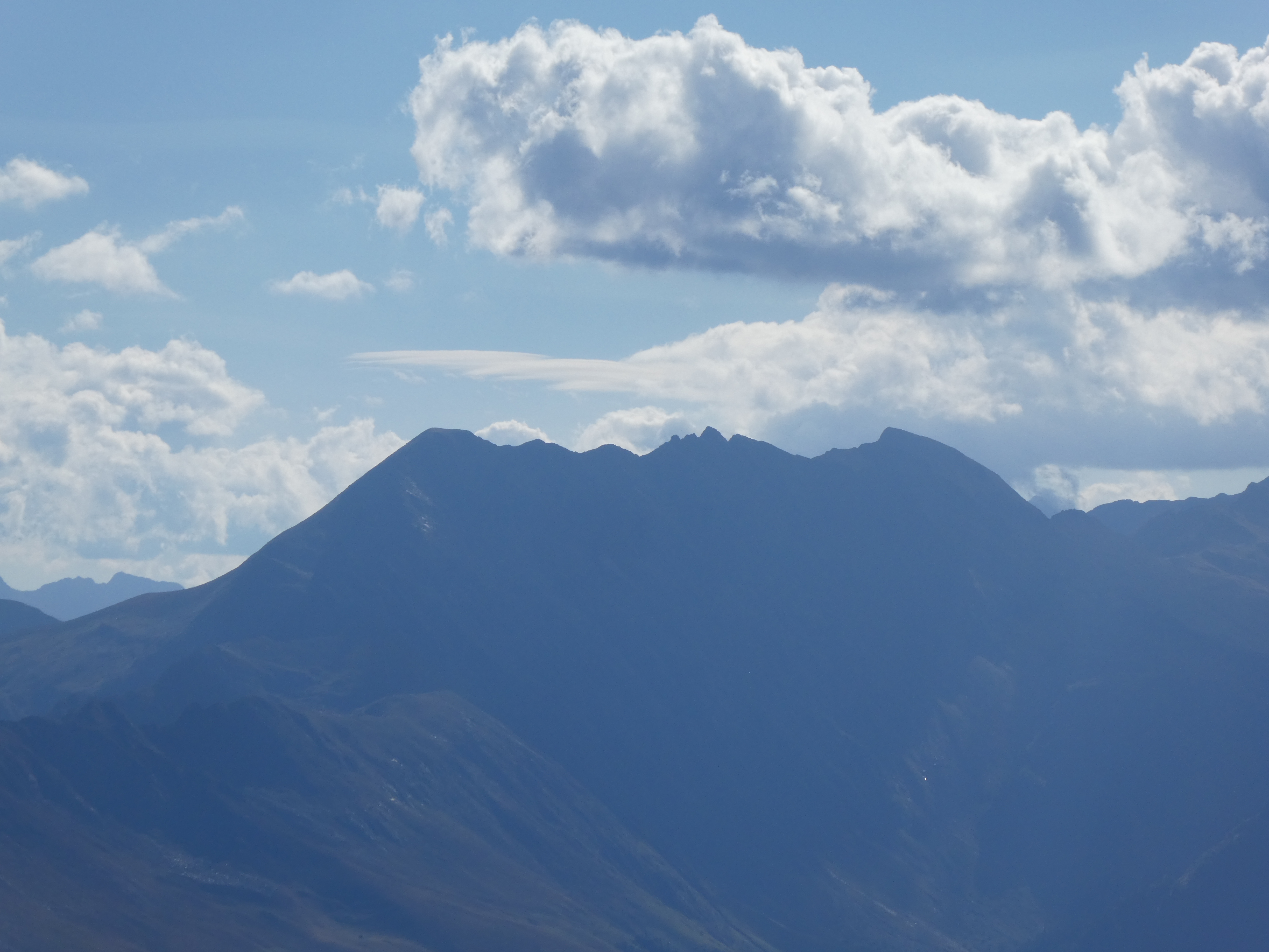 Zoom sur le Pic de Lampau (2543 m) au centre-gauche et le Pic de Pomebrunet (2569 m) au centre-droit