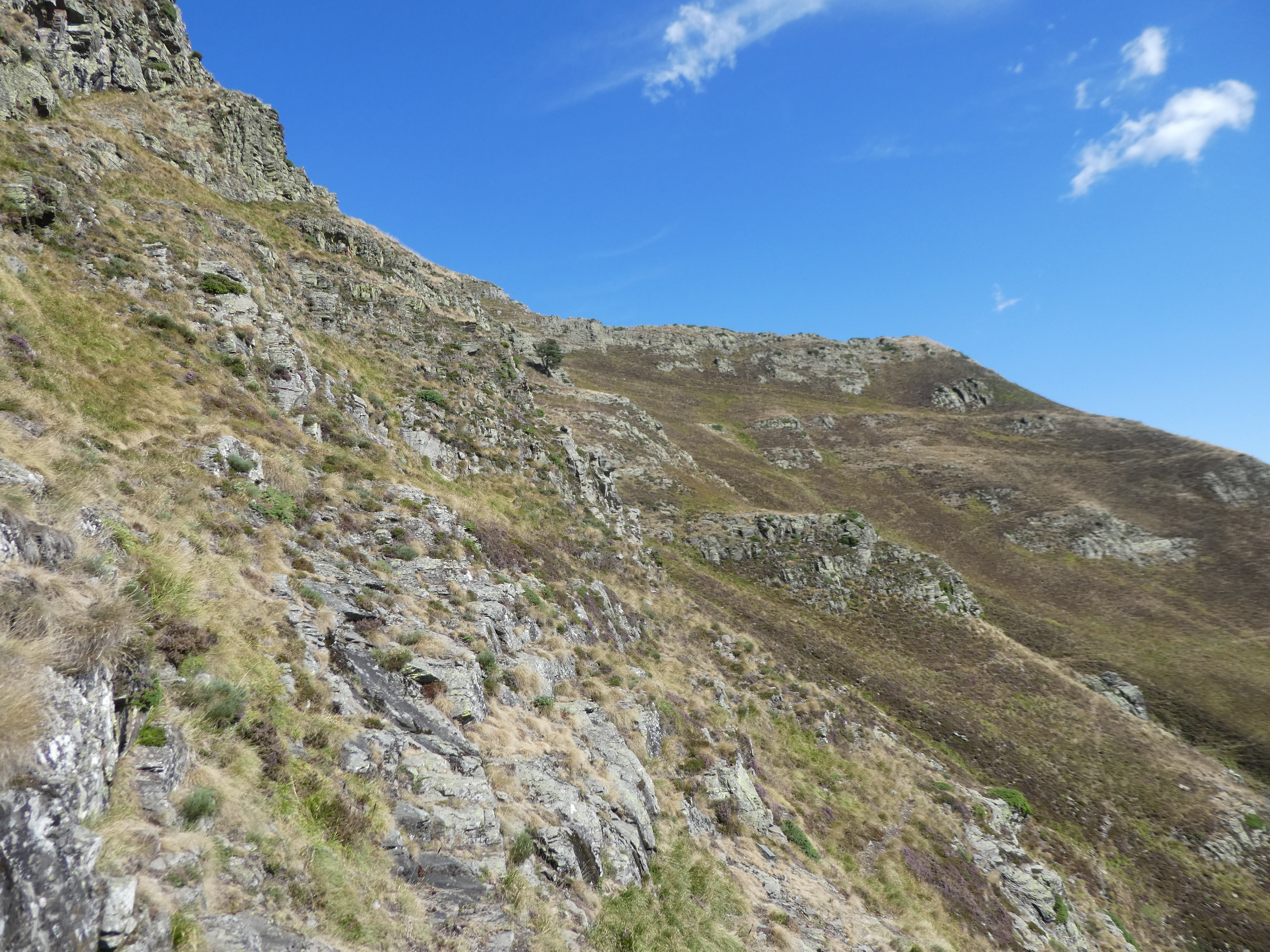 La première partie de la descente de la crête de Plansorda : raide mais sans problème d'orientation (il faut suivre la ligne de crête)